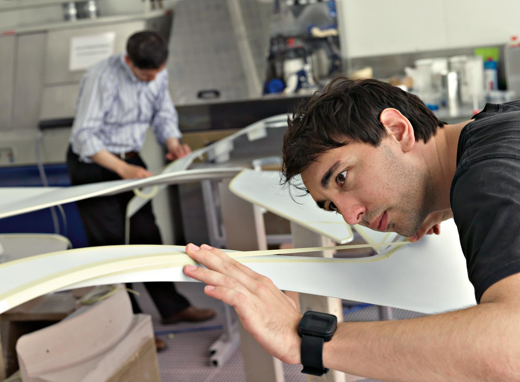 Das Thema Gewichtsreduktion hat auch beim Interieur-Design eine zentrale Rolle gespielt. So sind beispielsweise die Sitzschalen aus Kevlar gefertigt und bieten eine besonders gute Kombination aus hohem Komfort und minimalem Gewicht.