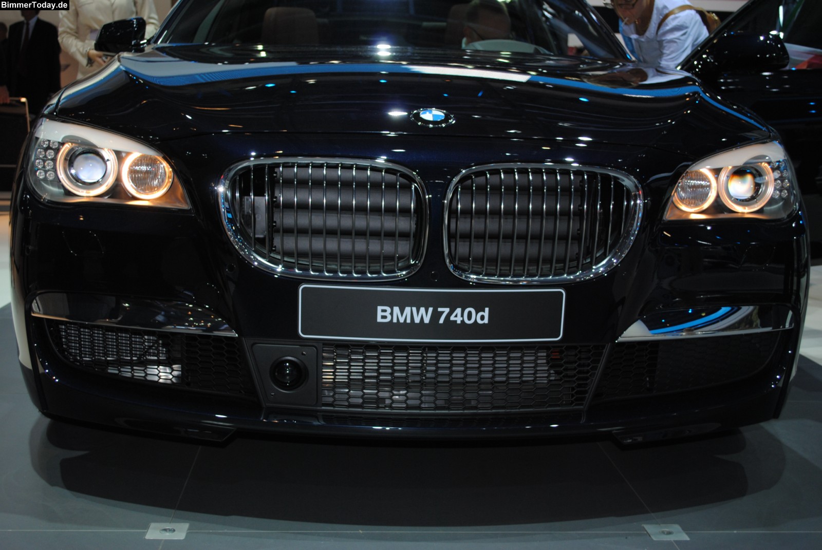 Und weiter geht das Feuerwerk der Neuheiten aus Halle 11 – auch der BMW 740d mit seinem 306 PS starken Biturbo-Reihensechszylinder ist dort zu sehen und präsentiert sich außerdem im schicken Gewand des M Sportpakets.