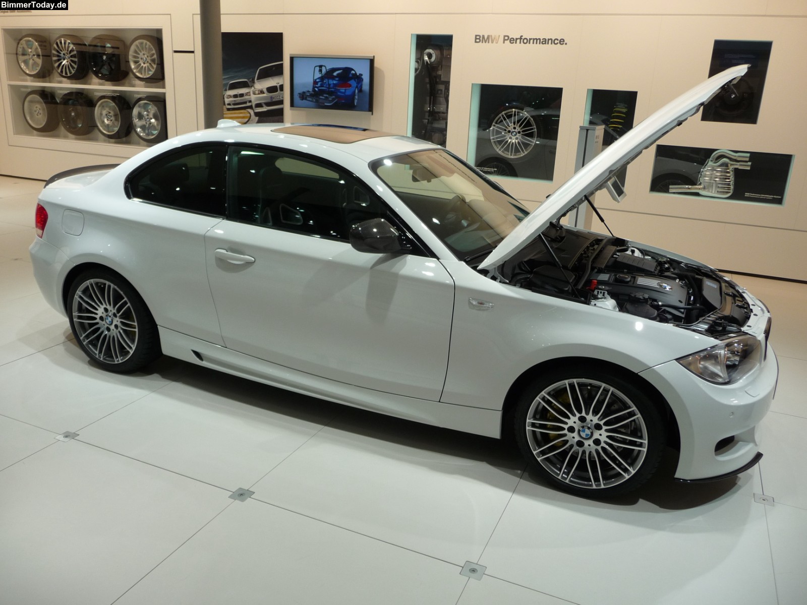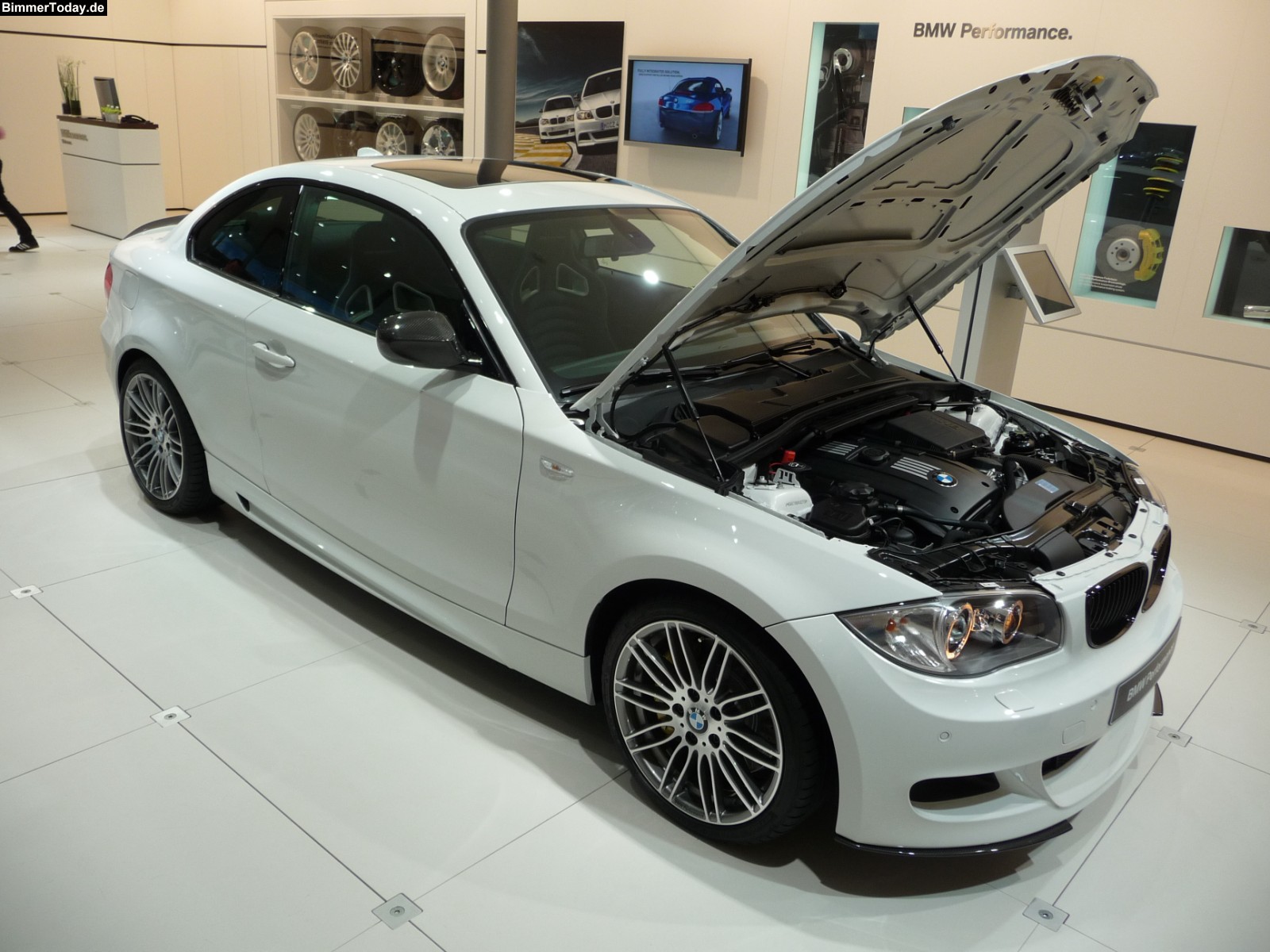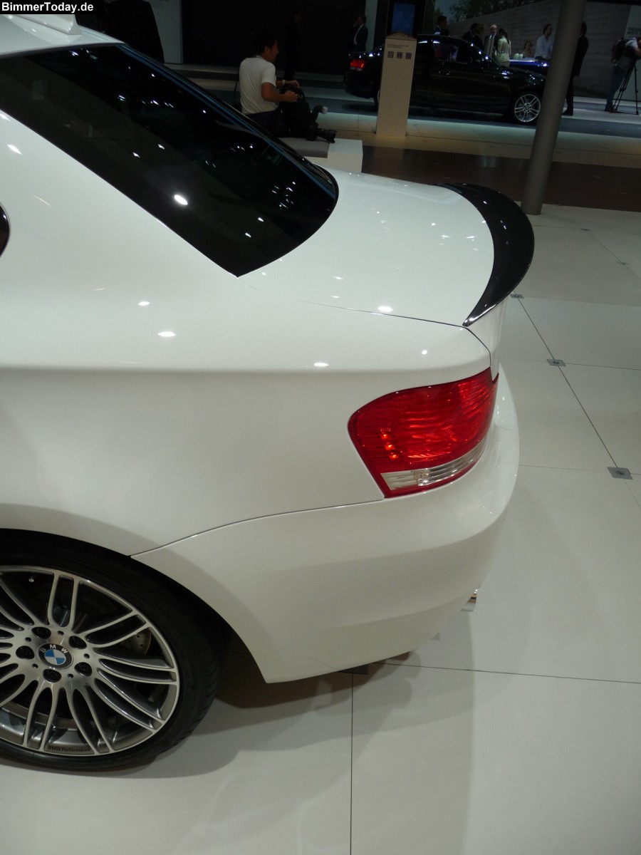 Neben der BMW 320d Limousine mit praktisch allen Anbauteilen von BMW Performance hat BMW ein weiteres Modell im vollen Performance-Ornat auf der IAA ausgestellt. Dabei handelt es sich um ein BMW 135i Coupé, das auch über die Leistungssteigerung auf 326 PS verfügt.