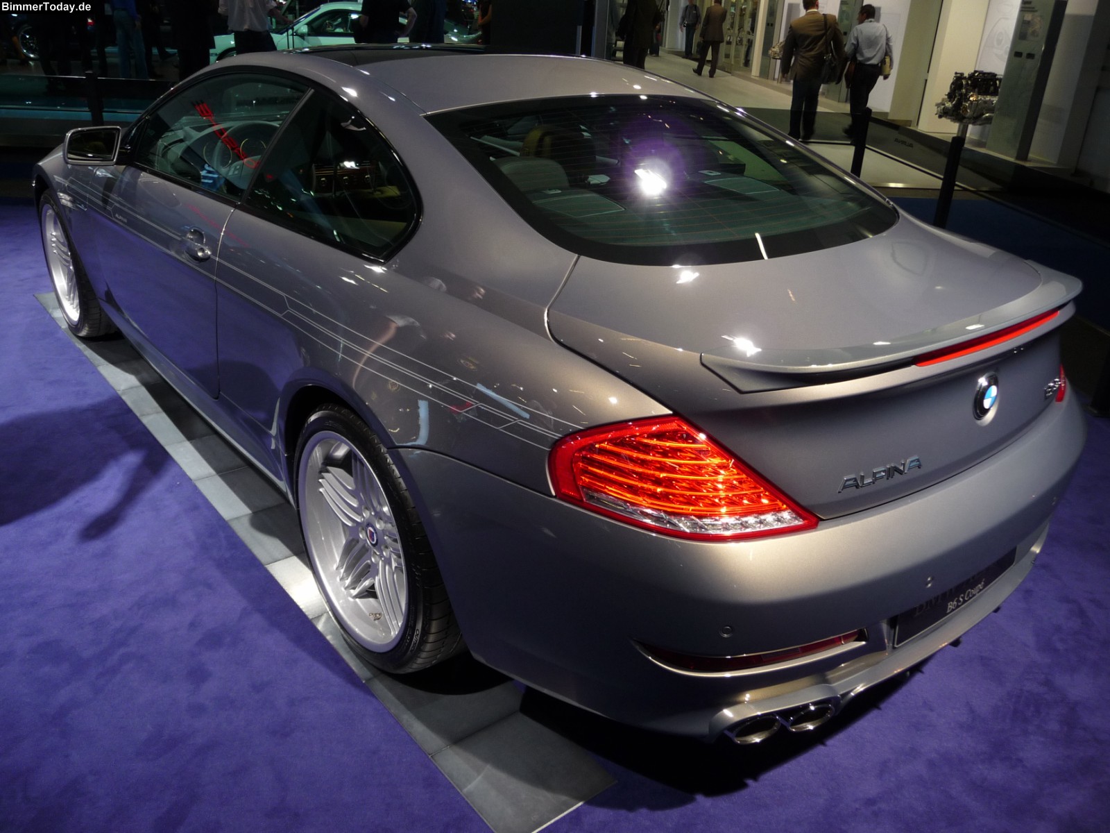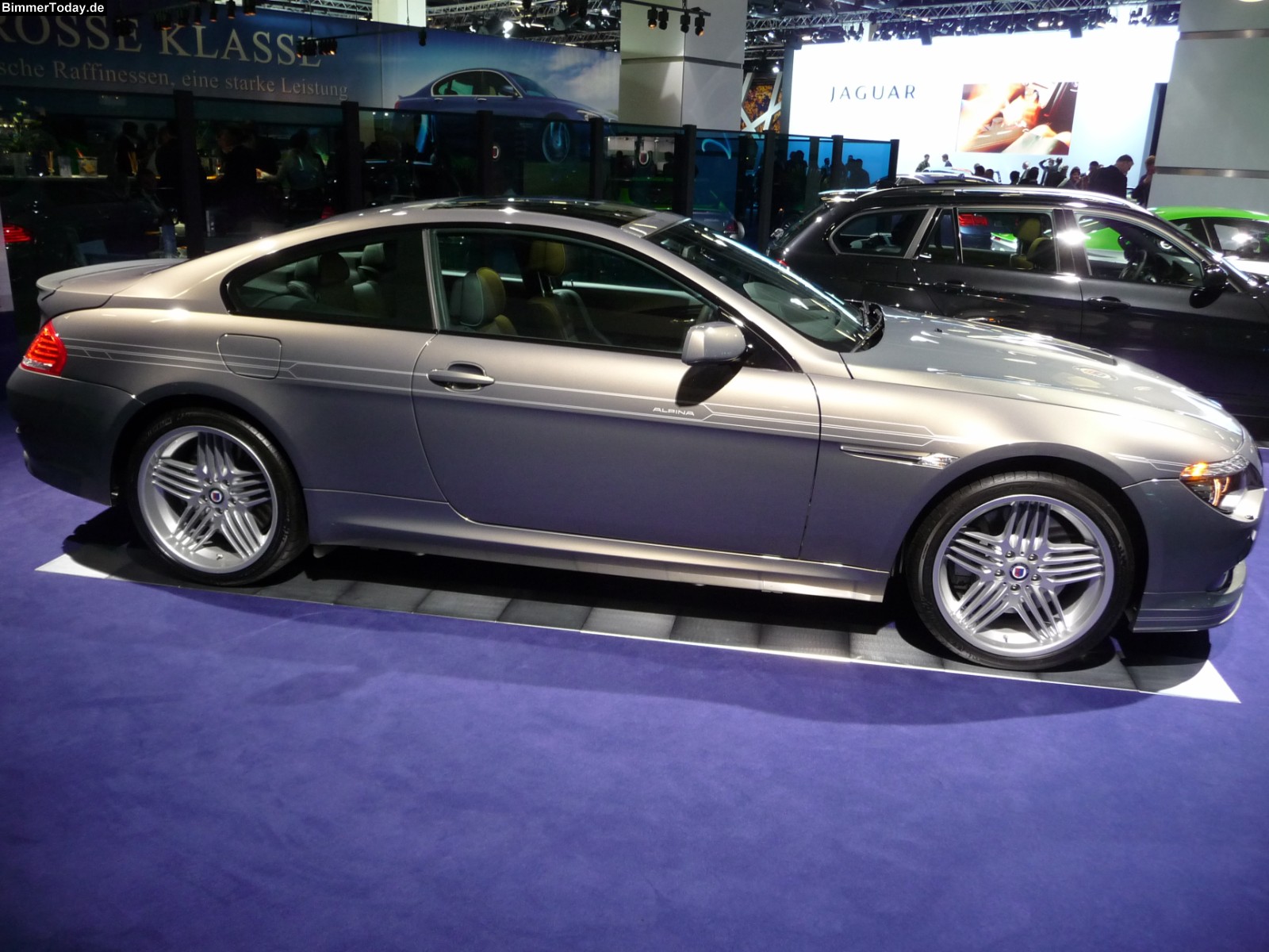 Auch der Alpina B6 S ist auf dem Stand des Buchloer BMW-Veredlers präsent und wird den Besuchern in einem dunklen Grau präsentiert. Der 530 PS starke V8-Motor genügt im B6 S für eine Höchstgeschwindigkeit von weit über 300 km/h.