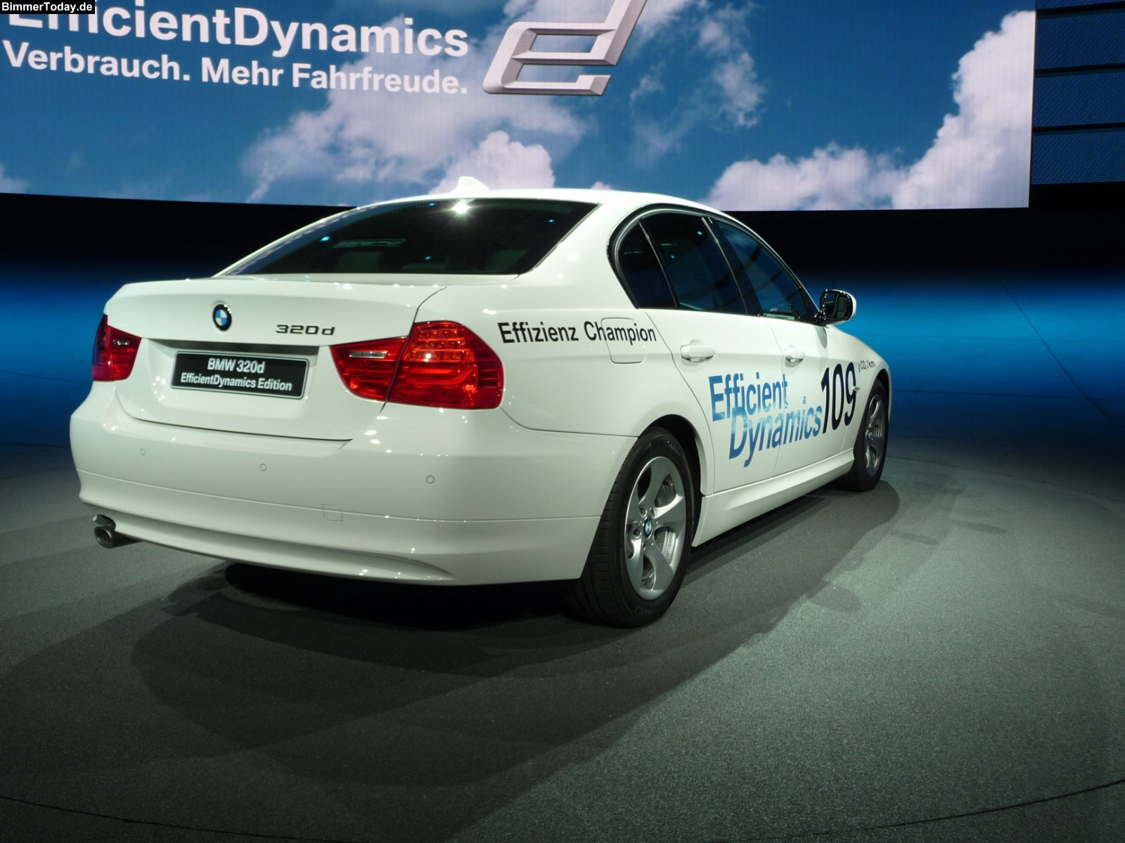 Neben dem Vision EfficientDynamics Concept gibt es auf der IAA natürlich auch schon heute erhältliche Fahrzeuge mit extrem niedrigem Verbrauch. Anders als bei anderen Herstellern verfügt der BMW 320d EfficientDynamics Edition aber dennoch über ausreichend Leistung, denn 163 PS entsprechen fast der Leistung des normalen BMW 320d.