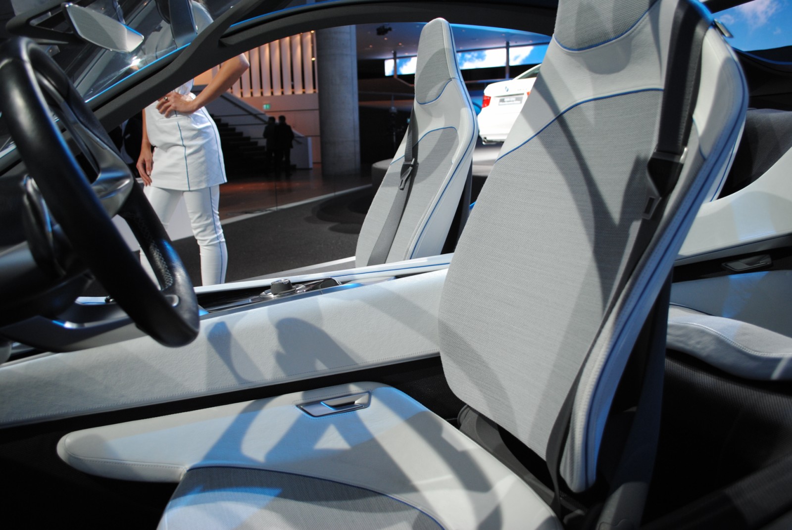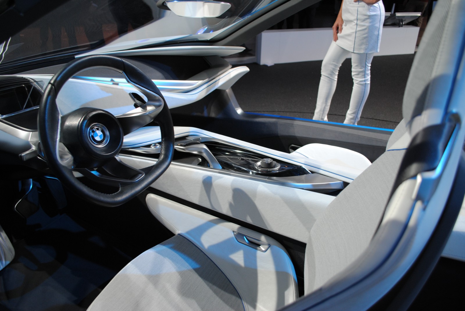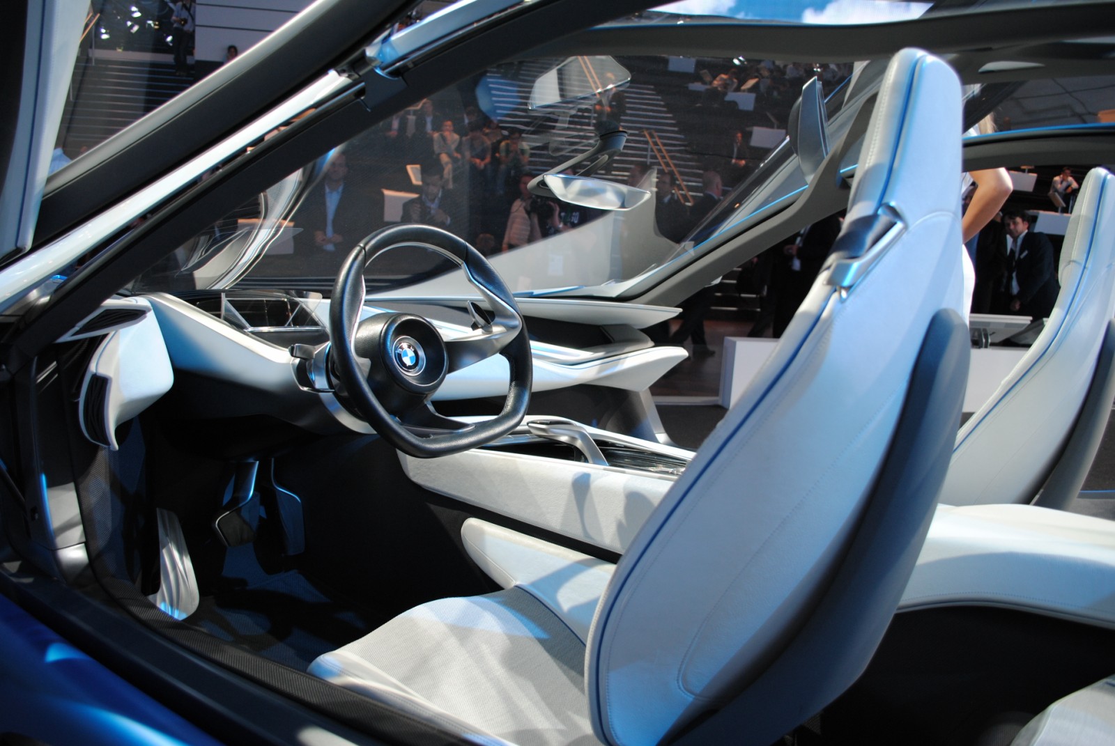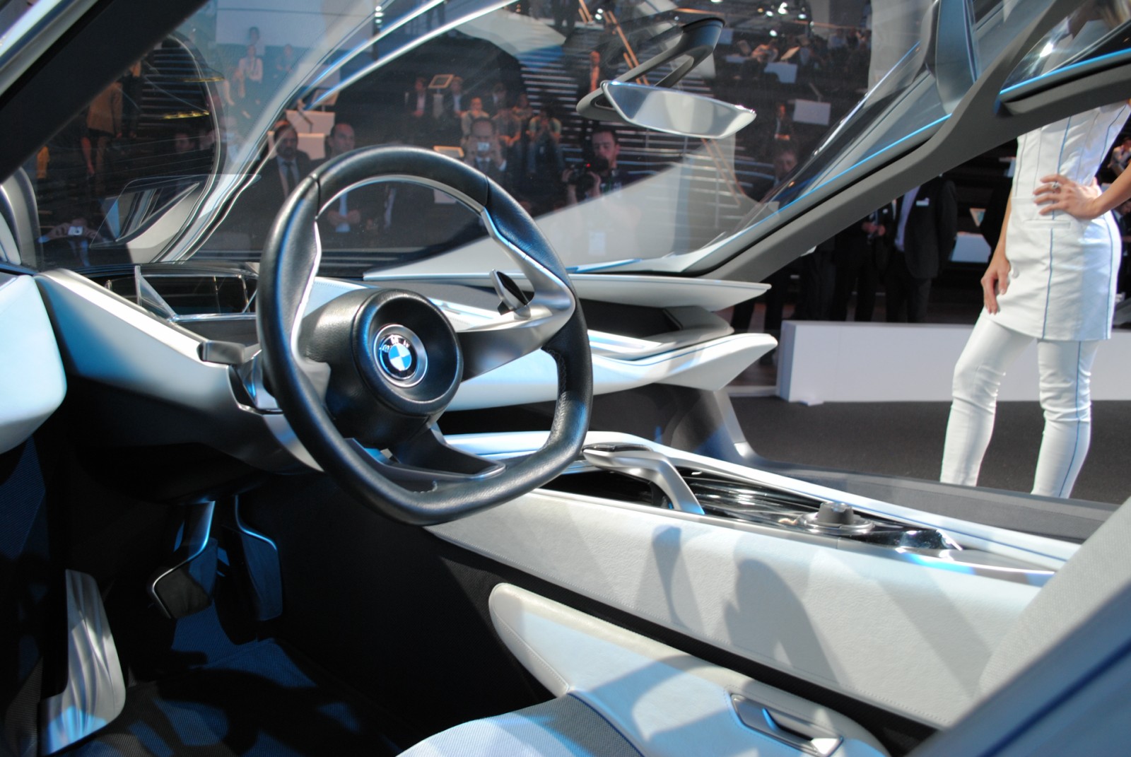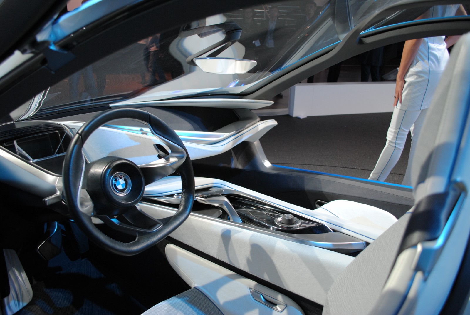 Vom Exterieur des BMW Vision EfficientDynamics Concept gibt es mittlerweile hunderte Bilder, das Interieur ist allerdings noch nicht besonders häufig detailliert zu sehen gewesen. Das liegt daran, dass man eigentlich kaum nah genug an das Concept Car herankommt, um gute Aufnahmen vom Innenraum zu machen.