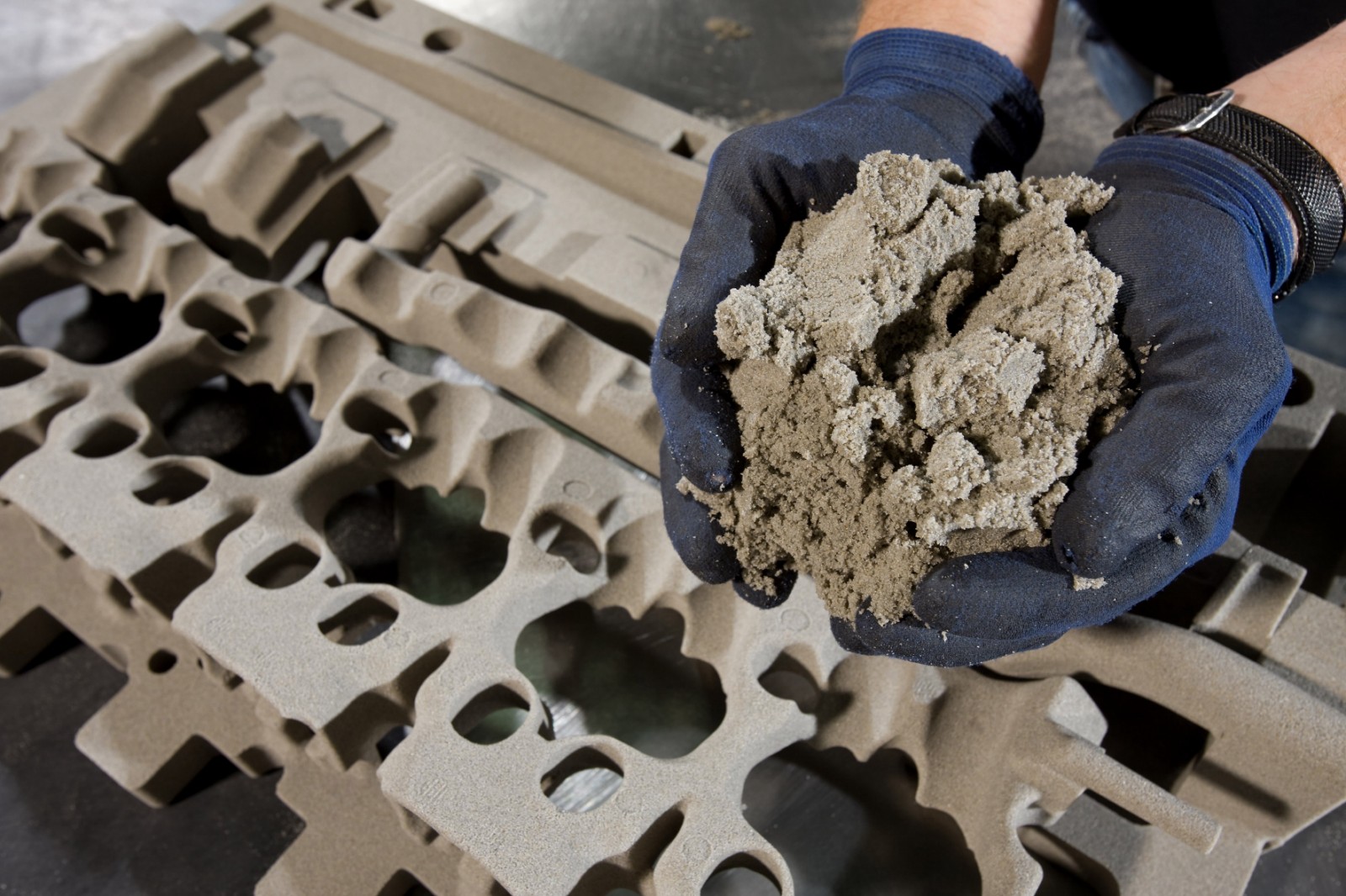 Von den rund 1,8 Millionen jährlich in Landshut gefertigten Guss-Komponenten mit einem Gesamtgewicht von 45.000 Tonnen wird rund die Hälfte im bereits angesprochenen Kokillengießverfahren mit Sandkernen und folglich künftig mit deutlich weniger Emissionen produziert. Pro Arbeitstag kommen hierfür rund 120 Tonnen Sand zum Einsatz, der zu 90% recyclet werden kann.