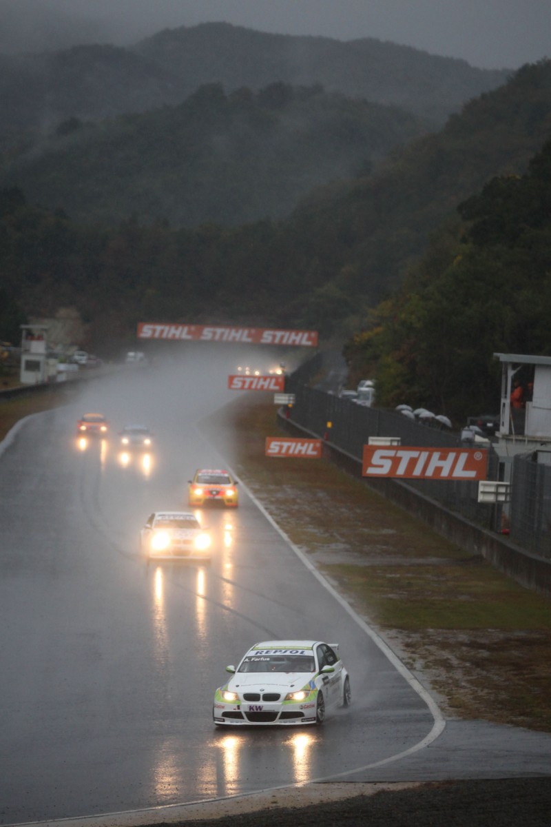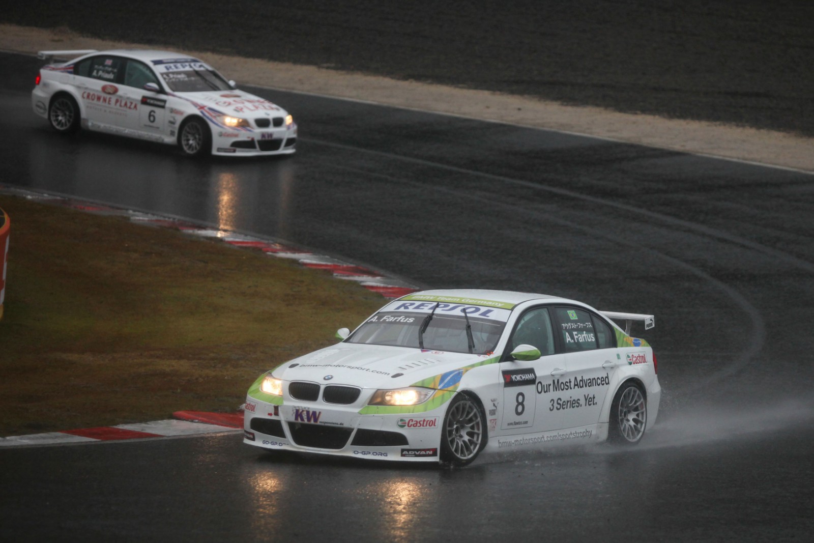 Erfolgreiches Wochenende für BMW Motorsport in Okayama: Nach dem guten Qualifying von gestern konnten heute bei regnerischen Bedingungen in Okayama gleich zwei Doppelsiege eingefahren werden! Das heißeste Eisen in der Fahrerwertung, Augusto Farfus, hatte allerdings gleich zu Beginn von Lauf eins Probleme und konnte sich daher nur mit viel Mühe auf den achten Platz im ersten Lauf kämpfen.