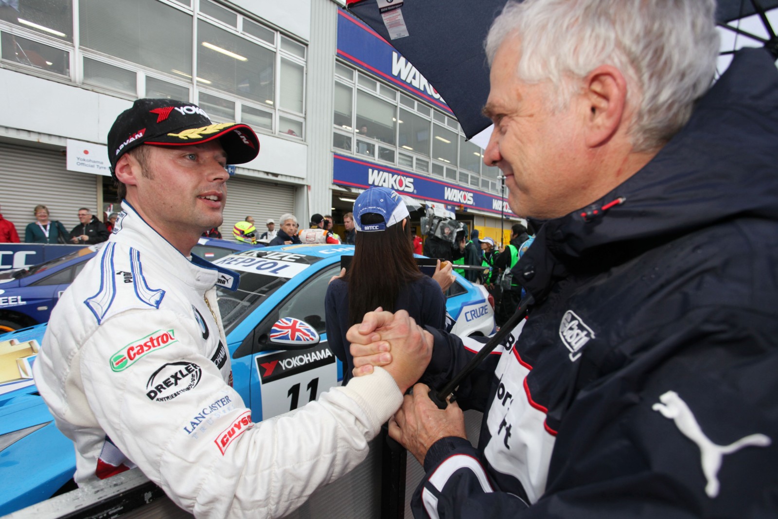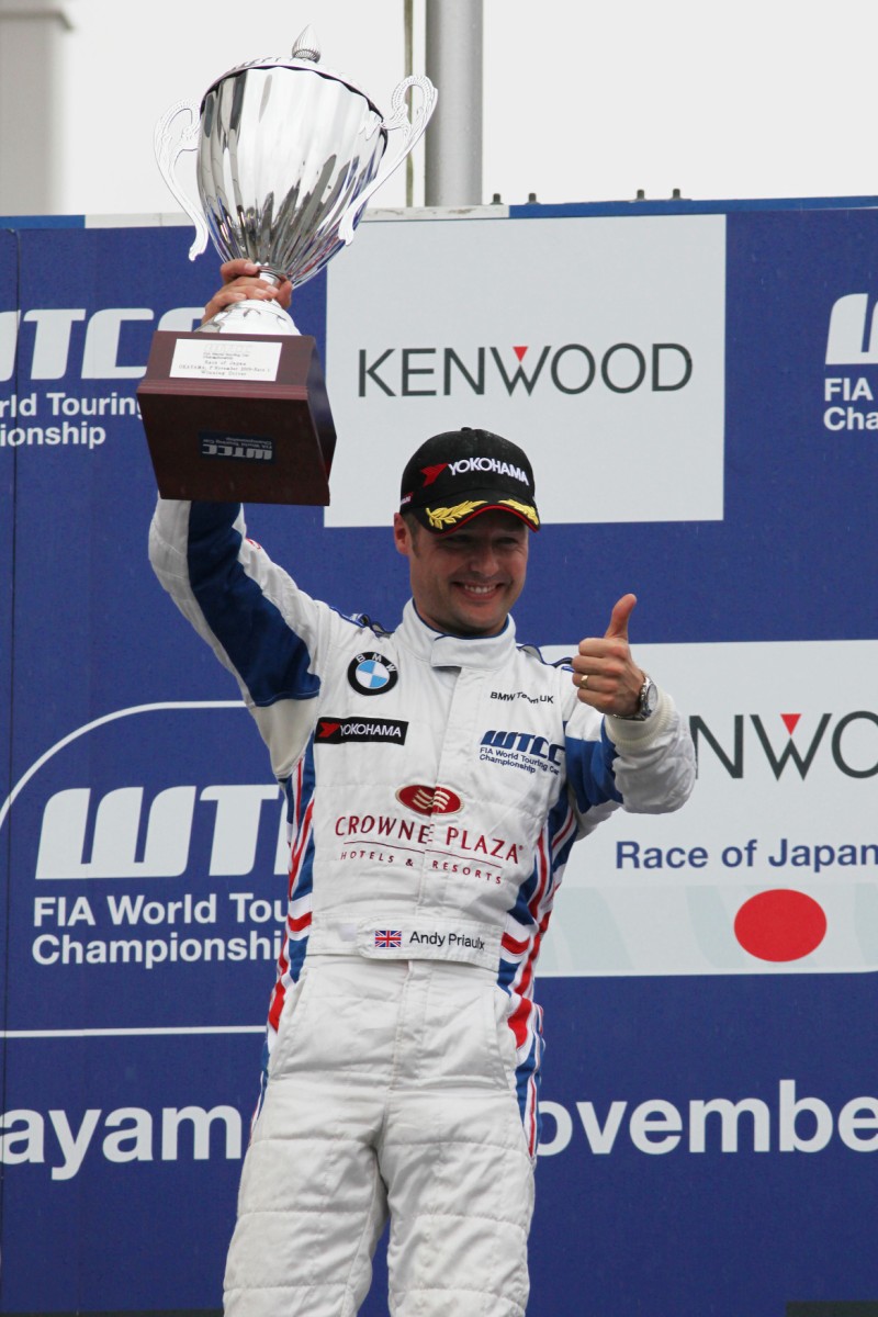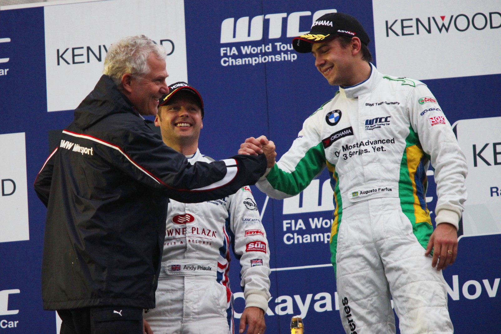 Andy Priaulx: “Das erste Rennen war hart. In Kurve 2 stand das Wasser, und es war nicht einfach, das Auto auf der Strecke zu halten. Als Gabriele Tarquini nach dem Start ins Aus rutschte, wäre ich ihm beinahe gefolgt. Es ist aber gut gegangen. Jörg Müller ist hinter mir ein super Rennen gefahren und war immer in meinem Rückspiegel. Eine Runde mehr, und er hätte wohl gewonnen. Unser Duell hat Spaß gemacht, aber ich war auch froh, als es vorbei war. Dass ich auch in zwei Lauf auf das Podium fahren konnte, war toll. Es ist schön zu sehen, wie gut wir zum Saisonende unterwegs sind.”