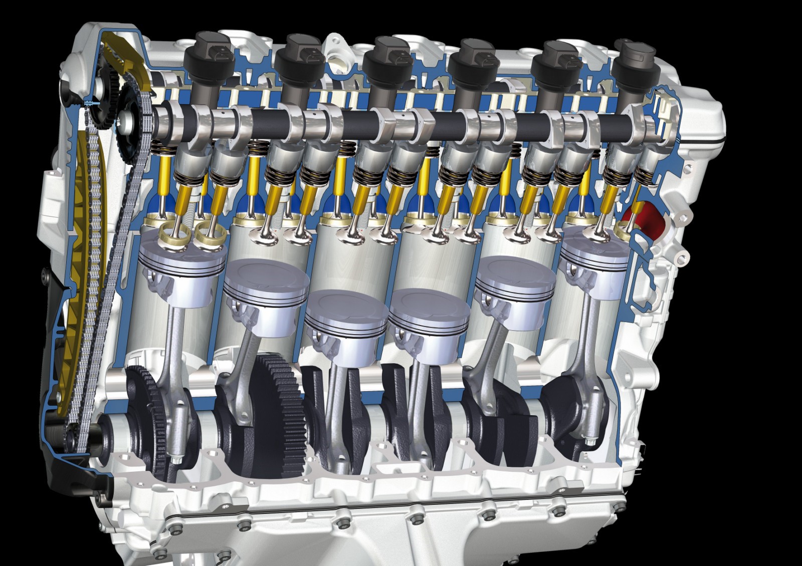 Natürlich wurde auch auf das Thema Gewicht geachtet und dank gezielter Leichtbau-Maßnahmen in allen Bereichen sowie dem “Fehlen” einer Ausgleichswelle, die dank der Schwingungsarmut von Reihensechszylindern nicht benötigt wird, hält sich das Mehrgewicht gegenüber einem Vierzylinder-Triebwerk in überschaubaren Grenzen.