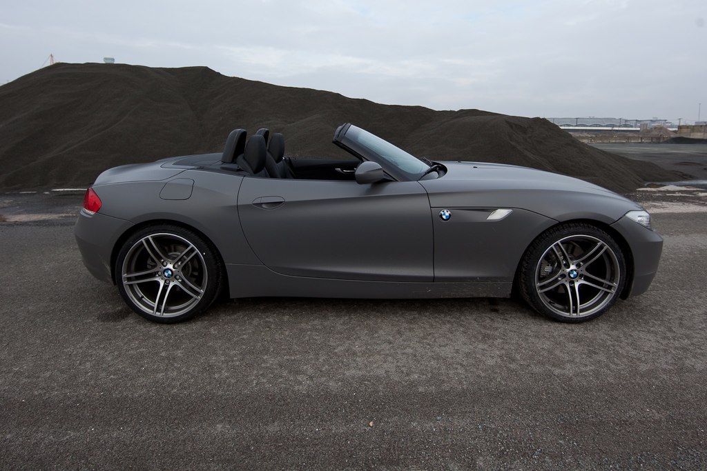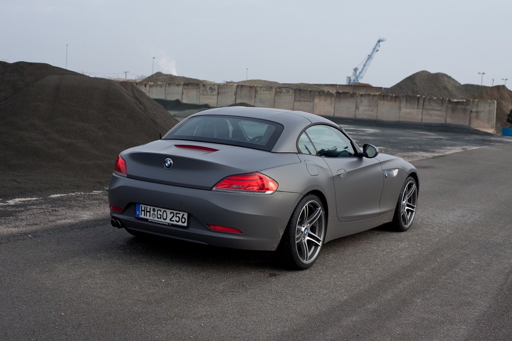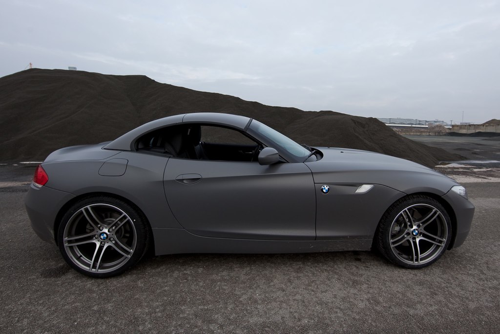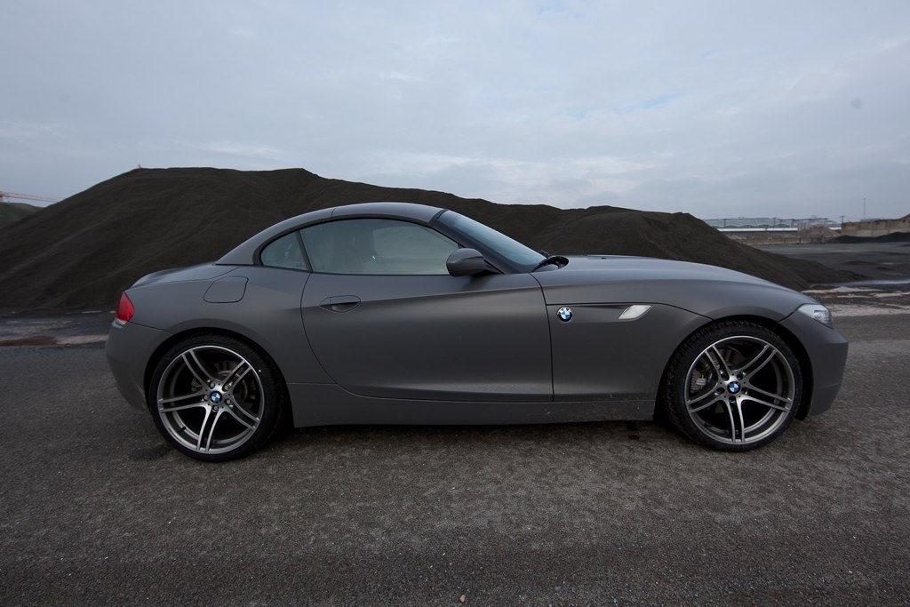 Ein besonders sehenswertes Exemplar dieser Art ist ein BMW Z4 Roadster aktueller Bauart, der nun in einem dunklen und matten Grau daherkommt. Das Fahrzeug gehört offenbar dem User paepcke von Zpost.com und ist mit etwas Glück in Hamburg zu sehen. Besonders in Kombination mit den großen Felgen von BMW Performance ergibt sich ein sehr sehenswertes Gesamtkunstwerk.