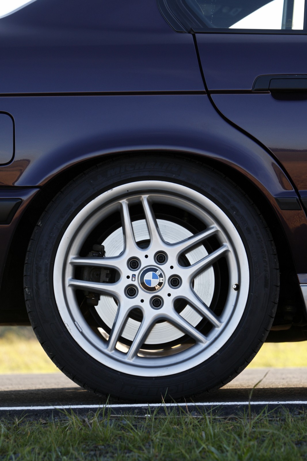 Die auffälligsten Änderungen waren wohl die für ihre Zeit auffällig großen Felgen im heute beinahe alltäglichen 17″-Format – der BMW M5 E34 war der erste BMW überhaupt, der serienmäßig auf derart großem Fuß fuhr. Vorne wie hinten waren 235er Reifen montiert, die für die damaligen Verhältnisse ebenfalls besonders breit waren. Weiteres Erkennungsmerkmal war die Abgasanlage mit ihren zwei 70 Millimeter-Endrohren, die aber im Vergleich zu den heutigen Anlagen der Modelle der M GmbH ebenfalls äußerst dezent ausfiel.