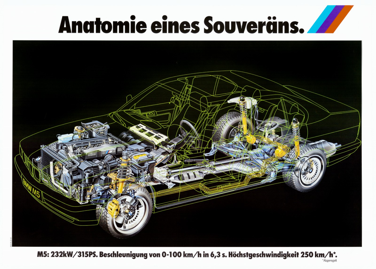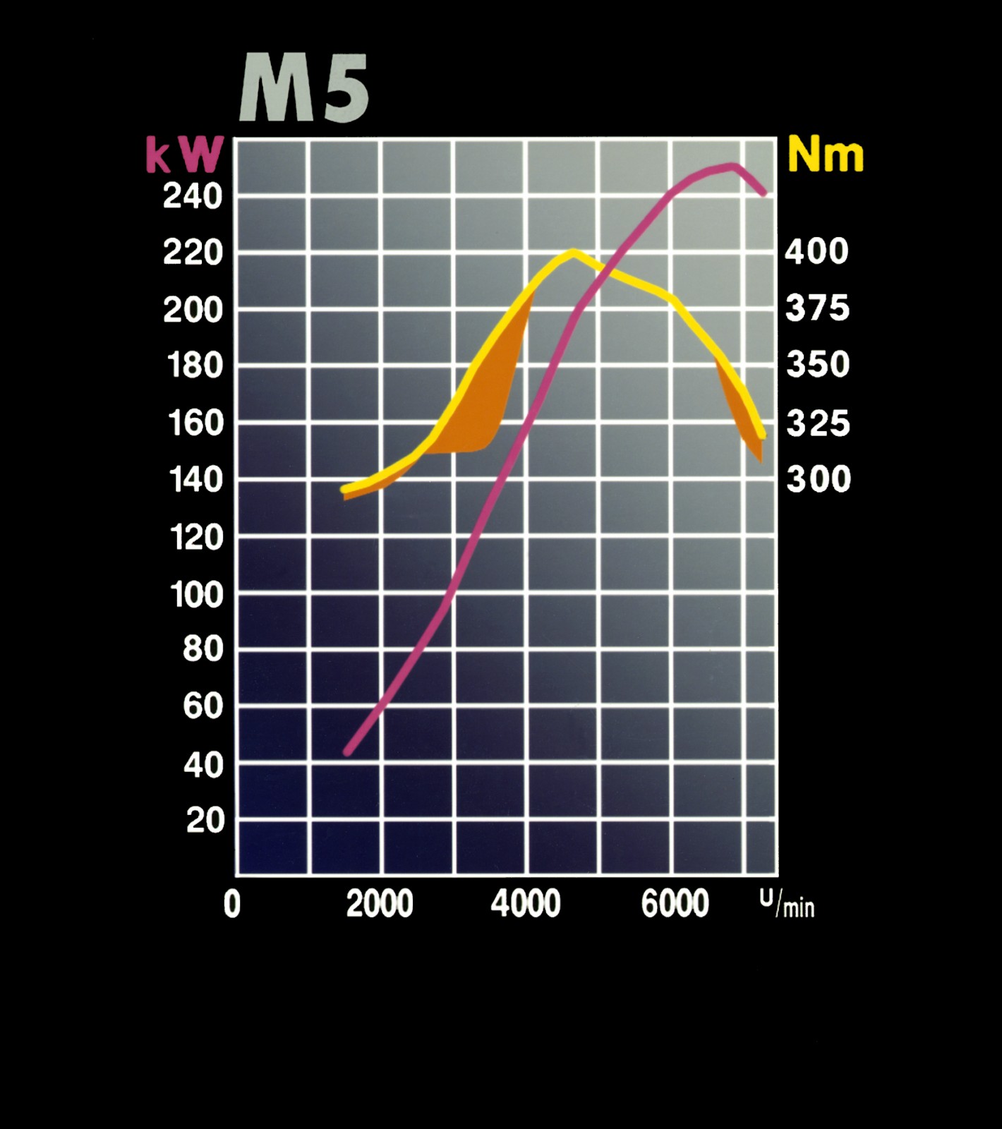 Die weiteren Änderungen am Triebwerk umfassten eine Hochspannungs-Zündanlage mit sechs Einzelzündspulen, ein hochmodernes Motormanagement sowie spezielle Metallkatalysatoren. So gerüstet benötigte der M5 nur noch 5,9 Sekunden für den Sprint auf Landstraßentempo.