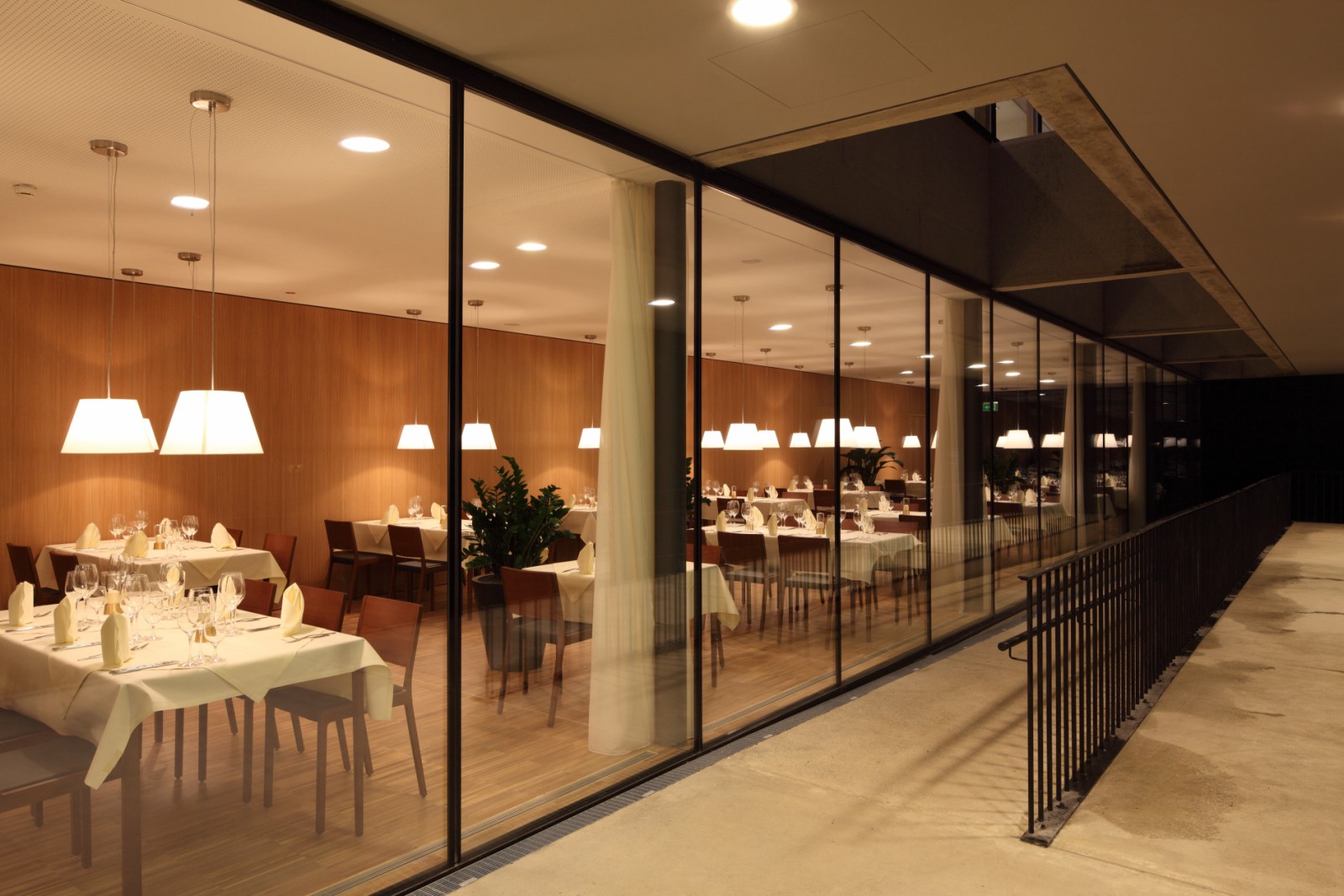 Der sechsgeschossige und rund 15 Millionen Euro teure Bau wurde vom Architekturbüro Oskar Leo Kaufmann | Albert Rüf entworfen und empfängt seine Besucher ab sofort mit einer lichtdurchfluteten Eingangshalle. Im Erdgeschoss befinden sich neben der Lobby auch noch eine Hotelbar, zwei Restaurants, eine Kochbühne und der Küchentrakt.