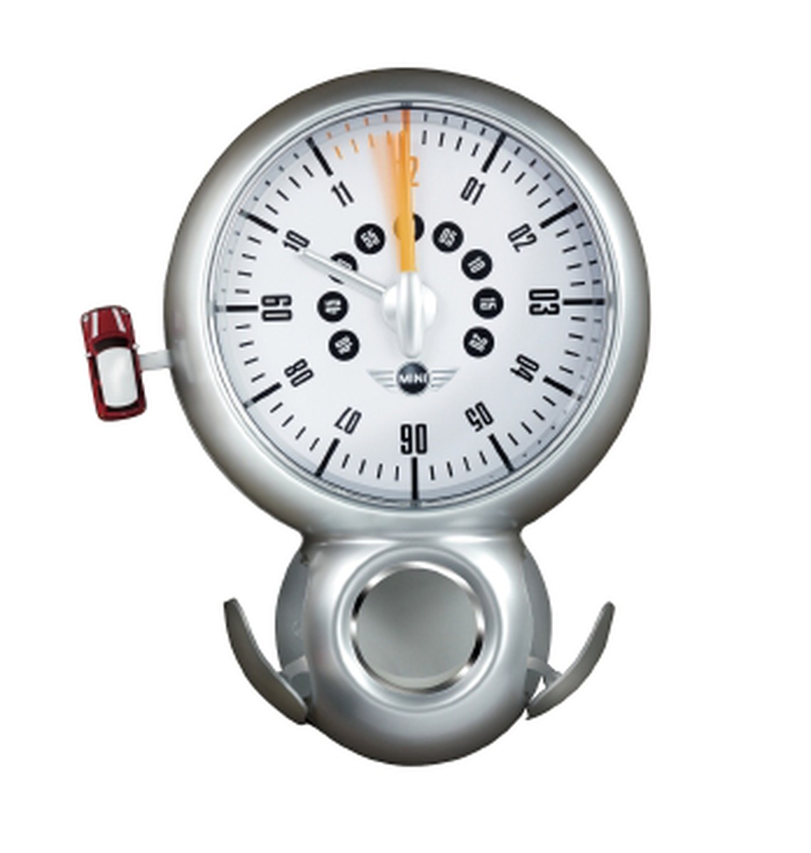 Ein weiterer Vorschlag ist die MINI Cuckoo Clock für 99€, die die Optik des Center Speedo ins heimische Wohnzimmer bringt und zu jeder vollen Stunde von einem kleinen MINI umrundet wird – selbstverständlich nur dann, wenn noch Licht an ist, denn mittels eines Photosensors wird sichergestellt, dass der MINI nur dann auf Reisen geschickt wird, wenn sein Besitzer noch wach ist.