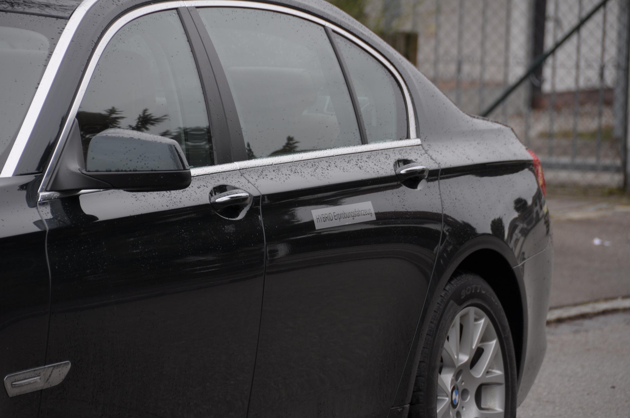 Von Christian Wimmer stammen nun drei interessante Bilder aus Gilching, die uns die US-Version des BMW ActiveHybrid 7 zeigen. Die Fotos sind in der Nähe vom alten Wohnort Chris Bangles entstanden und der Hybrid ist klar an den entsprechenden Aufklebern erkennbar. Die im vorderen Kotflügel eingelassenen Reflektoren sowie die Kennzeichenmulde im Kofferraumdeckel sind untrügliche Hinweise für die US-Version des BMW 7ers.