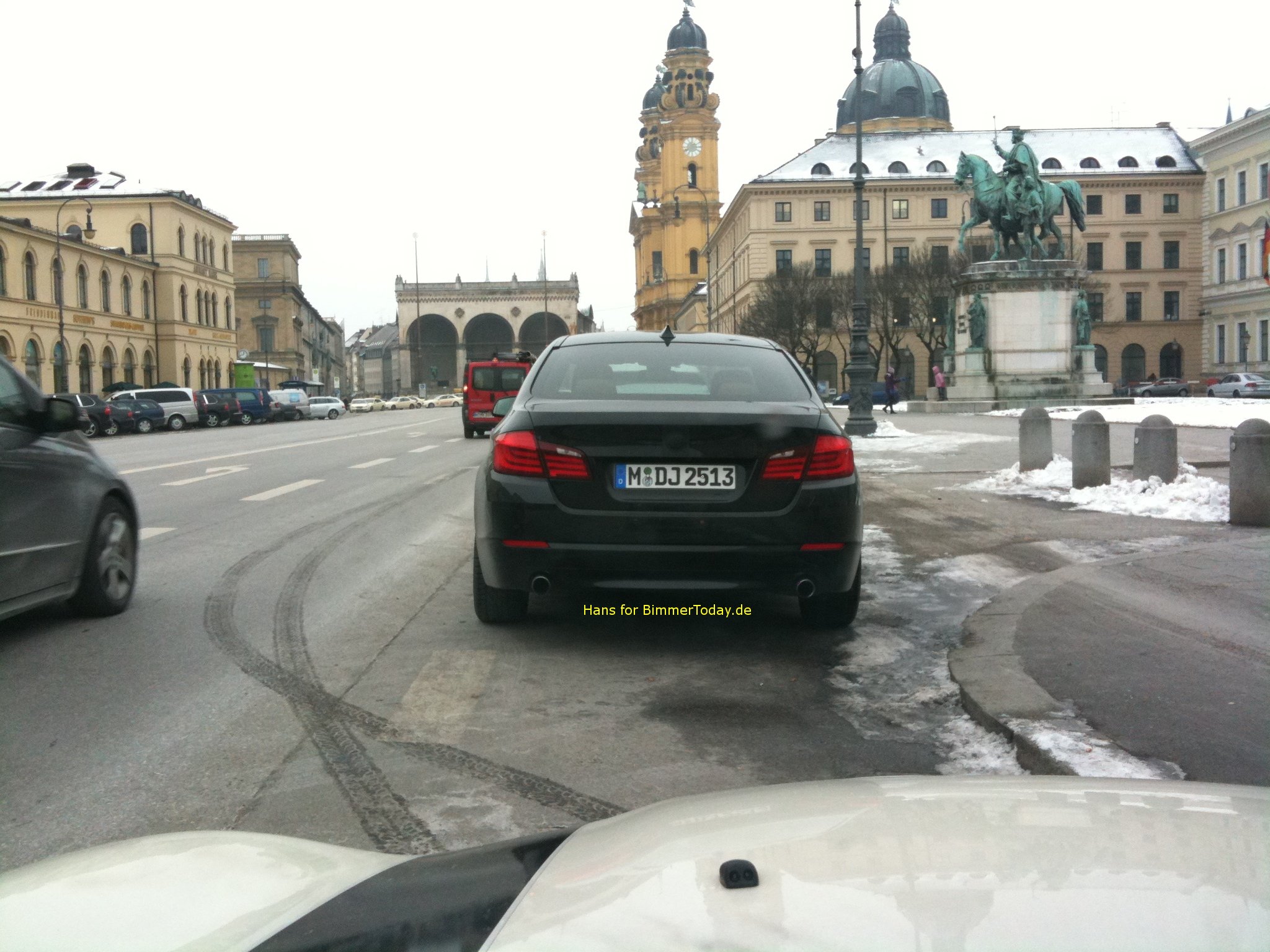 Erst heute Vomittag haben wir erstmals Bilder eines schwarzen BMW 5er F10 zu sehen bekommen und nun geht es auch schon weiter. Dank unseres Lesers Hans, der den 5er in der Nähe vom Münchner Odeonsplatz gesehen hat, haben wir auch diese Bilder exklusiv. Die ordentlich geputzte und an einer befahrenen Straße geparkte Limousine macht beinahe den Eindruck, als ob sie an diesem Ort abgestellt worden wäre, um gesehen zu werden.