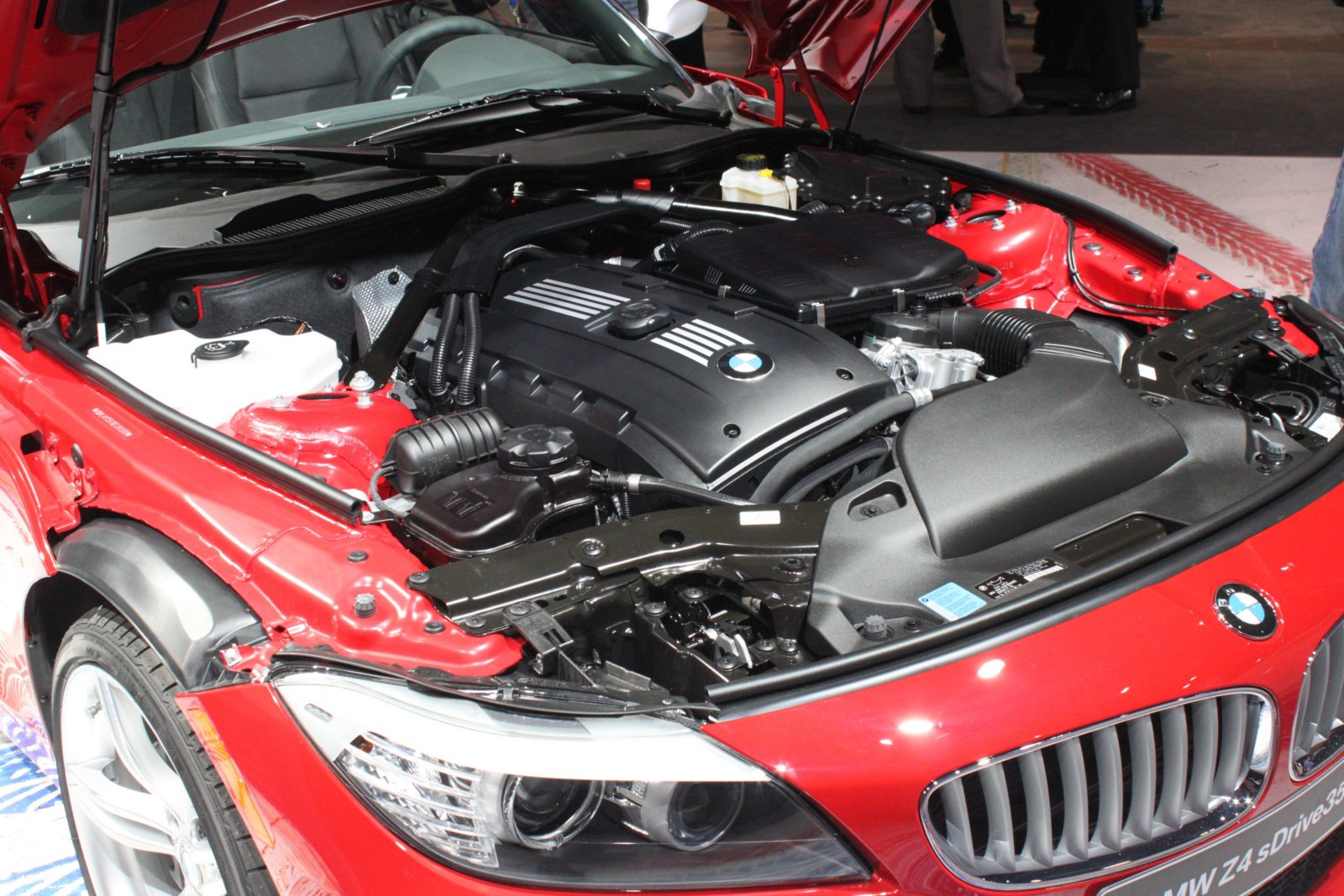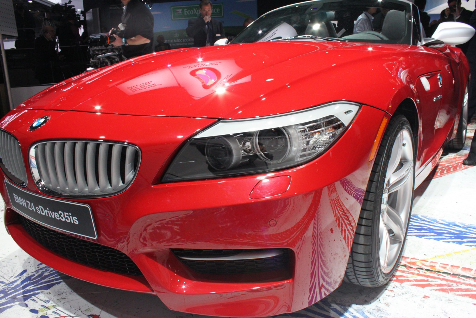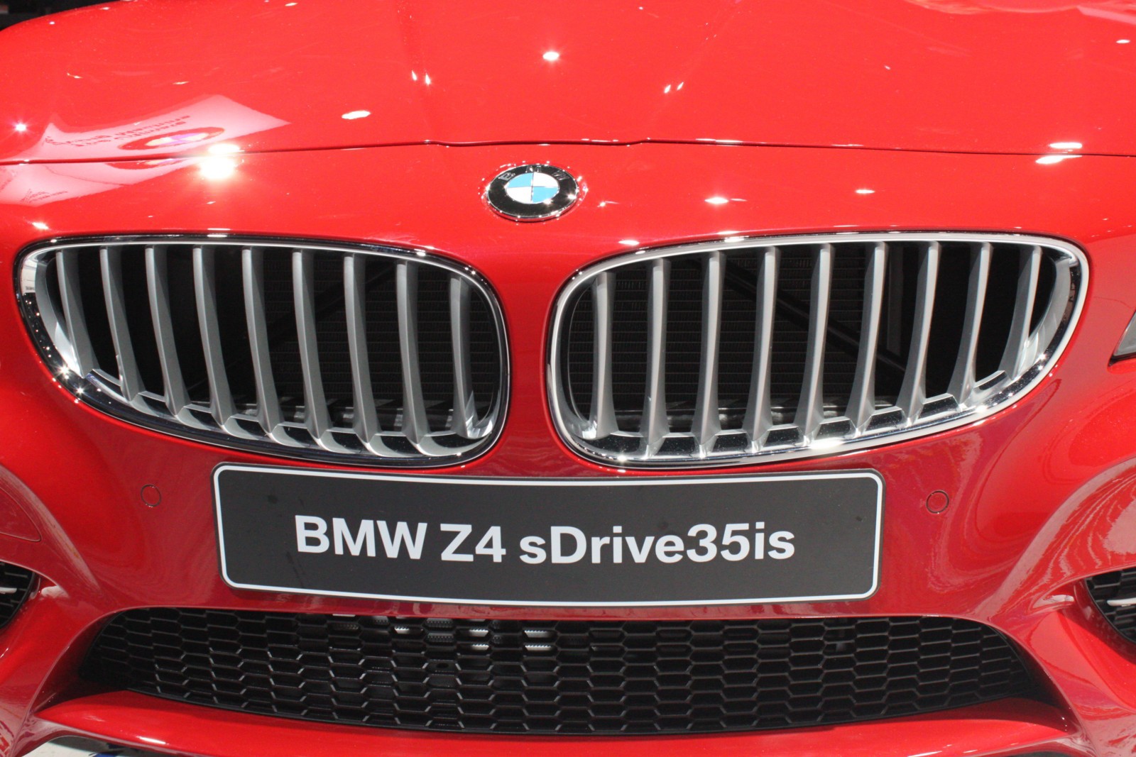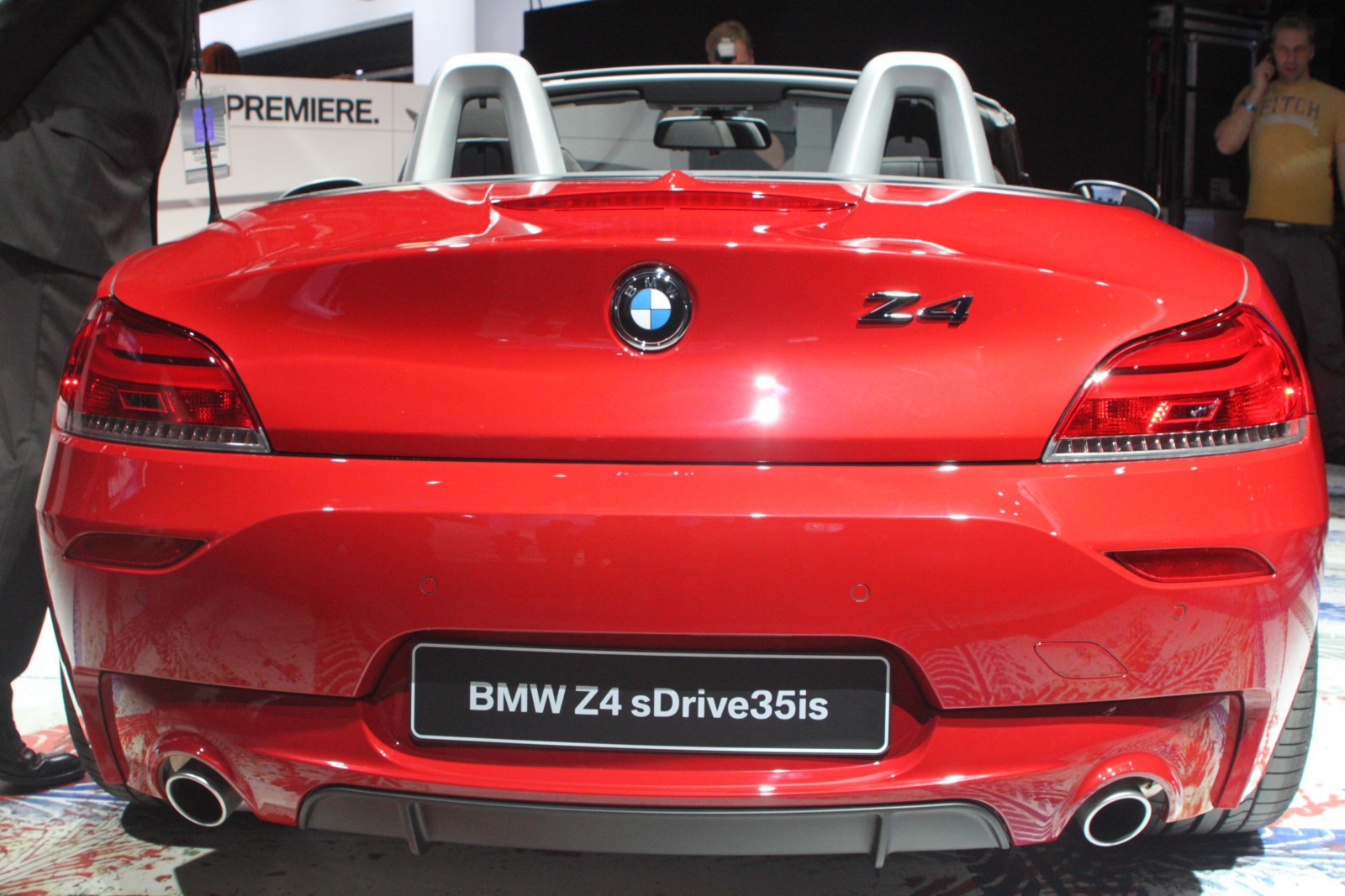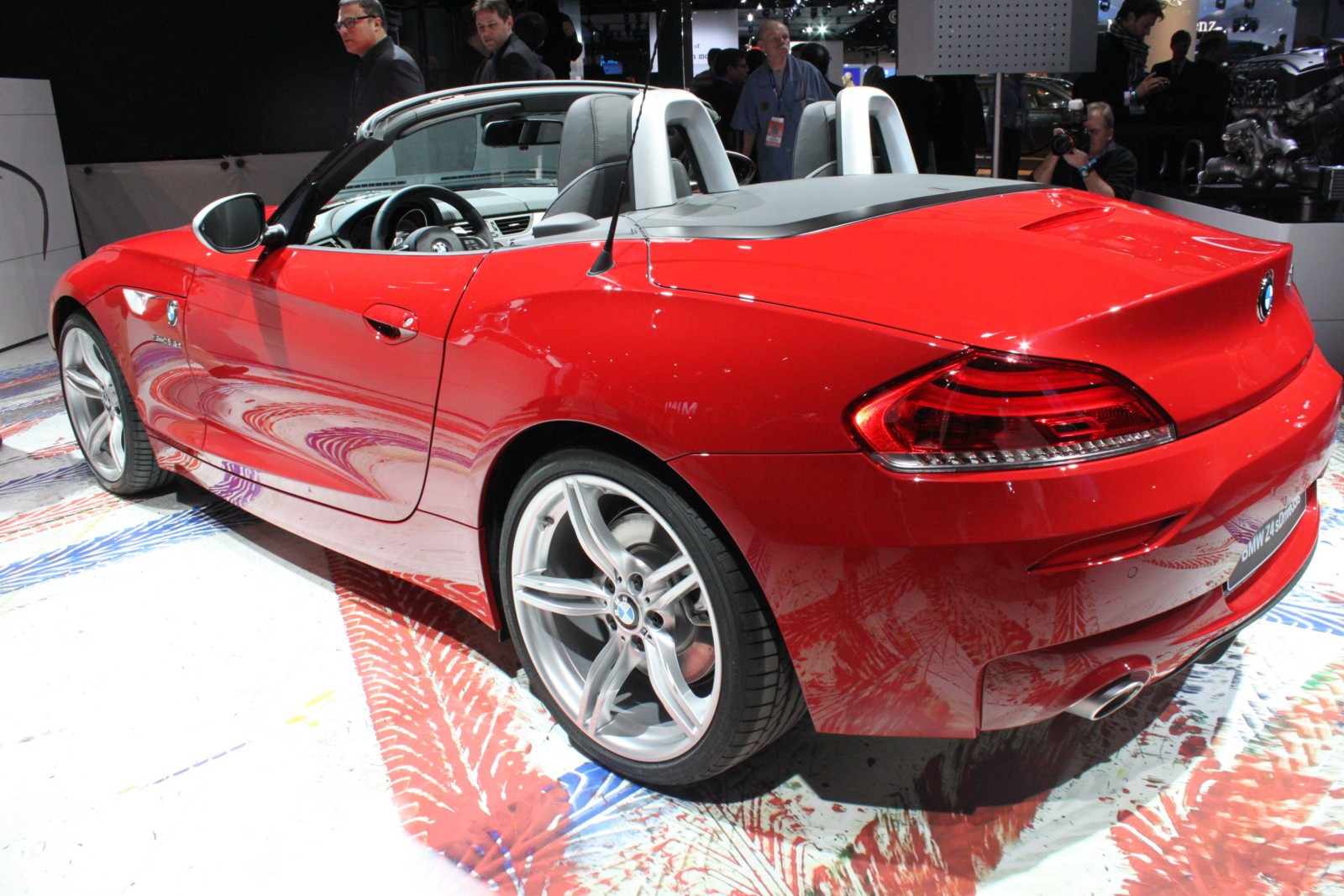 Der in Detroit ausgestellte Z4 E89 ist wie die Pressefahrzeuge in feurigem Rot lackiert und unterstreicht damit den aggressiven Auftritt des Roadsters, der serienmäßig mit dem neuen M Sportpaket ausgestattet ist. Erkennbar ist das Top-Modell an den silbernen Außenspiegeln und den ebenfalls lackierten Längsstreben in den Nieren. Auch an der Heckschürze unterscheidet sich der Z4 sDrive35is von den anderen BMW Z4 mit M Sportpaket, denn der die Endrohre umschließende Diffusor-Einsatz der Heckschürze ist nur beim Topmodell in Wagenfarbe lackiert.