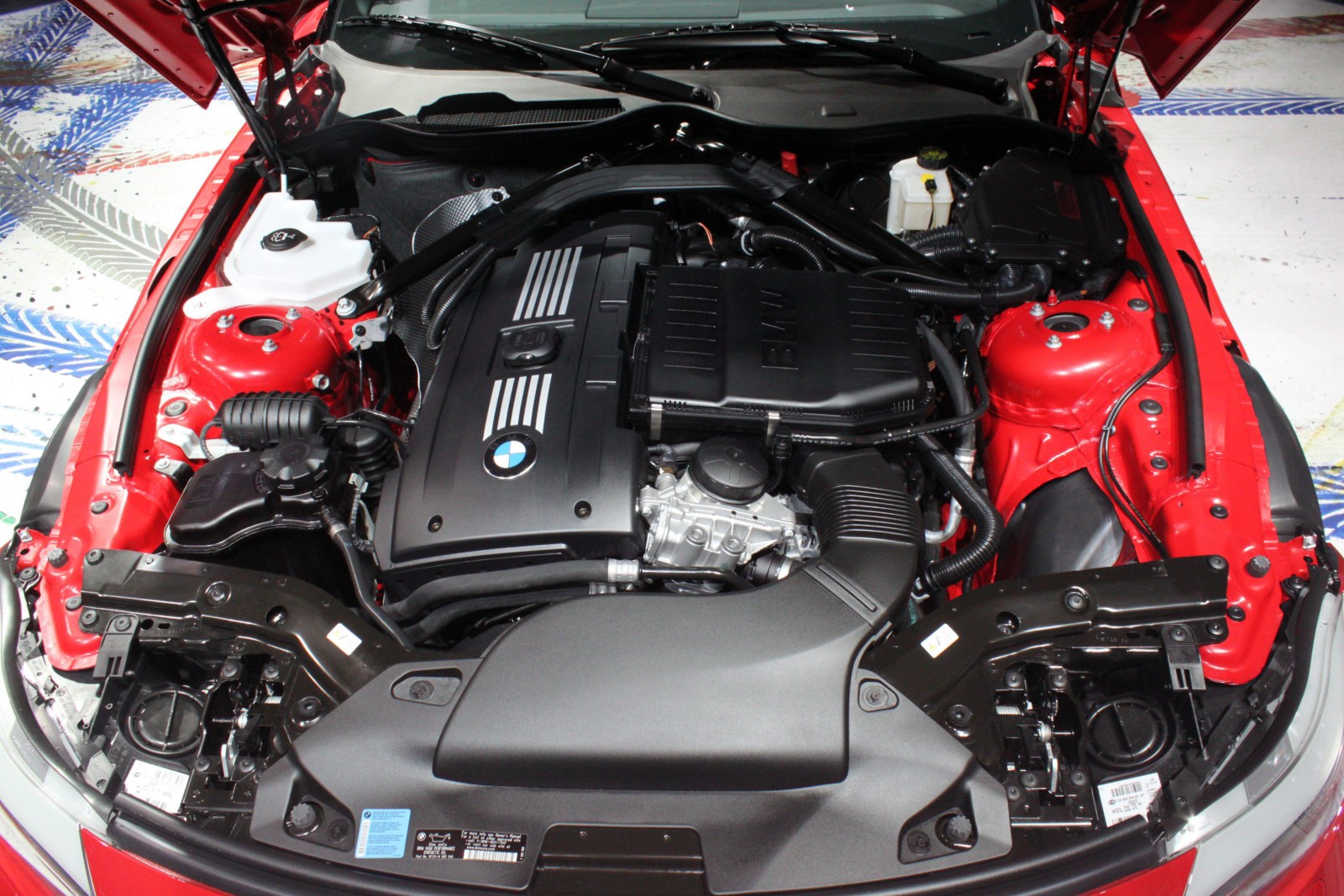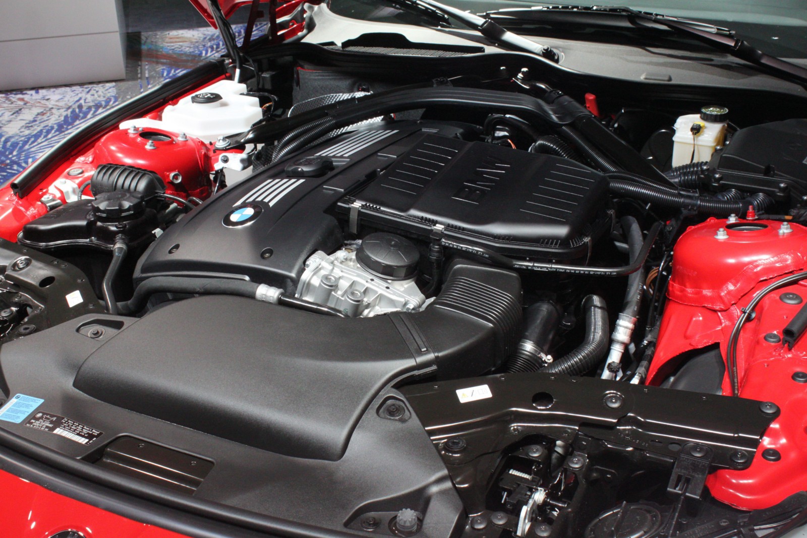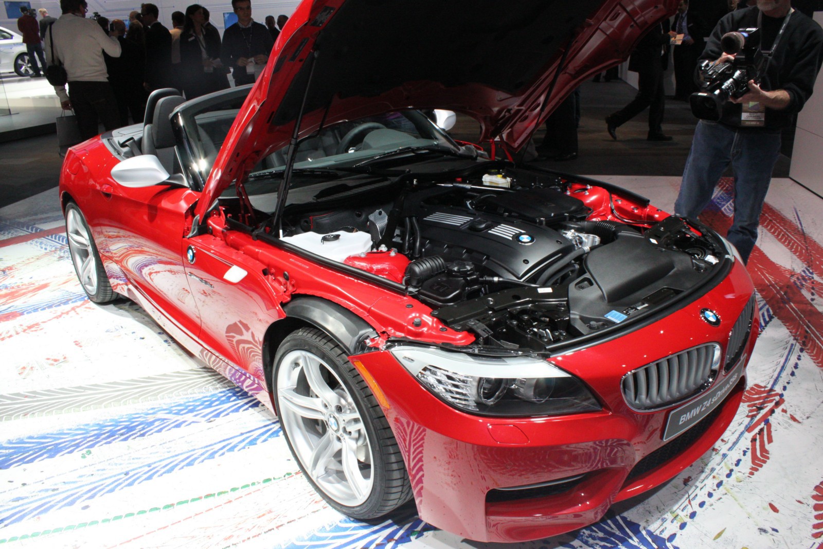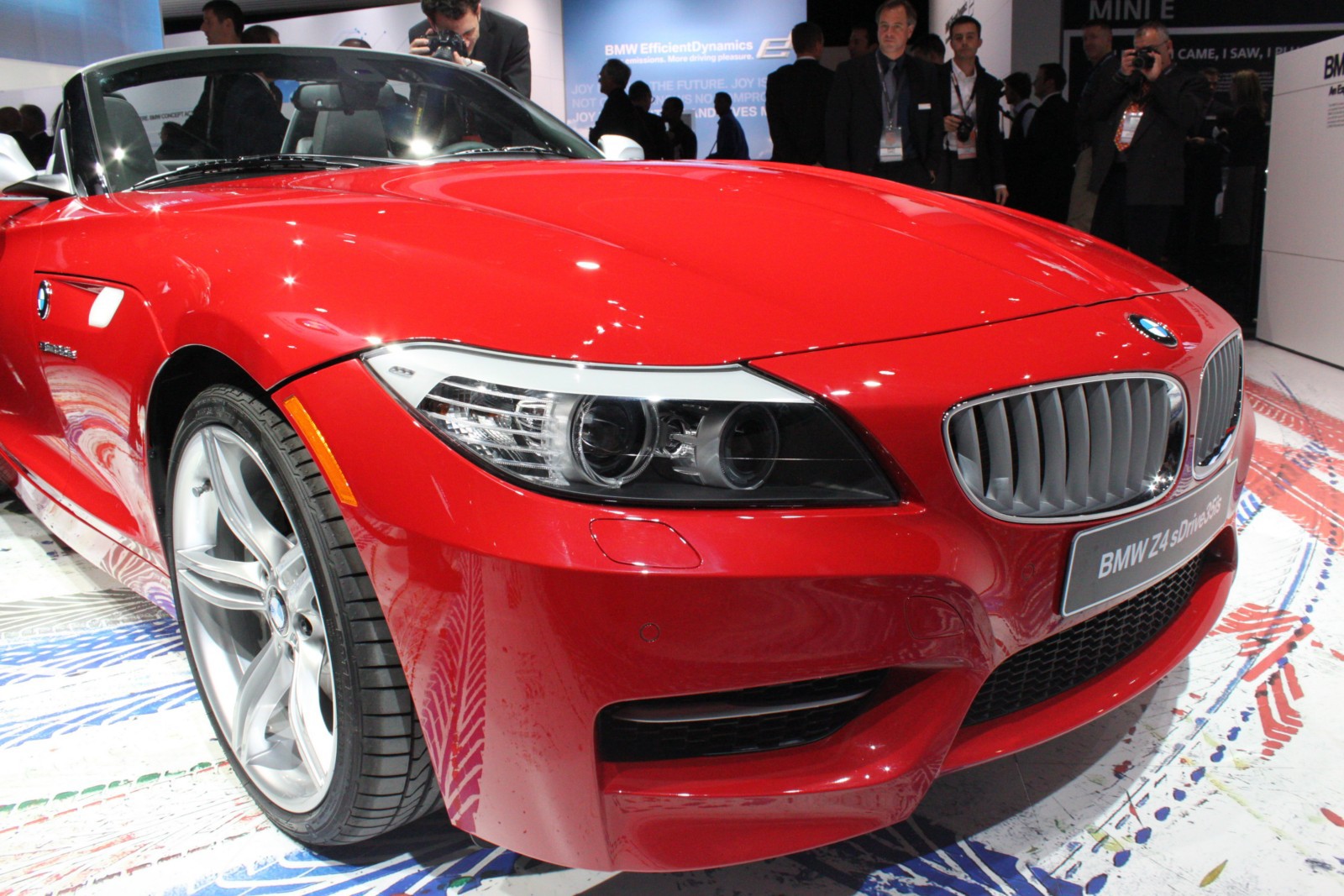 Der in Detroit ausgestellte Z4 E89 ist wie die Pressefahrzeuge in feurigem Rot lackiert und unterstreicht damit den aggressiven Auftritt des Roadsters, der serienmäßig mit dem neuen M Sportpaket ausgestattet ist. Erkennbar ist das Top-Modell an den silbernen Außenspiegeln und den ebenfalls lackierten Längsstreben in den Nieren. Auch an der Heckschürze unterscheidet sich der Z4 sDrive35is von den anderen BMW Z4 mit M Sportpaket, denn der die Endrohre umschließende Diffusor-Einsatz der Heckschürze ist nur beim Topmodell in Wagenfarbe lackiert.