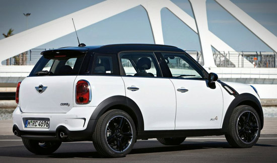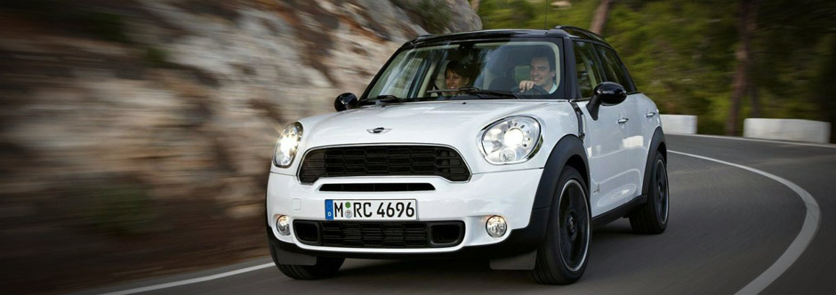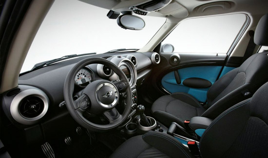 Zu sehen ist ein weißer MINI Cooper S Countryman All4 – so der volle Name – mit schwarzem Dach und schwarzen Felgen, der wie erwartet auch die eckigeren Frontleuchten trägt und sich damit klar von den sonstigen MINI-Modellen abhebt. Neben dem Bild der Frontpartie gibt es auch ein Foto mit einer Seiten- und Heckansicht sowie ein erstes Bild zum Interieur, das die Grundzüge des Innenraum-Designs aller R60-Ableger übernimmt und etwas robuster interpretiert.