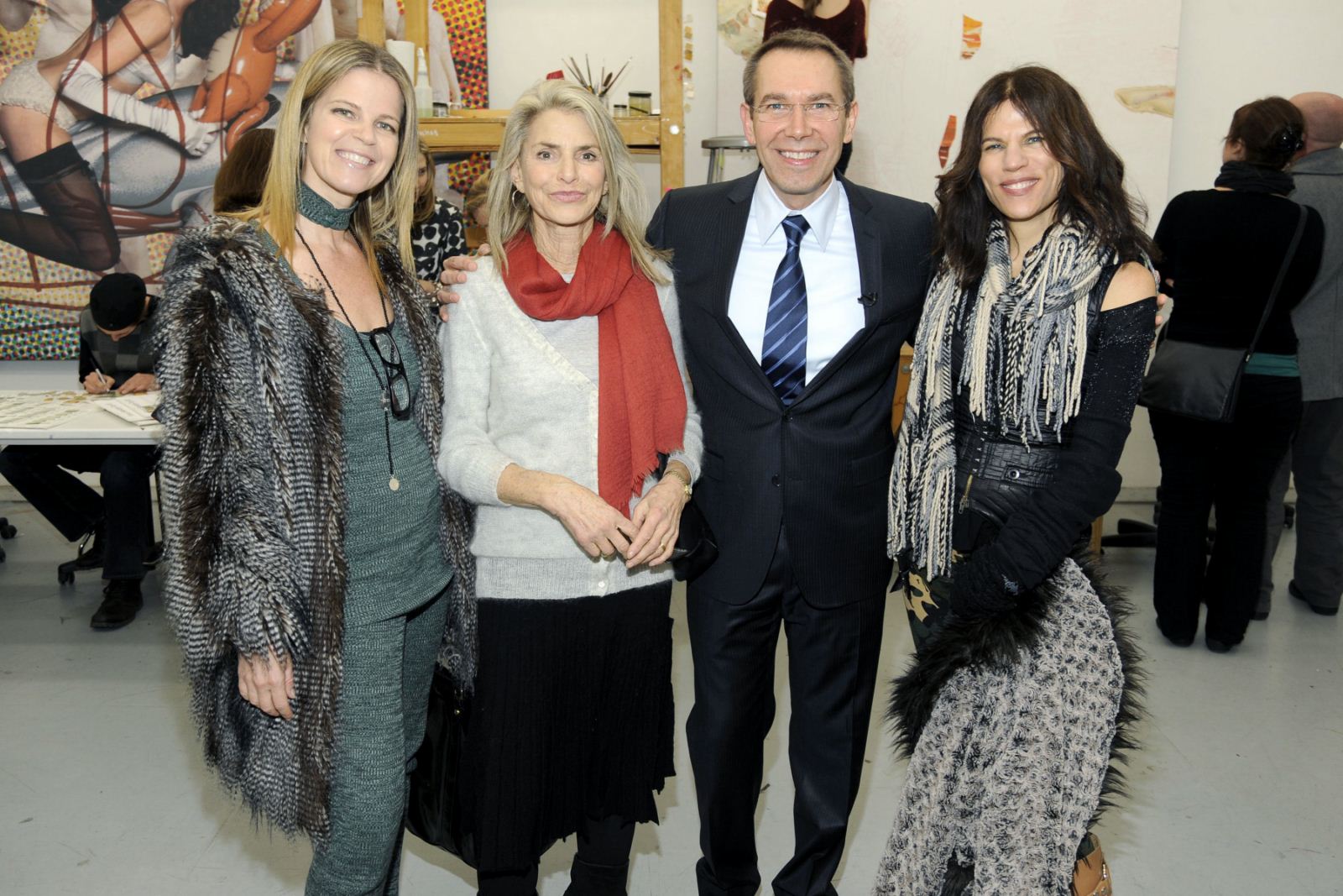Die Bilder zeigen Jeff Koons mit Yvonne Force Villareal, Dorothy Lichtenstein und Doreen Remen in seinem New Yorker Studio beziehungsweise mit Jim O’Donnel von BMW Nordamerika.