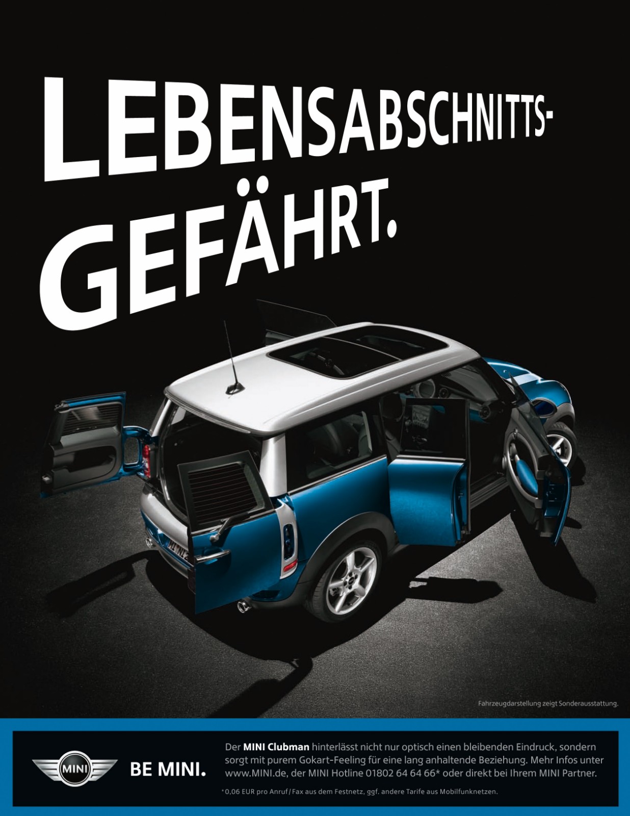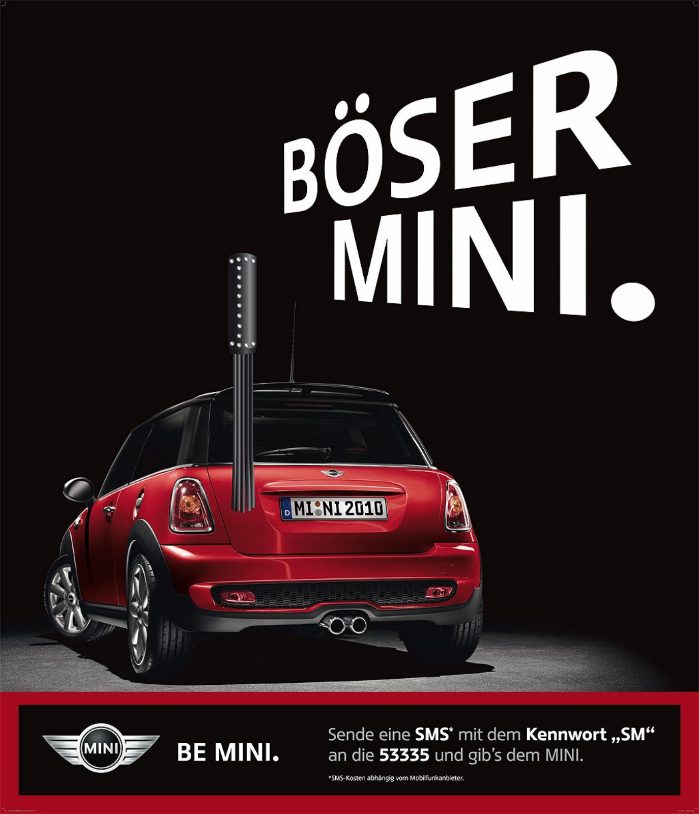 Passend zur neuen Kampagne gibt es auch ein Online-Special unter MINI.de, das die Suche nach dem passenden Lebensabschnittsgefährt erleichtern soll. Außerdem gibt es auf der Hamburger Reeperbahn eine neue Anzeige unter dem Motto “Böser MINI”, die zum Senden einer SMS mit dem Stichwort “SM” an die 53335 auffordert.