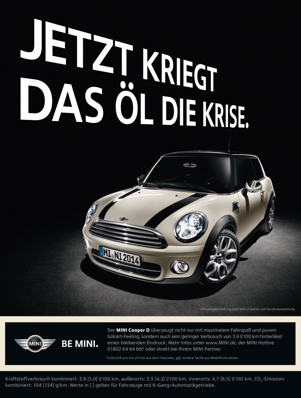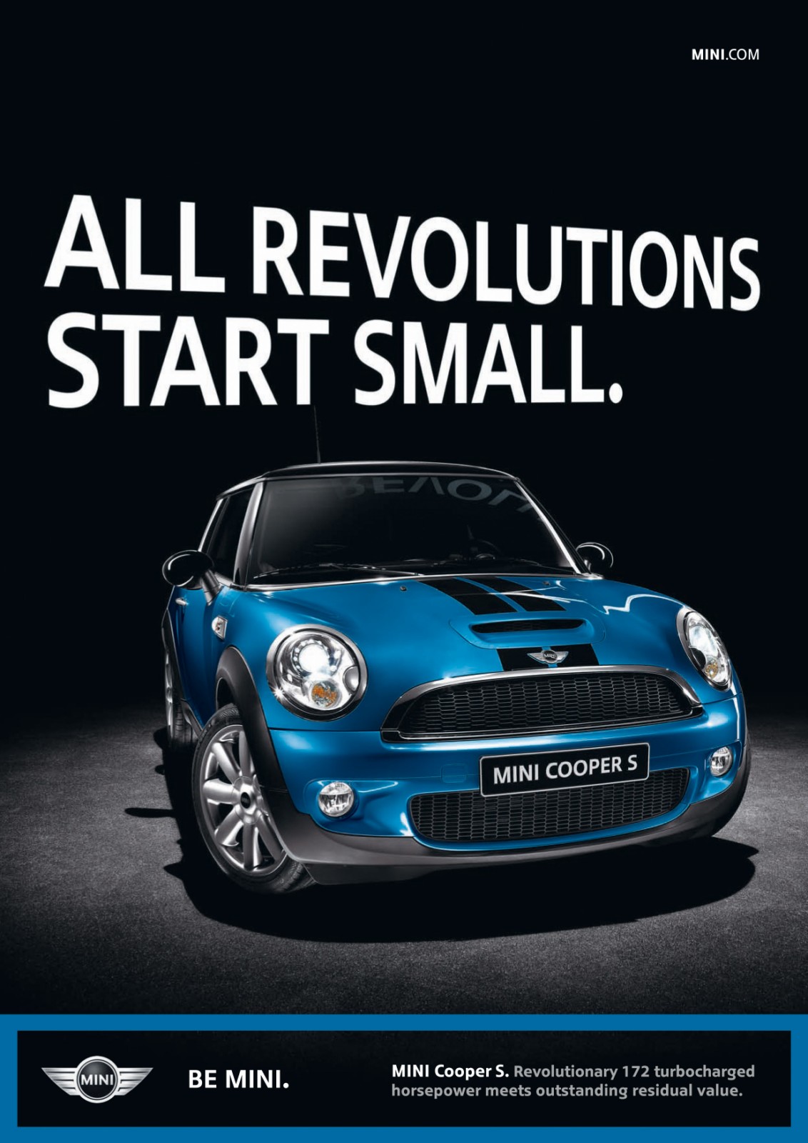 Zum Jahr 2010 hat sich MINI einen völlig neuen Markenclaim ausgedacht, der global eingesetzt werden soll und wie gewohnt kurz und bündig ist: BE MINI! Diese Aufforderung soll weltweit und produktübergreifend eingesetzt werden und zum Ausdruck bringen, dass MINI mehr ist als nur ein Fahrzeughersteller – MINI ist eine Marke, die ein extrovertiertes und spontanes Lebensgefühl zum Ausdruck bringen will.