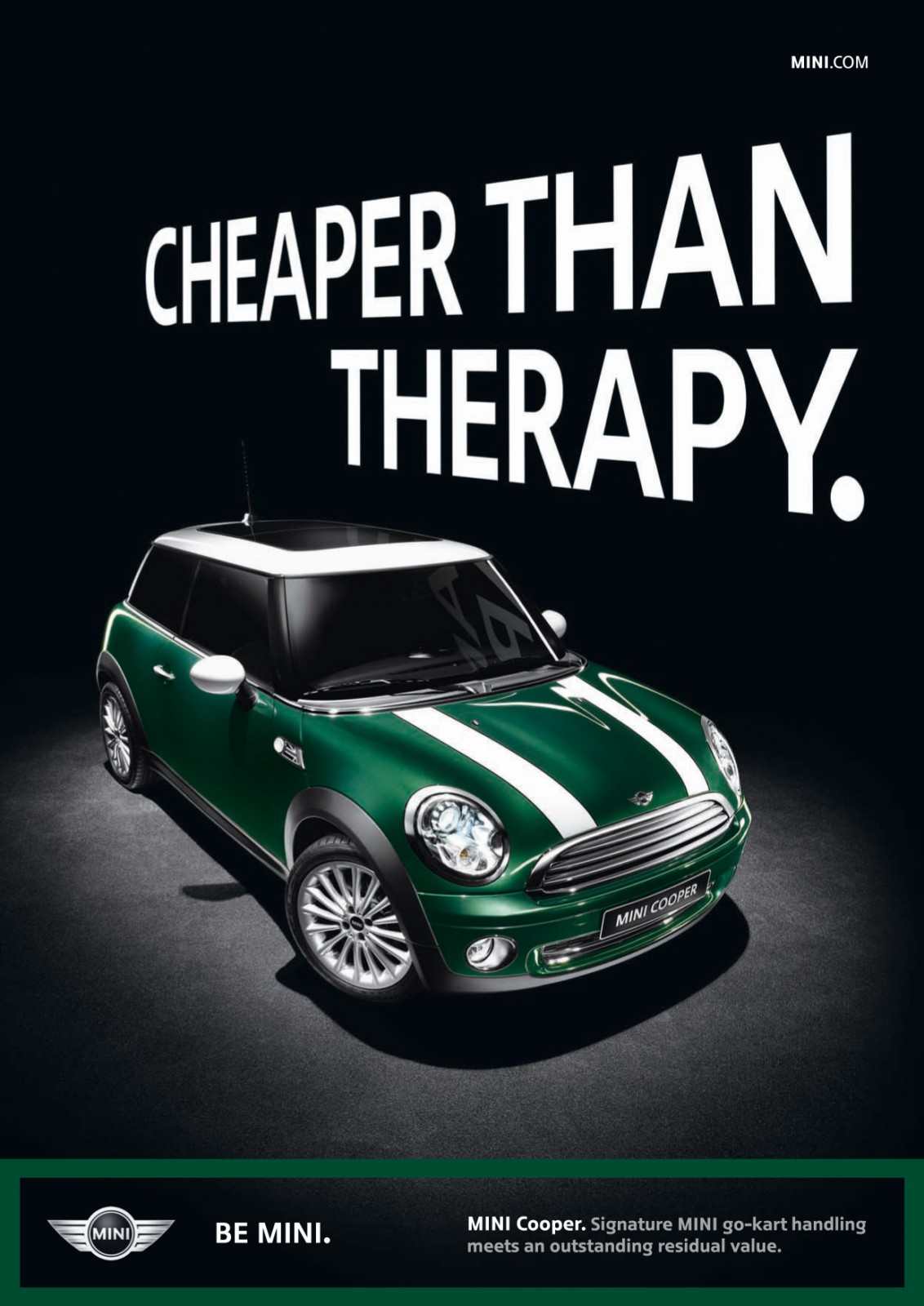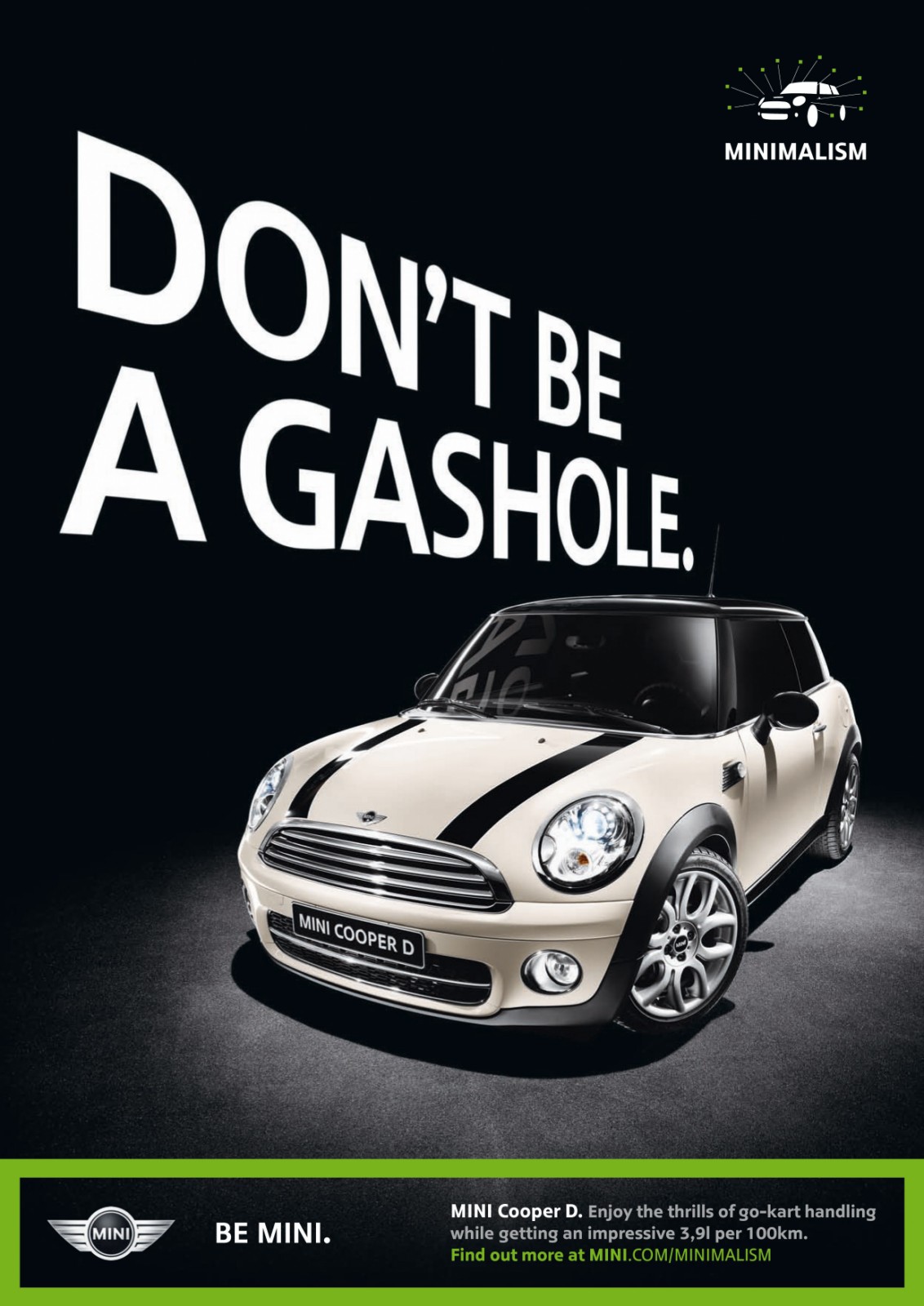 Der typische MINI-Fahrer ist demnach optimistisch, selbstbewusst, individuell, energiegeladen und unerschrocken – ob wirklich jeder MINI-Fahrer diese Anforderungsliste jederzeit erfüllt, darf freilich bezweifelt werden. Im Zentrum der Werbekampagne stehen das typische Go Kart-Feeling des wendigen Flitzers und der damit verbundene Fahrspaß, andererseits werden aber auch rationale Aspekte wie der Verbrauch, der geringe Wertverlust oder der relativ günstige Einstiegspreis thematisiert.
