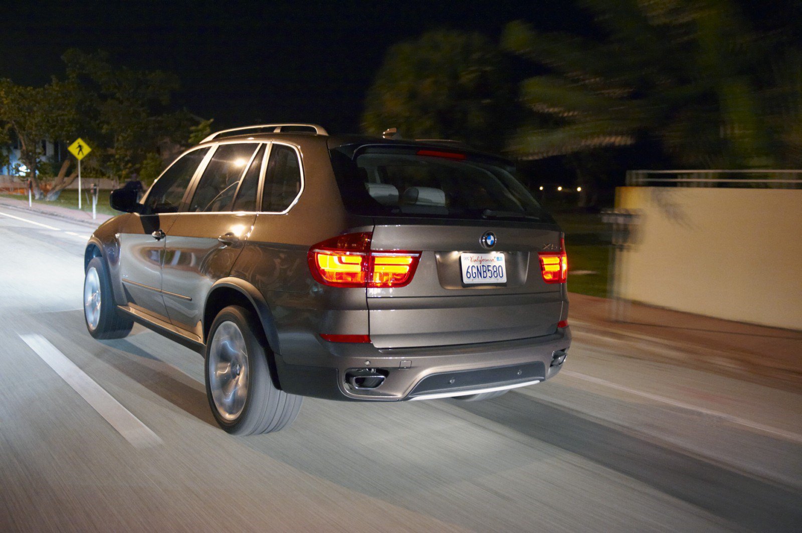 Die neuen Bilder zeigen uns auch die Nachtoptik des überarbeiteten X5 mit seinen roten LED-Lichtbalken in den Rückleuchten sowie den nun weißen LED-gespeisten Tagfahrlichtringen an der Front besser als die bisherigen Bilder. Neben Detail-Aufnahmen zum Exterieur gibt es auch mehr Bilder vom Innenraum, beispielsweise vom Rear Entertainment System für die Fond-Passagiere.