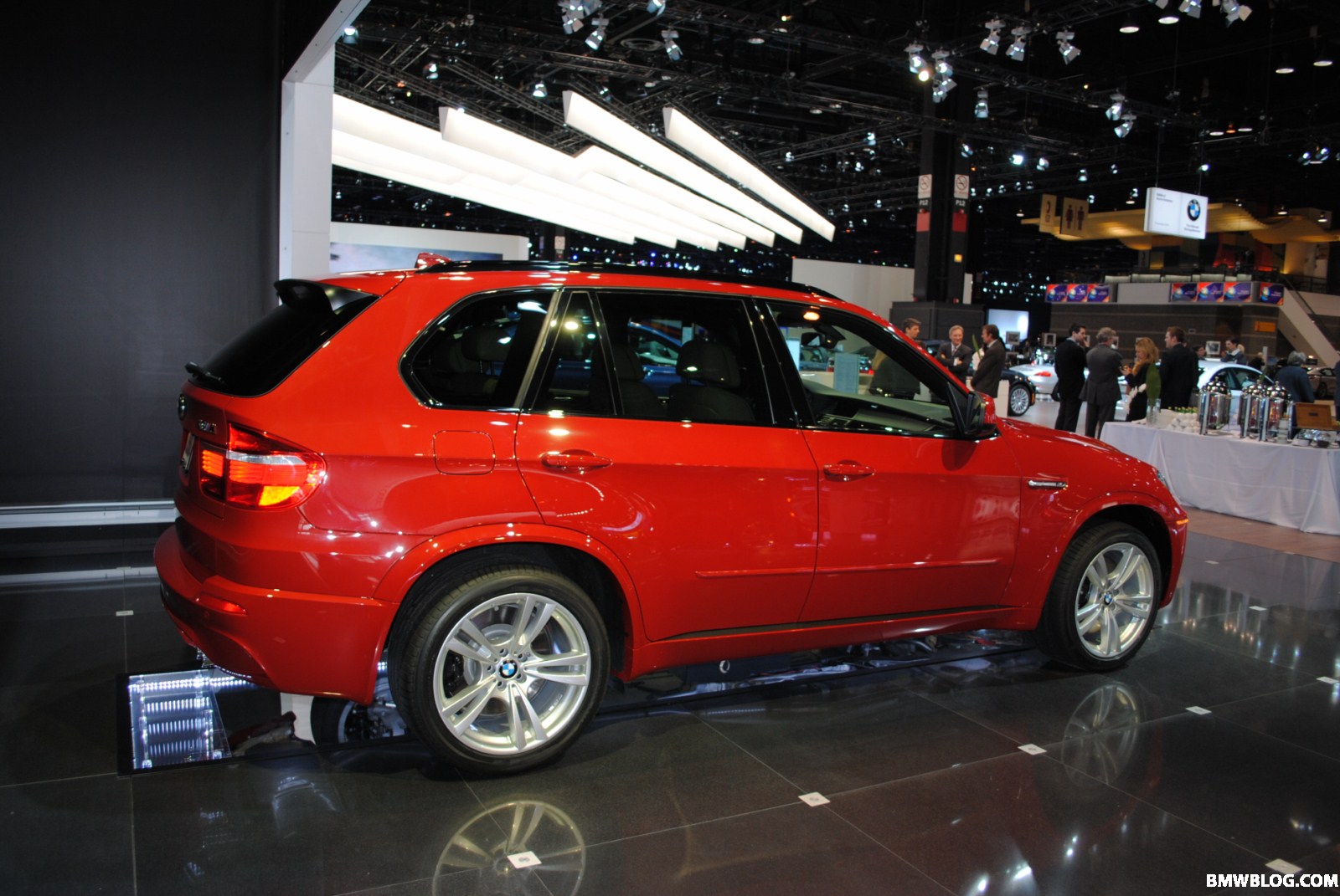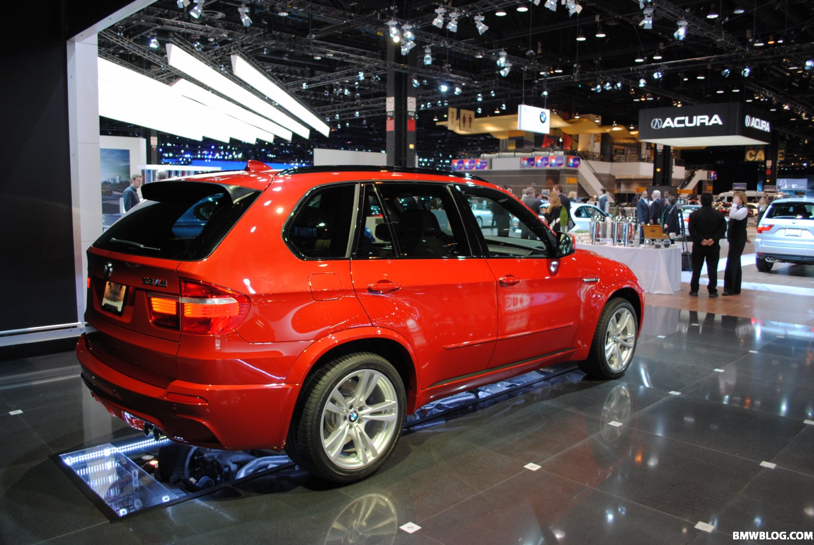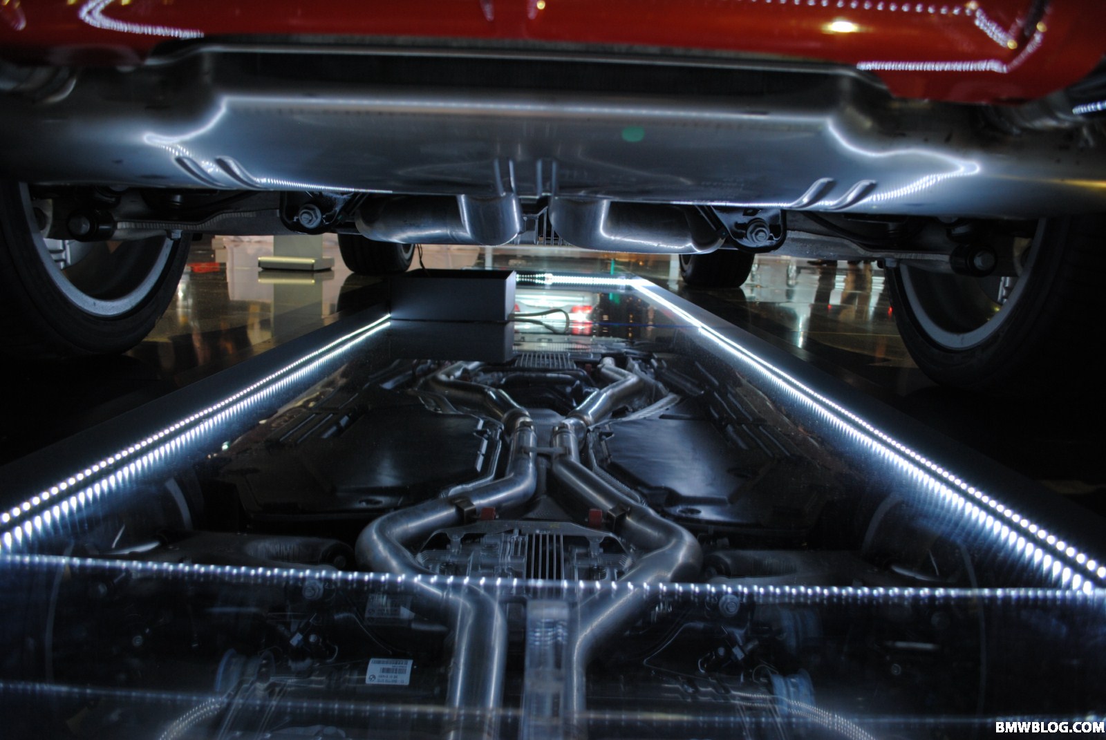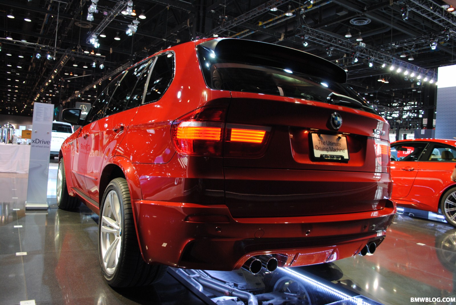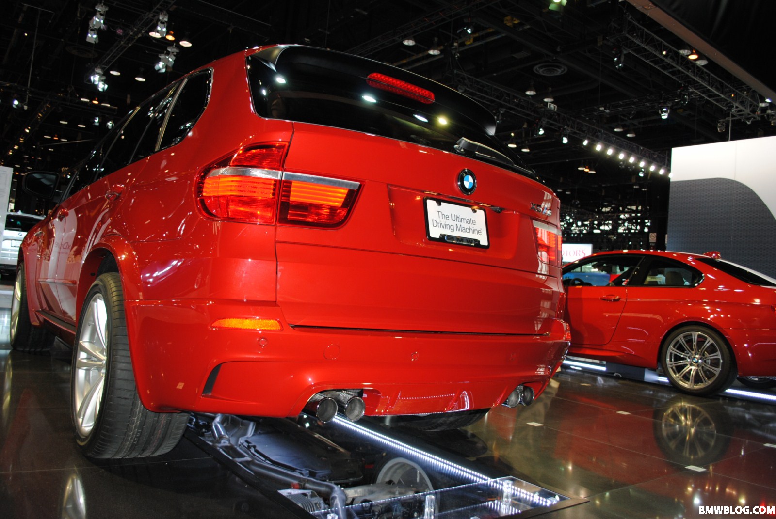 Auf der Chicago Auto Show 2010 steht auch ein in auffälligem Rot lackierter BMW X5 M (E70), den Horatiu von unserem Partnerblog BMWblog.com natürlich ebenfalls ausgiebig fotografiert hat. Wie schon auf der letzten US-Messe hat BMW auch hier wieder einen Spiegel unterhalb des Fahrzeugs angebracht, um den Besuchern einen Blick auf den Unterboden zu ermöglichen und die imposante, vierflutige Abgasanlage auf ganzer Länge betrachten zu können.