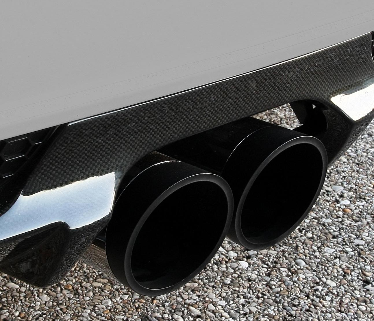 Auch das Aerodynamik-Paket trägt seinen Teil zur Haltbarkeit der Technik bei, denn die vergrößerten Kühlluftöffnungen in der aus Carbon gefertigten Frontschürze sorgen auch für eine bessere Kaltluftzufuhr zu den Kühlwasser- und Ölkühlern, wodurch die Gesamtkühlleistung um beachtliche 15 Prozent gesteigert werden konnte. Neben diesem Effekt sorgt die neue Frontschürze auch für eine Reduzierung des Auftriebs an der Vorderachse und sorgt so zusammen mit dem Sportfedernsatz und der damit einhergehenden Tieferlegung um 30 Millimeter für eine bessere Straßenlage bei hohen Geschwindigkeiten. Die Motorhaube aus Kevlar-Hybrid wird von großen Entlüftungsöffnungen dominiert, die die heiße Abluft der Turbolader in die Umwelt entlassen.