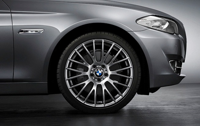 Nach den Bildern zum allgemeinen Zubehörprogramm für die neue BMW 5er Limousine folgen nun die Bilder zum Felgenprogramm, das sich ebenfalls über den Zubehörkatalog bestellen lässt. In unserer Bildergalerie findet ihr also alle 16 angebotenen Felgen, auch wenn die Bilder derselben Felge in unterschiedlichen Größen identisch sind. Anhand der Bildernamen sollte sich aber herausfinden lassen, welche Felgen angeboten werden und wie diese benannt sind.