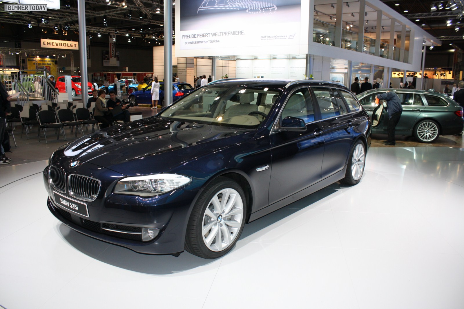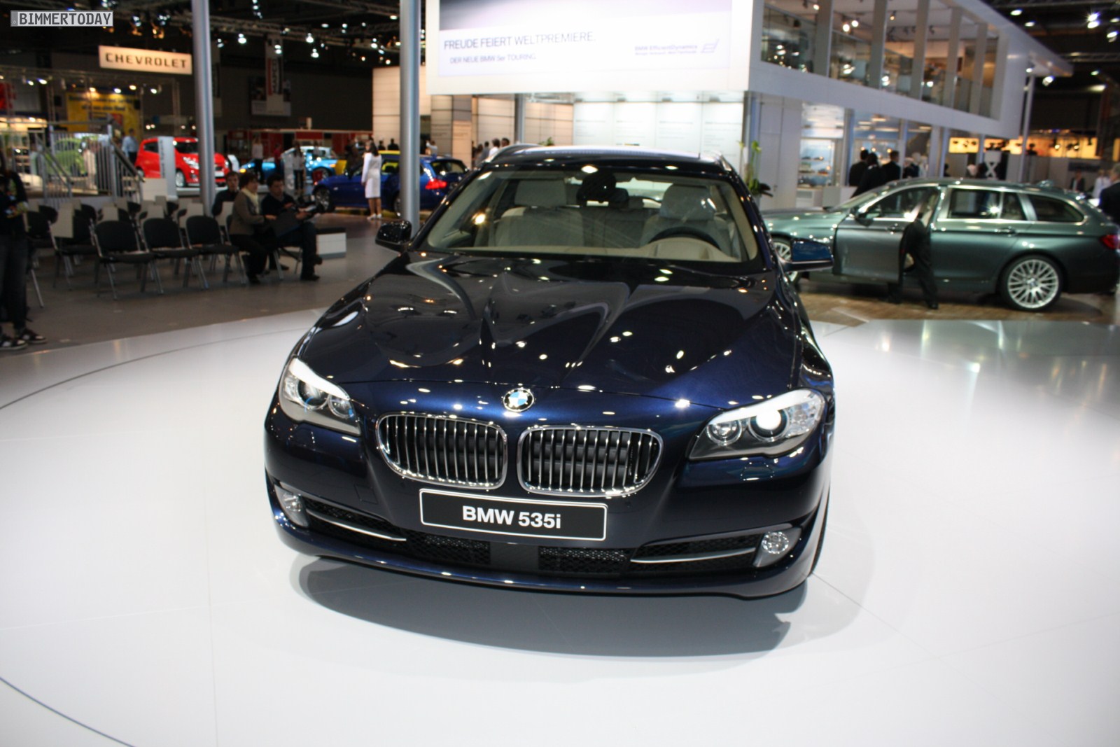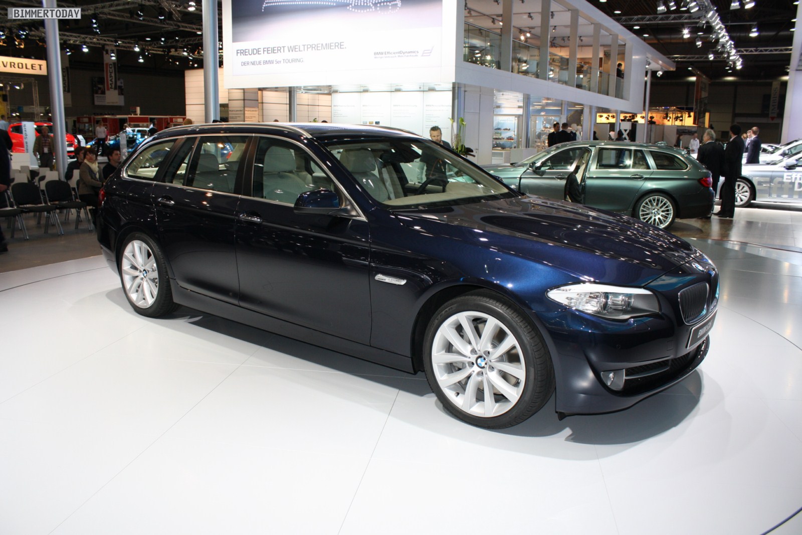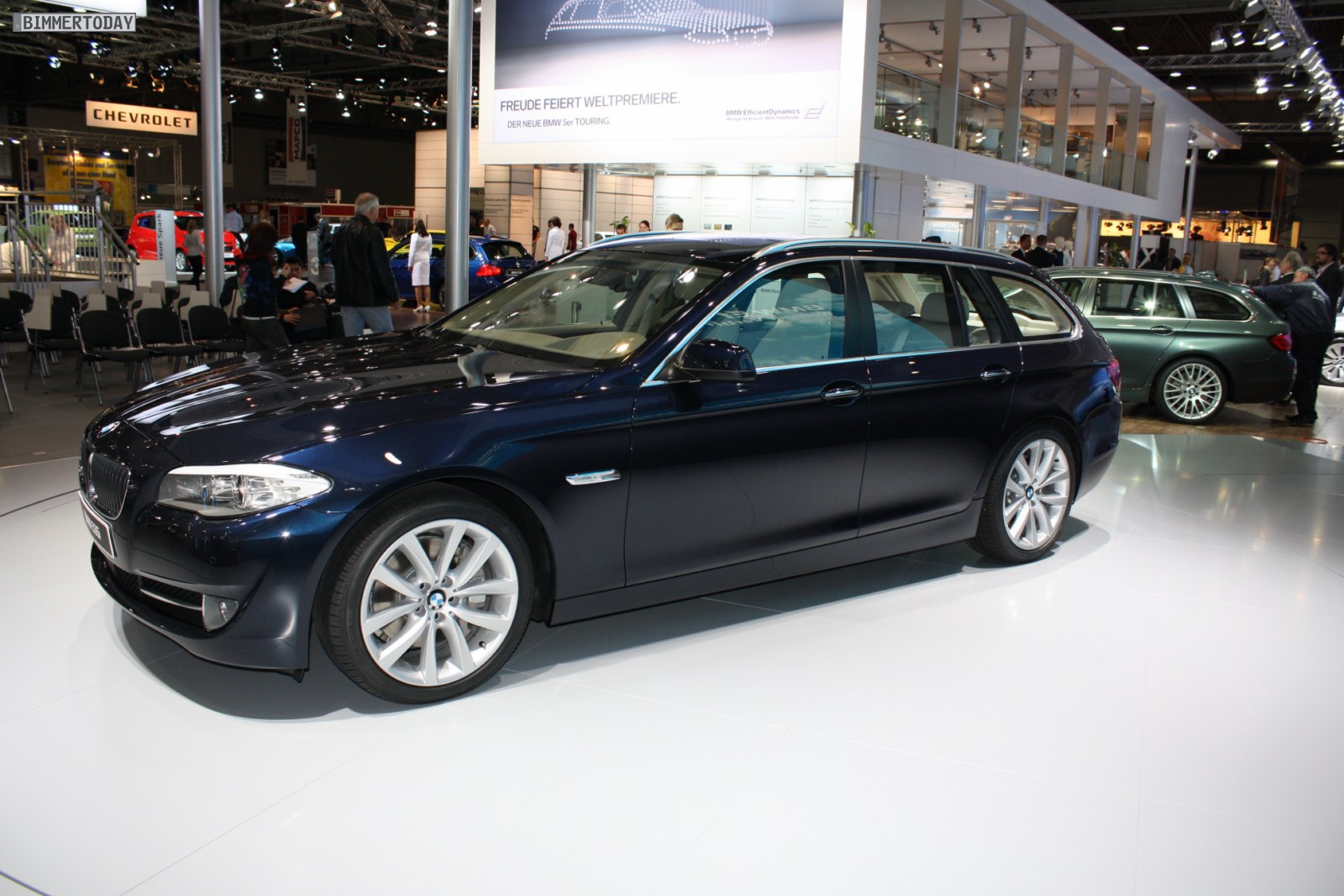 Die Weltpremiere des BMW 5er Touring mit der internen Bezeichnung F11 ist ohne Zweifel eines der Highlights der diesjährigen AMI in Leipzig und auch wir haben uns die Publikumspremiere natürlich nicht entgehen lassen. Beginnen wollen wir mit einem BMW 535i Touring in Imperialblau Metallic und mit hellem Interieur, der von einem zweiten F11 in Tasmangrün Metallic ergänzt wurde. Letzterem werden wir allerdings eine eigene Galerie widmen, weshalb er hier nur am Rande auftaucht.