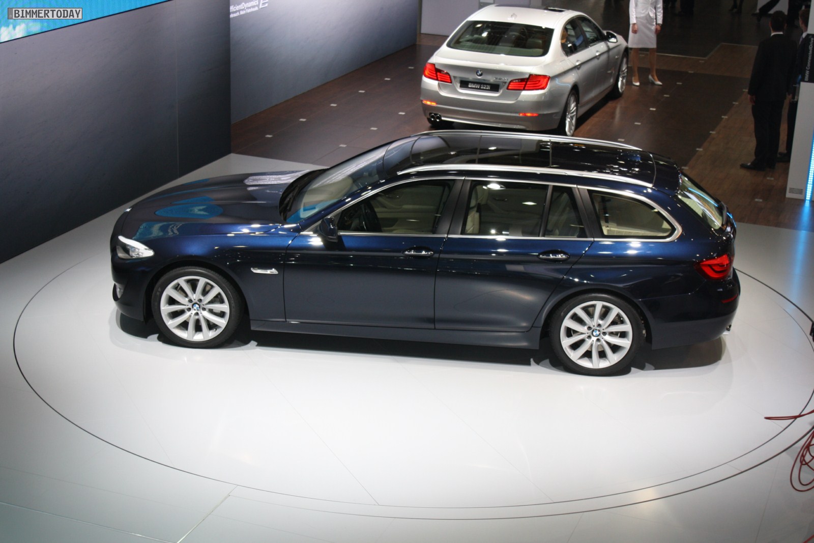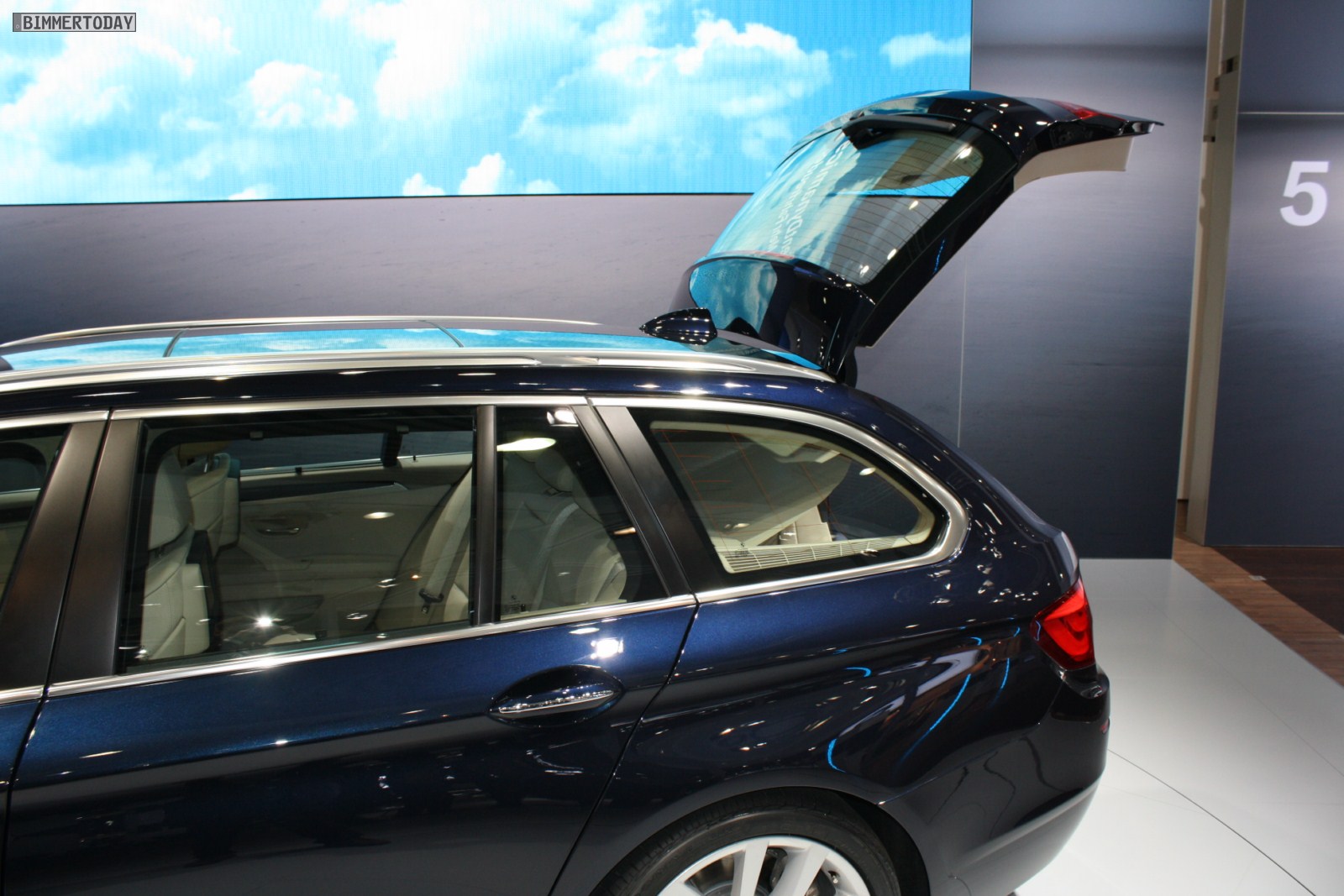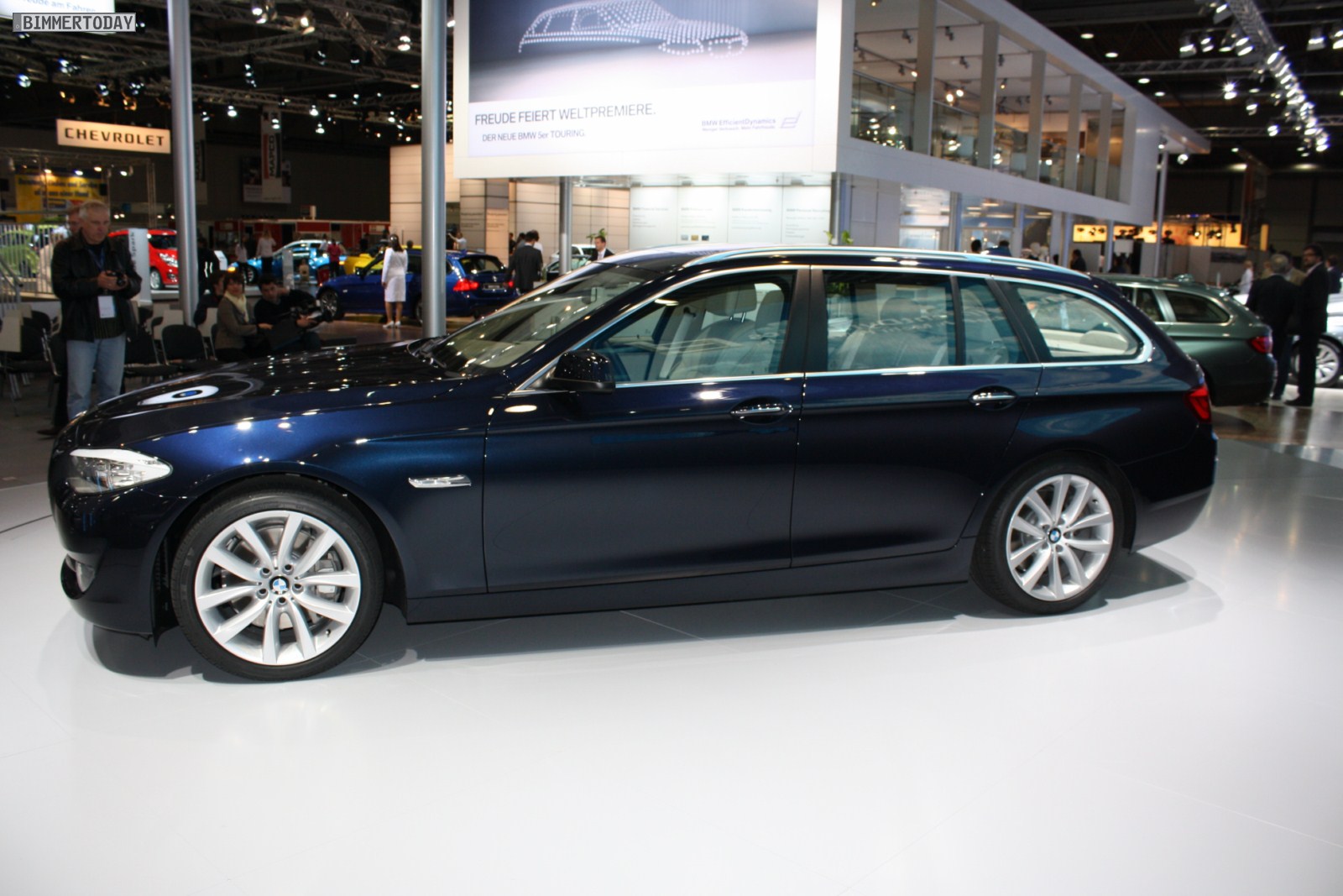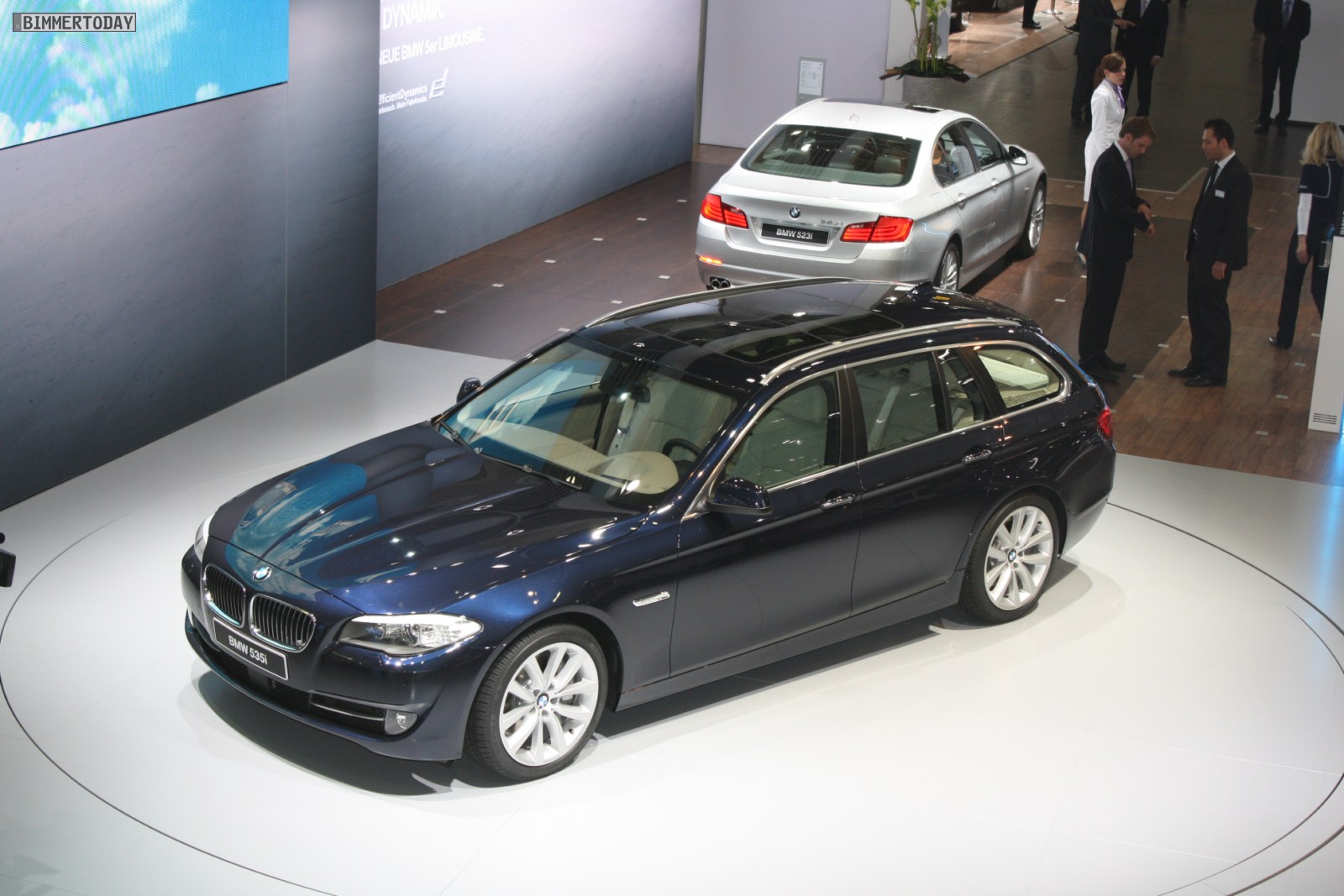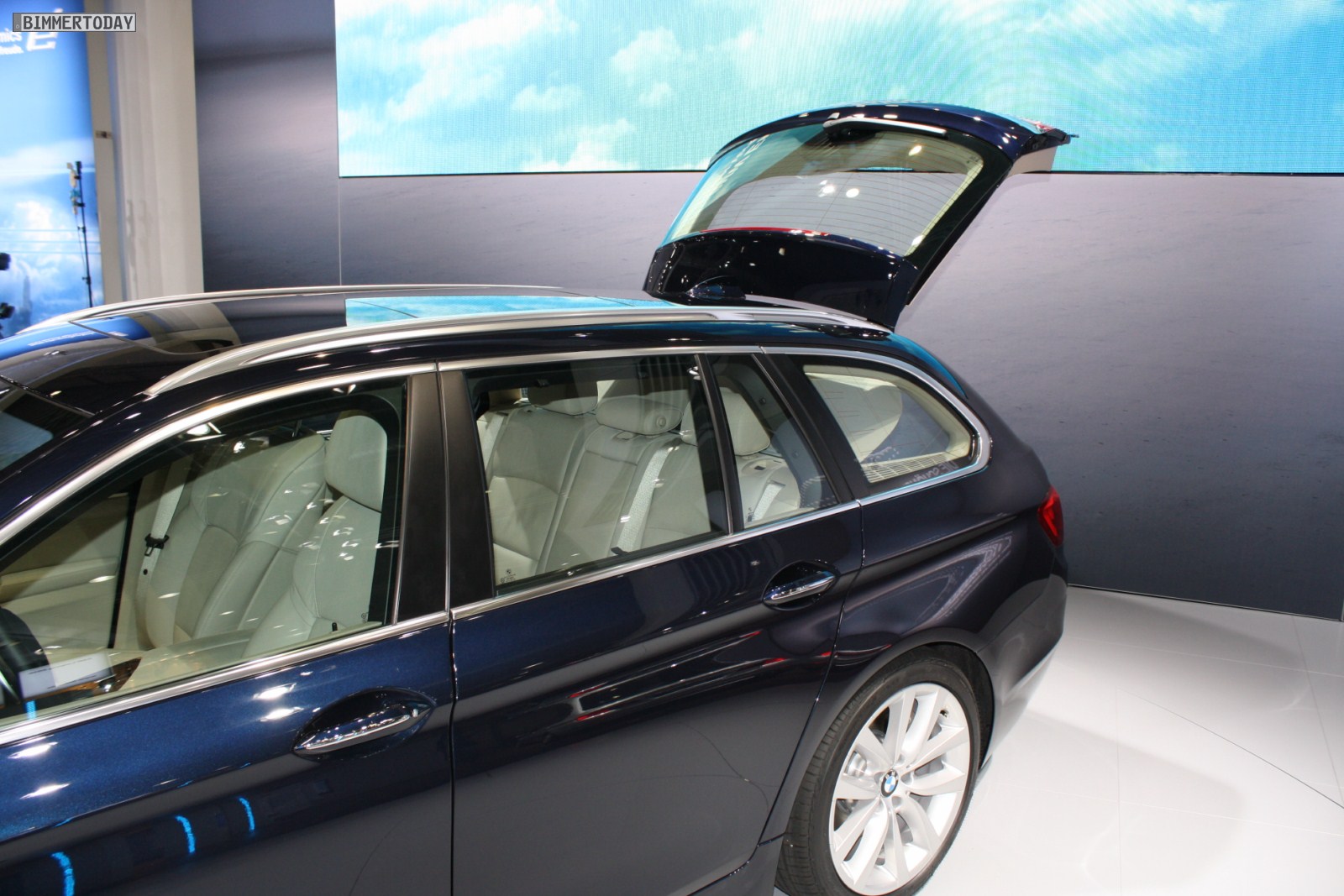 Die Weltpremiere des BMW 5er Touring mit der internen Bezeichnung F11 ist ohne Zweifel eines der Highlights der diesjährigen AMI in Leipzig und auch wir haben uns die Publikumspremiere natürlich nicht entgehen lassen. Beginnen wollen wir mit einem BMW 535i Touring in Imperialblau Metallic und mit hellem Interieur, der von einem zweiten F11 in Tasmangrün Metallic ergänzt wurde. Letzterem werden wir allerdings eine eigene Galerie widmen, weshalb er hier nur am Rande auftaucht.