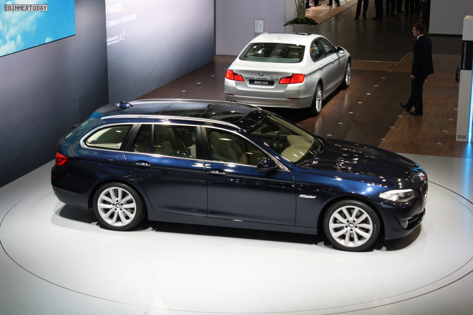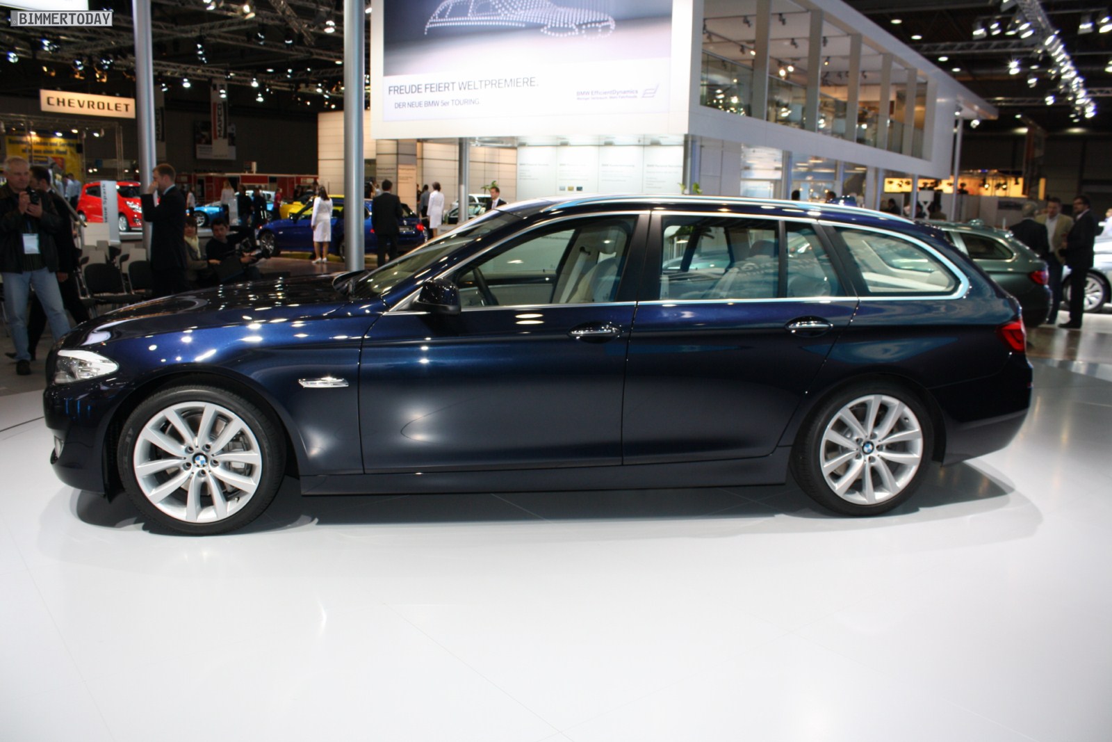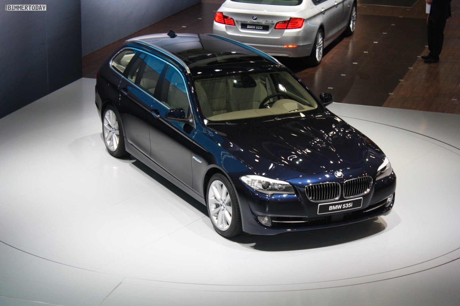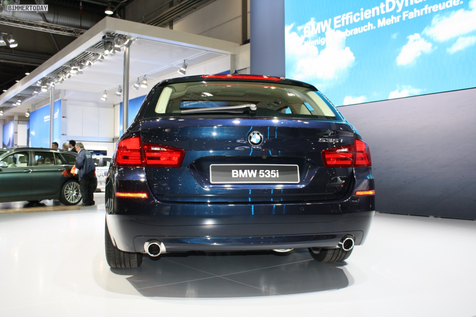 Die Weltpremiere des BMW 5er Touring mit der internen Bezeichnung F11 ist ohne Zweifel eines der Highlights der diesjährigen AMI in Leipzig und auch wir haben uns die Publikumspremiere natürlich nicht entgehen lassen. Beginnen wollen wir mit einem BMW 535i Touring in Imperialblau Metallic und mit hellem Interieur, der von einem zweiten F11 in Tasmangrün Metallic ergänzt wurde. Letzterem werden wir allerdings eine eigene Galerie widmen, weshalb er hier nur am Rande auftaucht.