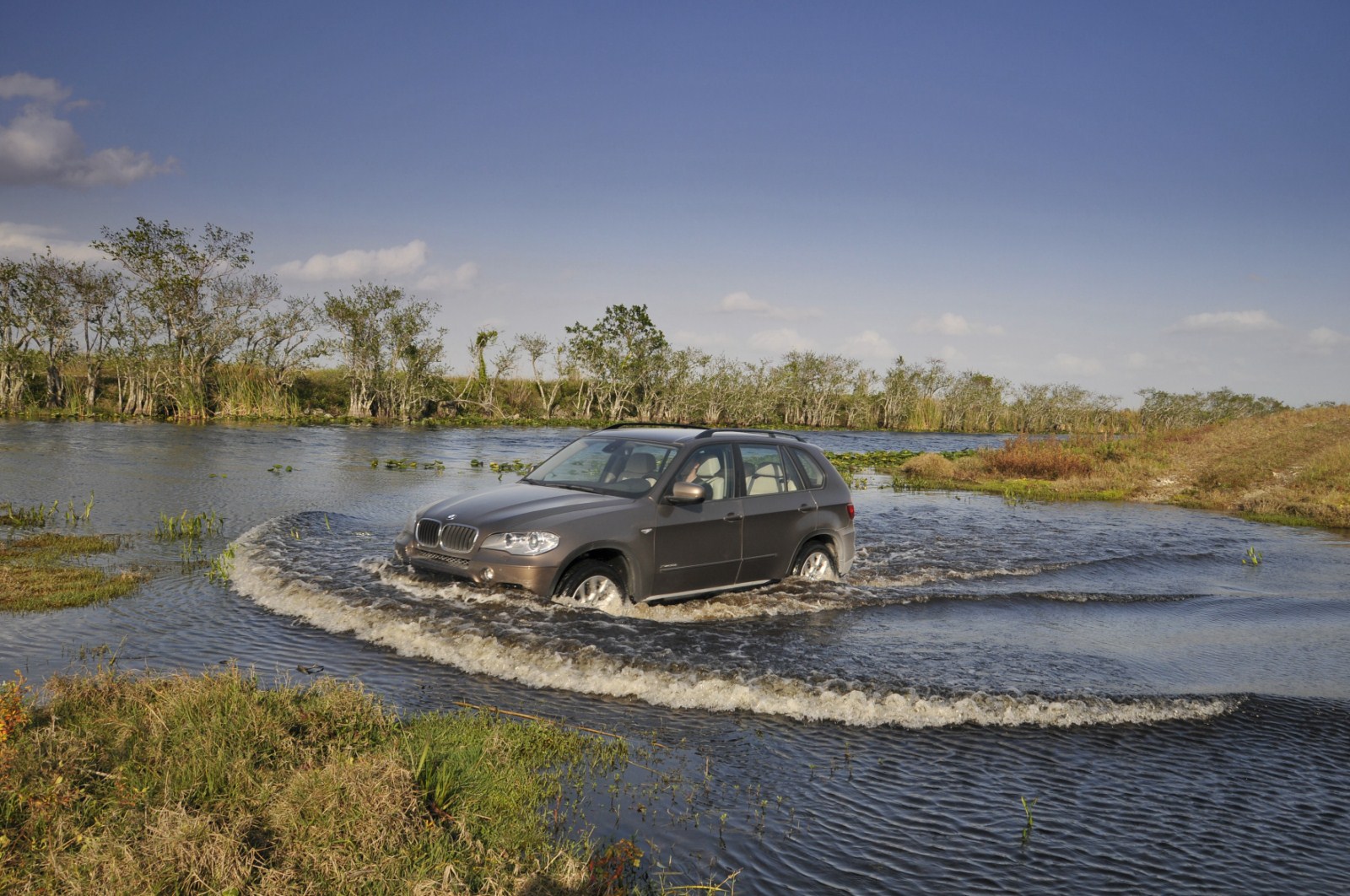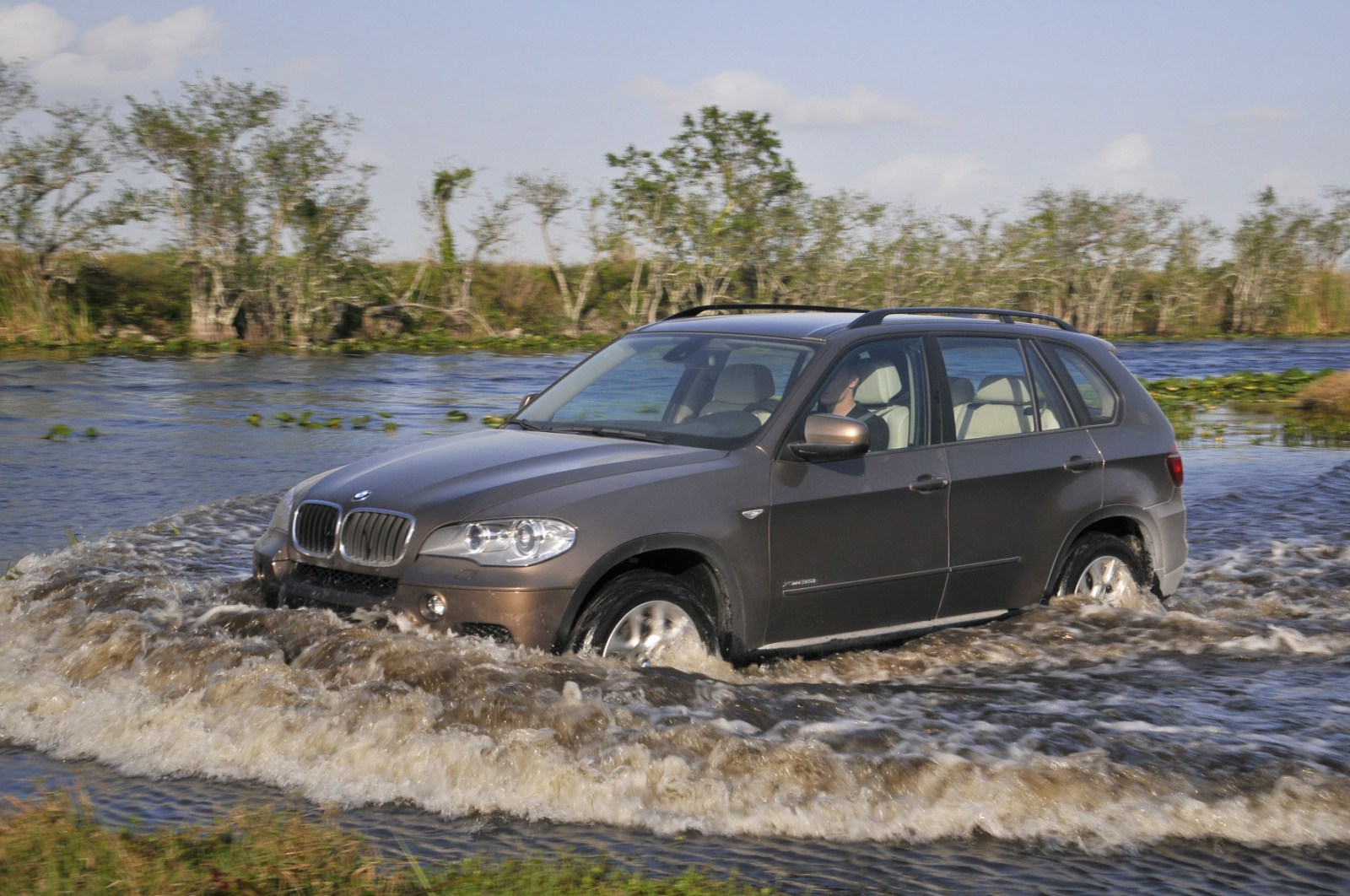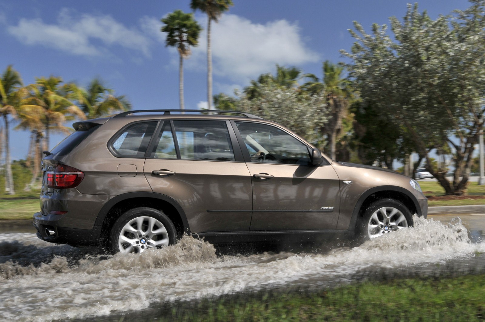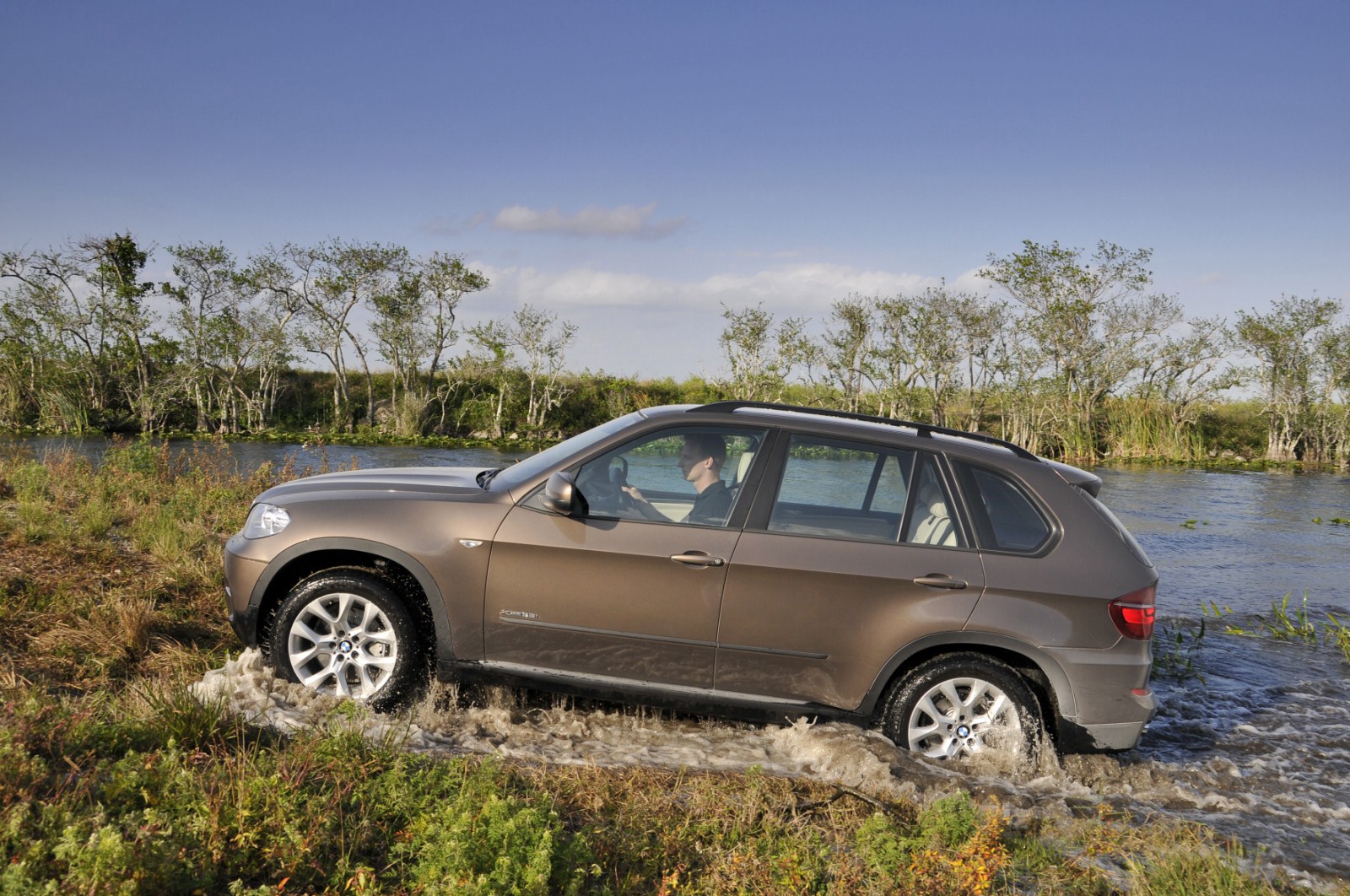 Im Anschluss an den Media-Launch des BMW X5 E70 LCI in Miami hat auch BMW noch eine ganze Reihe von Bildern veröffentlicht, die uns das Fahrzeug im Einsatz zeigen. Zu sehen ist neben einem 306 PS starken BMW X5 xDrive40d auch ein genausostarker BMW X5 xDrive35i. Beide Modelle kamen in Florida zum Einsatz und durften sich unter anderem beim Durchfahren etwas tieferer Gewässer beweisen, der Fokus lag aber natürlich beim Fahren auf Asphalt, worin nach wie vor die Paradedisziplin des X5 zu sehen ist. Seit dem Facelift verfügt der BMW X5 serienmäßig über ein Achtgang-Automatikgetriebe, das zumindest einen Anteil an den noch weiter gesteigerten Fahrleistungen sowie am weiter reduzierten Verbrauch hat. Außerdem verfügen die Facelift-Modelle über ein noch umfangreicheres Angebot an Fahrerassistenzsystemen, die nun auch Systeme wie Surround View, die Verkehrszeichenerkennung oder die Einparkhilfe umfassen.