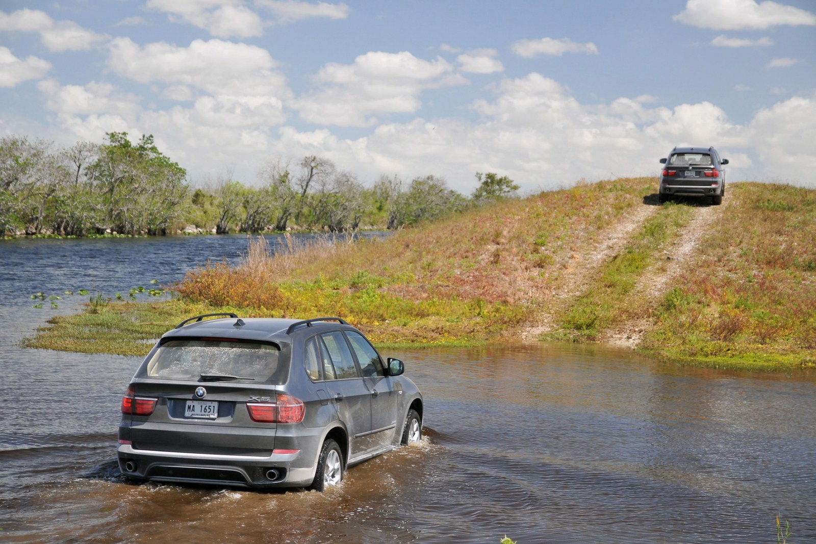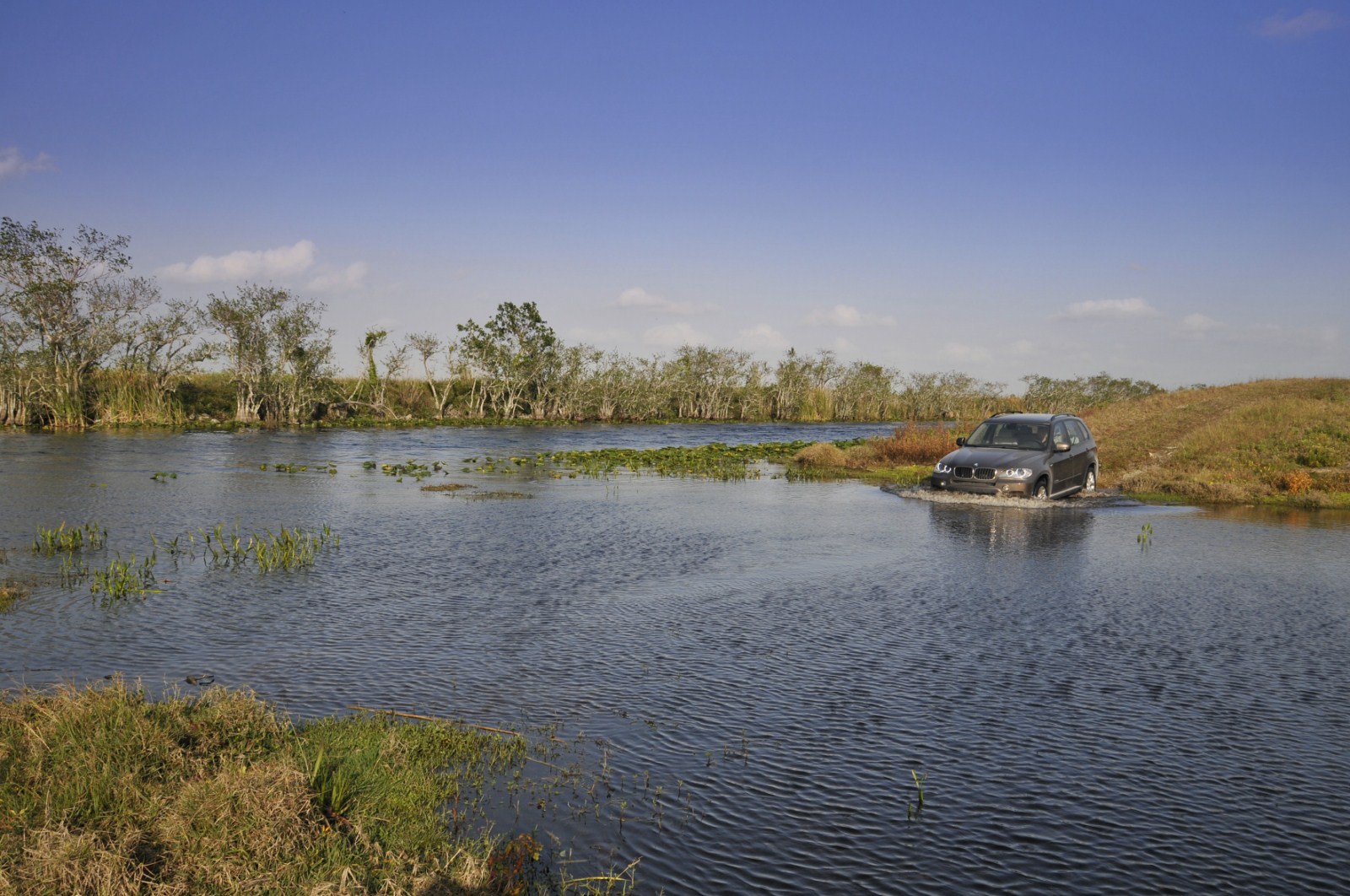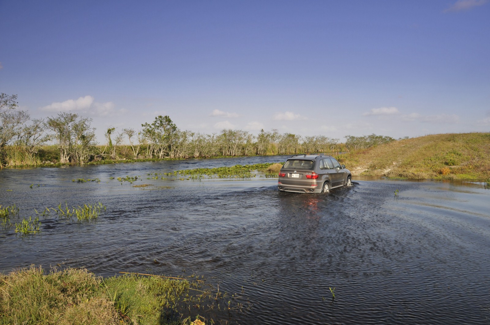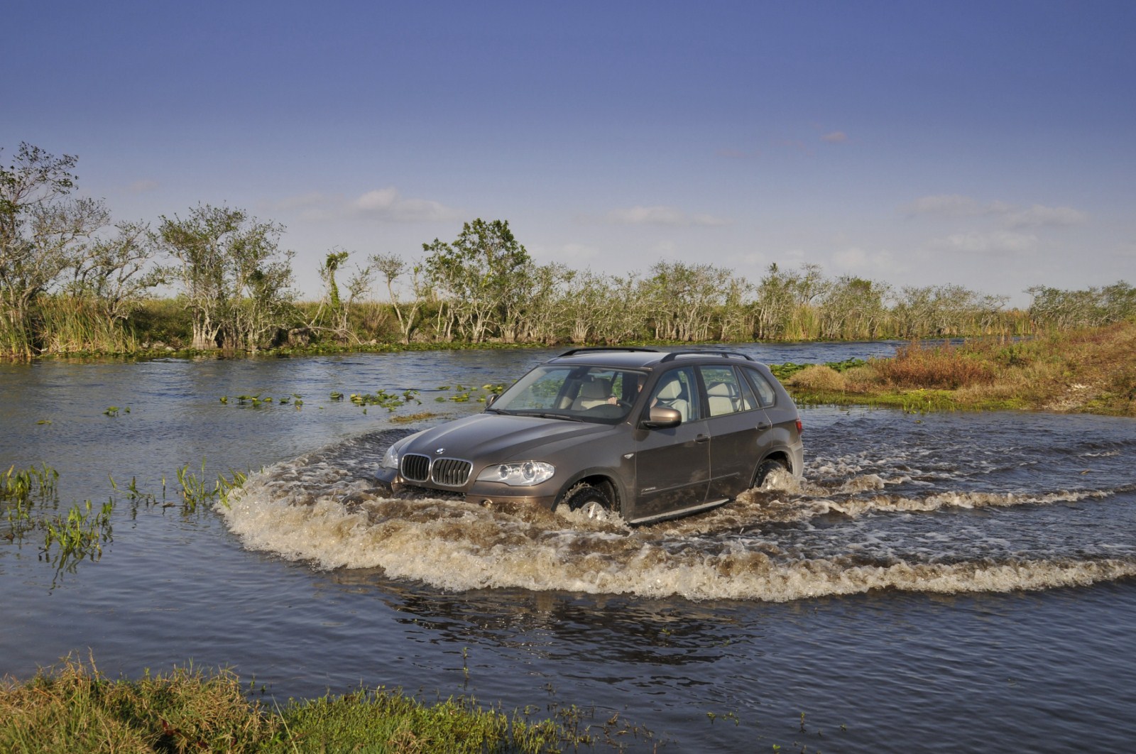 Im Anschluss an den Media-Launch des BMW X5 E70 LCI in Miami hat auch BMW noch eine ganze Reihe von Bildern veröffentlicht, die uns das Fahrzeug im Einsatz zeigen. Zu sehen ist neben einem 306 PS starken BMW X5 xDrive40d auch ein genausostarker BMW X5 xDrive35i. Beide Modelle kamen in Florida zum Einsatz und durften sich unter anderem beim Durchfahren etwas tieferer Gewässer beweisen, der Fokus lag aber natürlich beim Fahren auf Asphalt, worin nach wie vor die Paradedisziplin des X5 zu sehen ist. Seit dem Facelift verfügt der BMW X5 serienmäßig über ein Achtgang-Automatikgetriebe, das zumindest einen Anteil an den noch weiter gesteigerten Fahrleistungen sowie am weiter reduzierten Verbrauch hat. Außerdem verfügen die Facelift-Modelle über ein noch umfangreicheres Angebot an Fahrerassistenzsystemen, die nun auch Systeme wie Surround View, die Verkehrszeichenerkennung oder die Einparkhilfe umfassen.