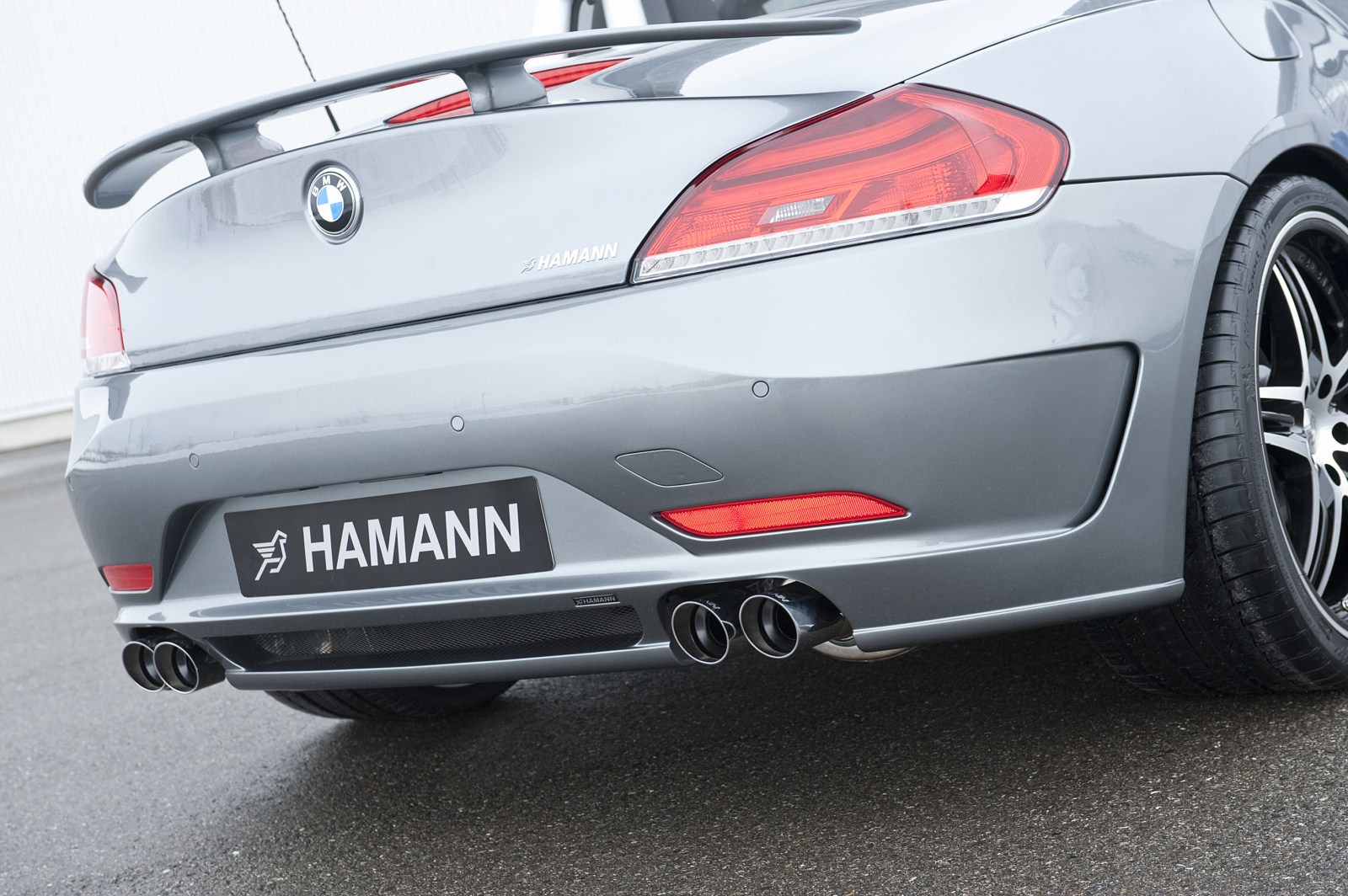 Neben den üblichen Aerodynamik- und Designkomponenten – Frontschürze, Heckschürze, Seitenschweller, Heckspoiler – bietet Hamann auch ein umfangreiches Felgenprogramm sowie eine Leistungssteigerung für das bereits ab Werk 306 PS starke Modell Z4 sDrive35i an. Integriert in die Heckschürze gibt es außerdem eine Sportauspuffanlage mit vier Endrohren, die die Heckansicht des Z4 noch kräftiger erscheinen lässt.