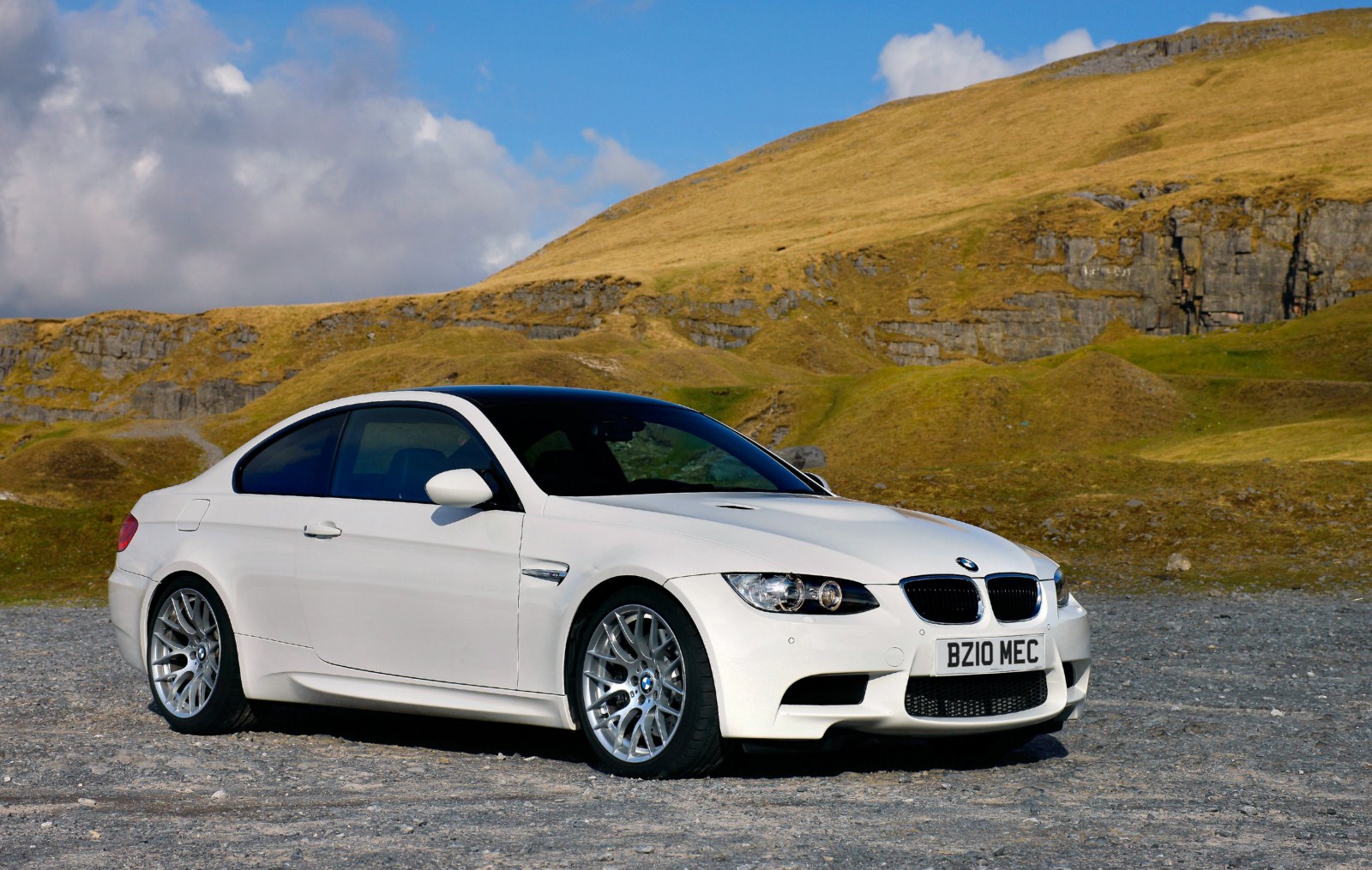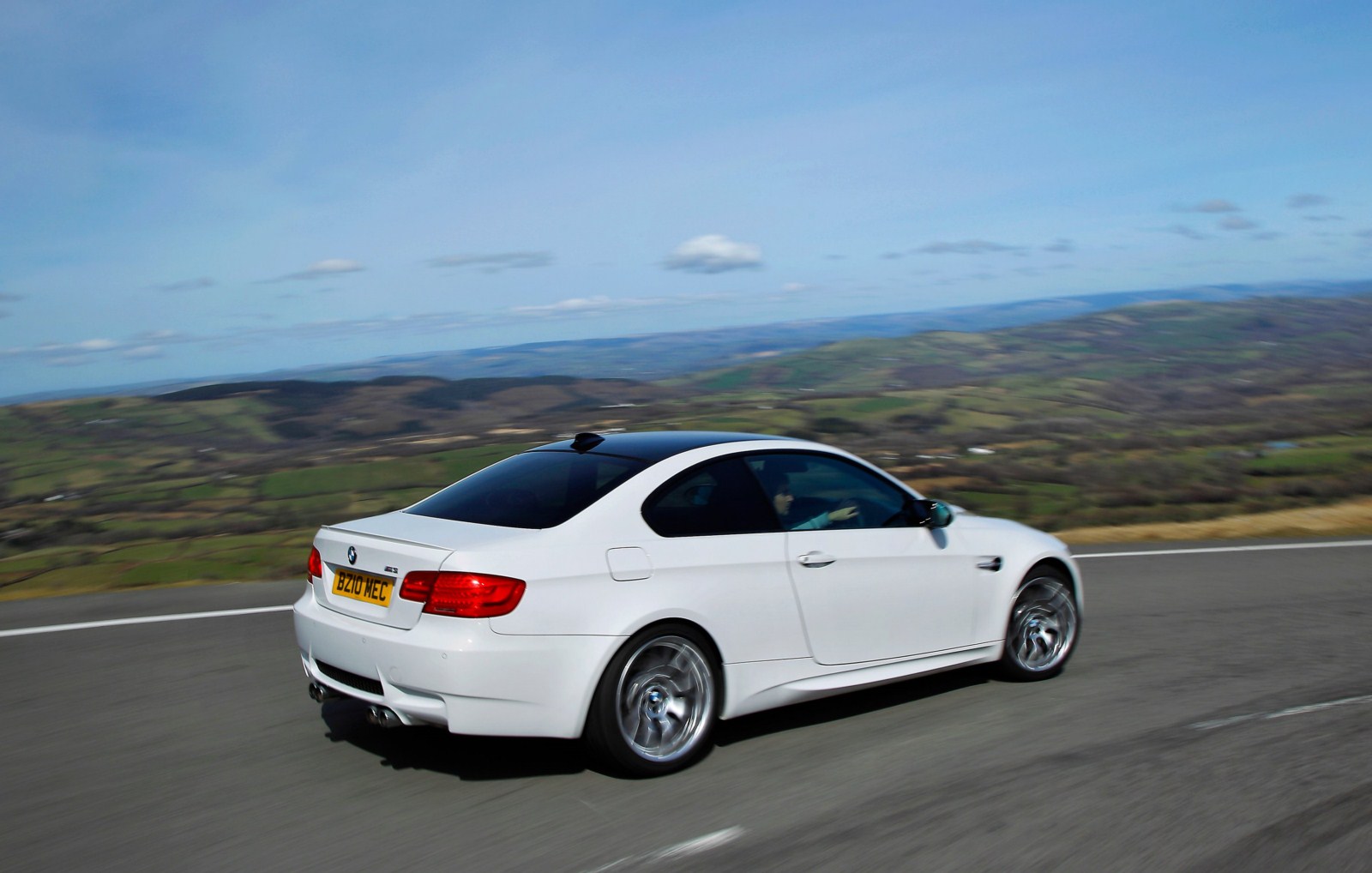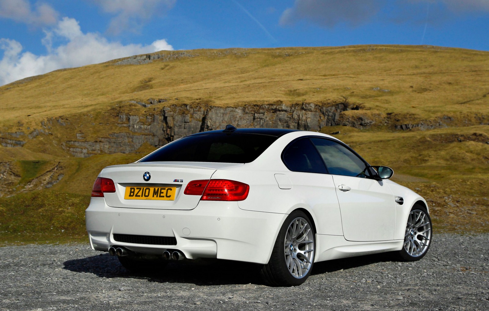 Und weiter gehts mit Bildern aus England, nun sehen wir das BMW M3 Coupé E92 LCI mit Competition Paket in Alpinweiß. Wieder handelt es sich um einen Rechtslenker mit britischen Kennzeichen, aber interessanter sind natürlich die speziellen Bauteile des Competition Pakets. Zunächst fallen hier die Leichtmetallräder im Design Y-Speiche 359 M im 19 Zoll-Format ins Auge, die es nur in Verbindung mit dem Paket gibt. Auf den Felgen sind vorn ab Werk Reifen im Format 245/35 R19 montiert, an der Hinterachse kommen 265er Reifen zum Einsatz.