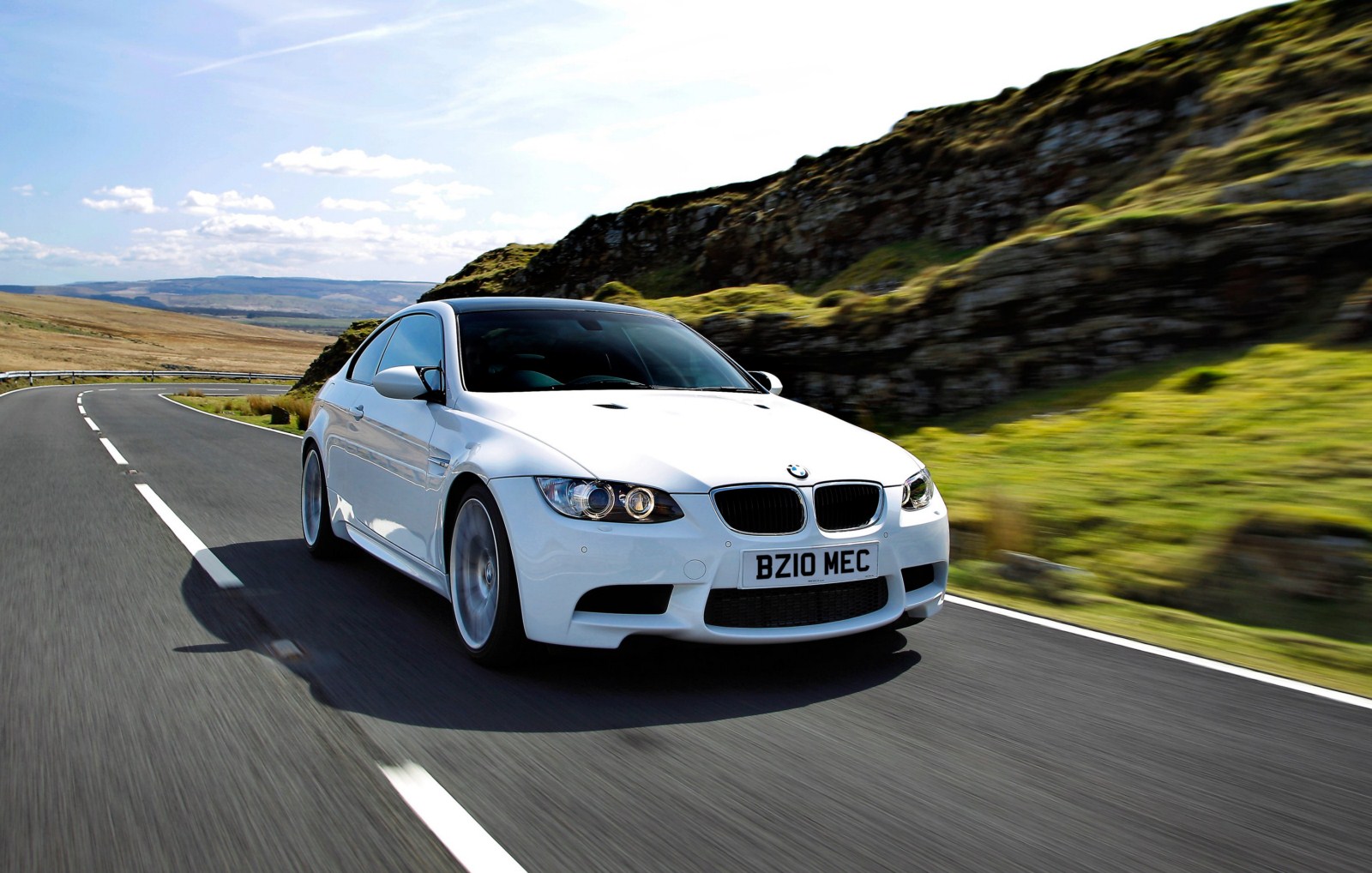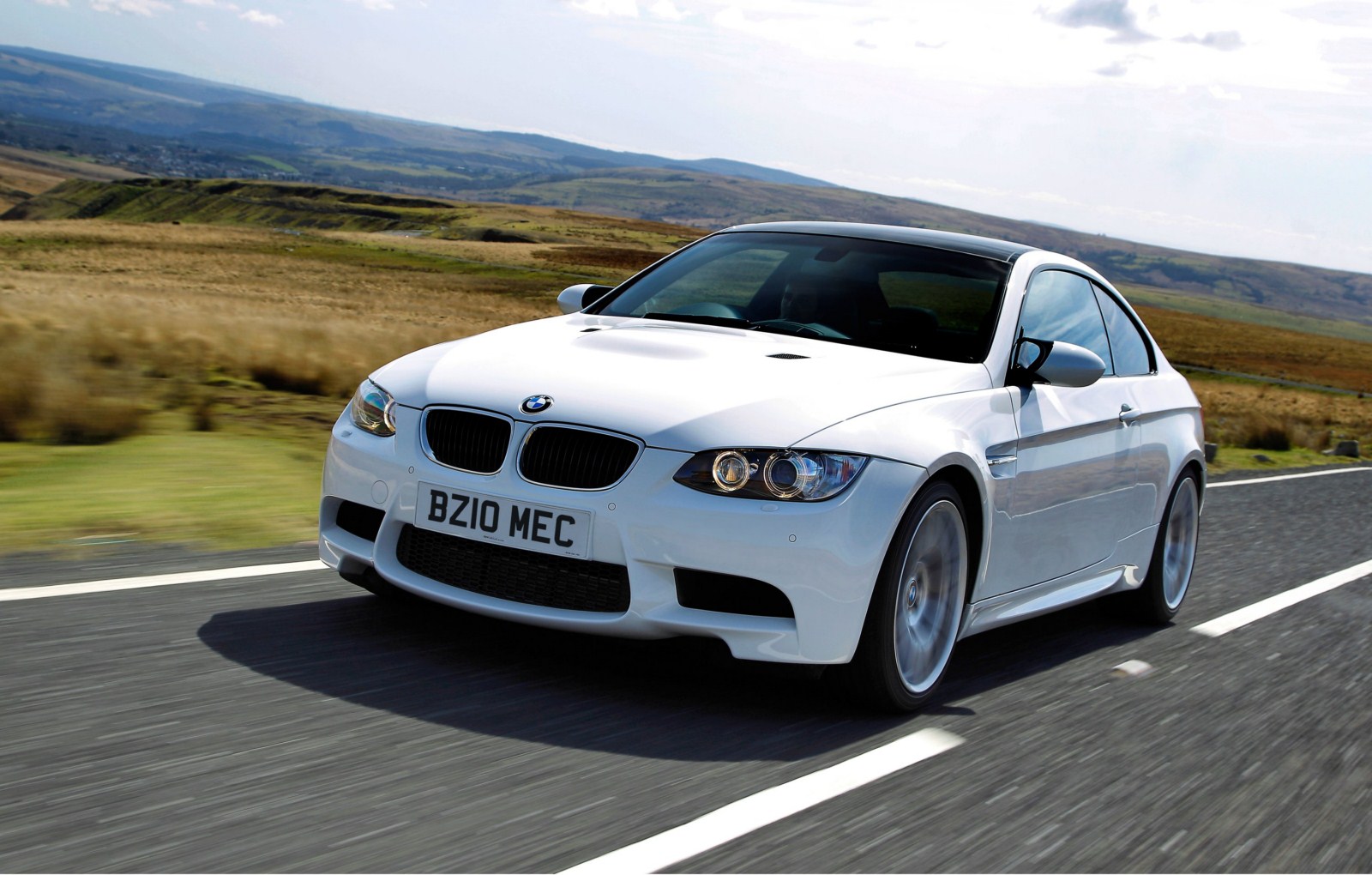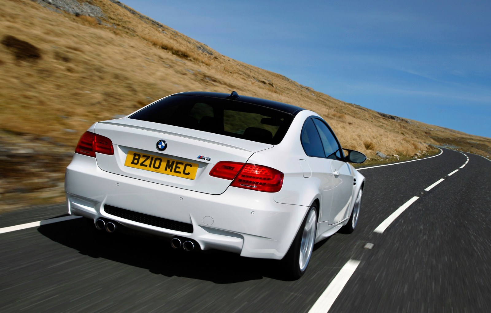 Und weiter gehts mit Bildern aus England, nun sehen wir das BMW M3 Coupé E92 LCI mit Competition Paket in Alpinweiß. Wieder handelt es sich um einen Rechtslenker mit britischen Kennzeichen, aber interessanter sind natürlich die speziellen Bauteile des Competition Pakets. Zunächst fallen hier die Leichtmetallräder im Design Y-Speiche 359 M im 19 Zoll-Format ins Auge, die es nur in Verbindung mit dem Paket gibt. Auf den Felgen sind vorn ab Werk Reifen im Format 245/35 R19 montiert, an der Hinterachse kommen 265er Reifen zum Einsatz.