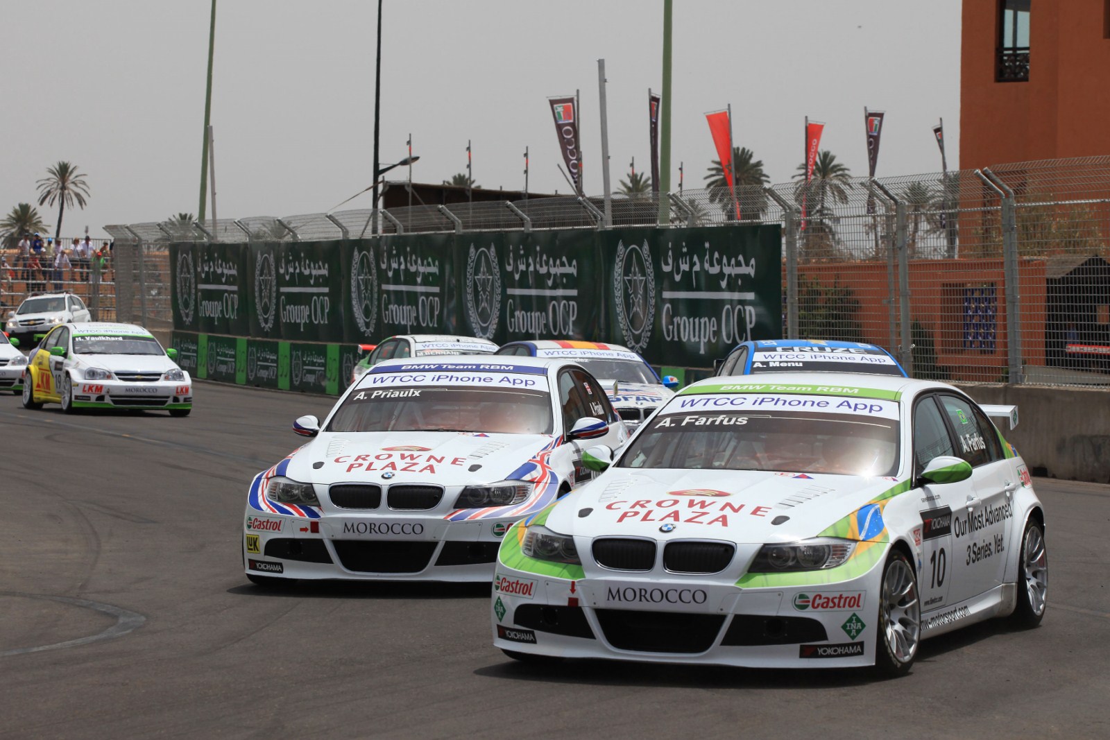 Wie erhofft konnte sich Andy Priaulx im ersten Lauf in Marrakesch auf die achte Position vorkämpfen und sich somit eine ideale Ausgangsposition für den zweiten Lauf sichern. Allerdings war Priaulx auch der einzige BMW-Pilot in den Top-Acht und es ist unübersehbar, dass die Geschwindigkeit der BMW 320si WTCC in diesem Jahr nicht für eine aktive Teilnahme am Titelkampf genügen wird. Die Möglichkeiten der Weiterentwicklung sind in Folge des engen Reglements und des Alters des Fahrzeugs sehr beschränkt und es ist nicht davon auszugehen, dass dem RBM-Team hier noch größere Sprünge gelingen. Den Sieg im ersten Lauf, der wegen eines Unfalls in einer Safety Car-Phase beendet werden musste, konnte sich Gabriele Tarquini im Diesel-Seat ungefährdet sichern. Augusto Farfus im zweiten Werks-BMW wurde zehnter, Franz Engstler gewann die Privatier-Wertung auf Position Zwölf des Gesamtklassements.
