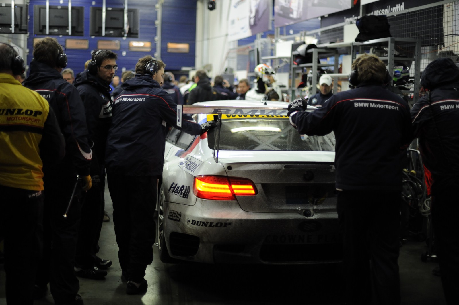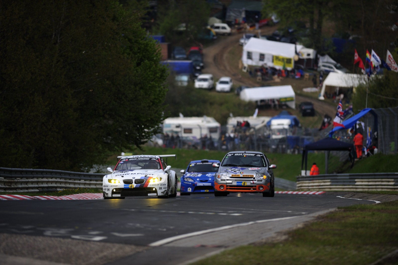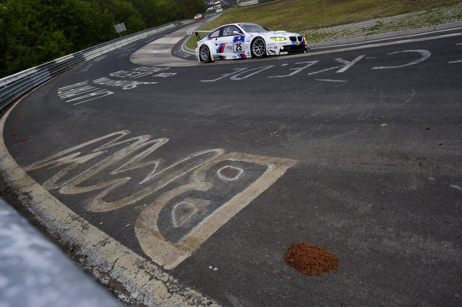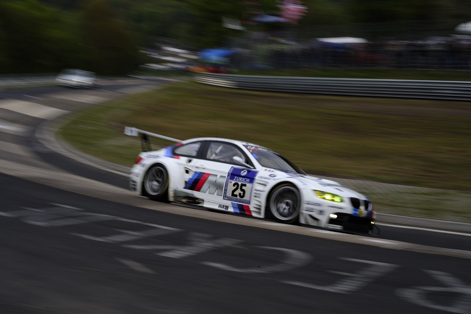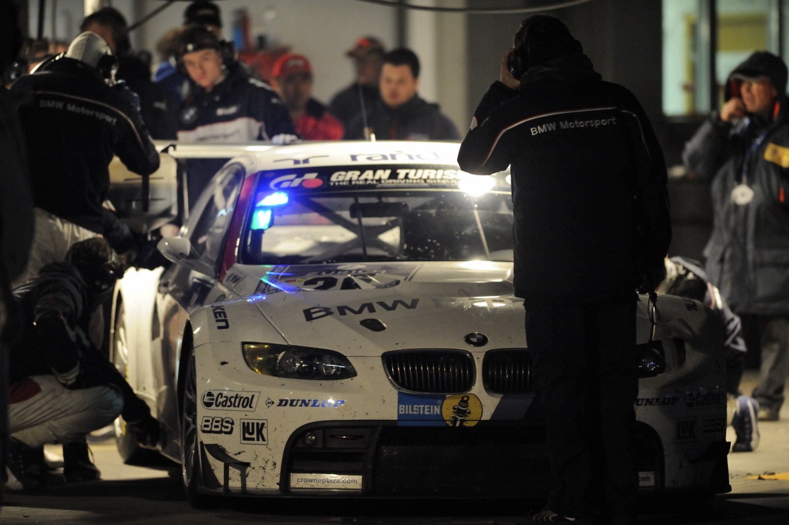 Ohne größere Zwischenfälle verlief die Nacht beim 24-Stunden-Rennen auf dem Nürburgring für die beiden BMW M3 GT2 von BMW Motorsport. Auch wenn es zu Beginn der Nacht kleinere Probleme beim Fahrzeug mit der Startnummer 25 gekommen war und ein kaputter Reifen sowie ein durch einen aufgewirbelten Stein beschädigter Kühler getauscht werden mussten, kann man unterm Strich zufrieden sein. Der Spitzen-BMW fährt momentan meist auf der vierten Position und will nun im zurückgekehrten Tageslicht noch einmal angreifen.