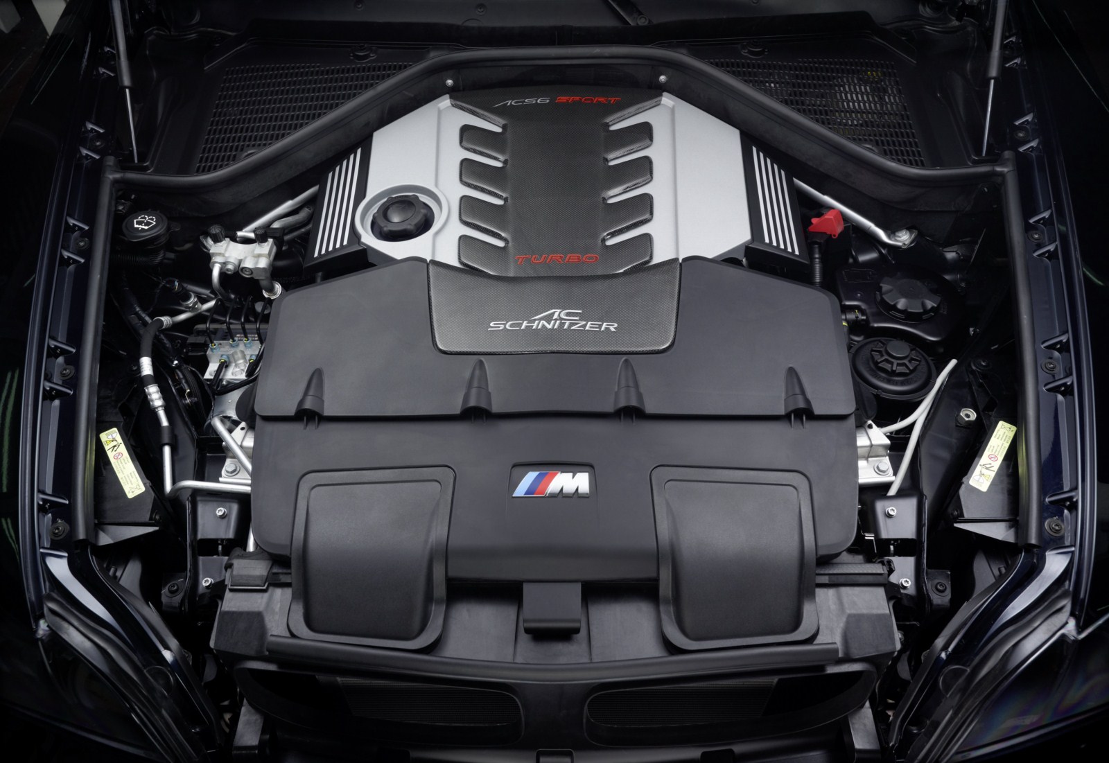 Wer es etwas extrovertierter mag und seinen Mitmenschen gerne mitteilen möchte, dass sie da keinen “gewöhnlichen” BMW X6 M vor sich haben, wird die Anbauteile für die Motorhaube zu schätzen wissen. Mit dem Bonnet Top aus Carbon und Plexiglas ermöglicht Schnitzer einen Blick in den Motorraum, was auch den Sinn der Carbon-Motorabdeckung erhöht. Flankierend zu diesem Schaufenster gibt es noch die optionalen Bonnet Vents mit verchromtem Mittelsteg, die für eine bessere Entlüftung des Motorraums – und natürlich eine noch martialischere Optik – sorgen sollen.