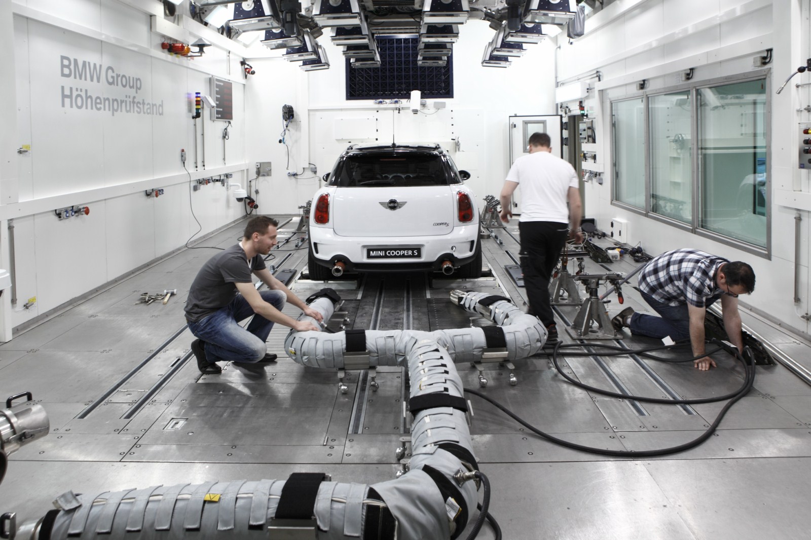 Dank des neuen Höhenprüfstands ist es nun noch besser möglich, die Motorsteuerung ideal auf veränderte Umgebungen einzustellen. Das bringt signifikante Vorteile beim Verbrauch und bei der Leistungsabgabe und somit echten Kundennutzen. Die neuen Vierzylinder-Benziner mit Turboaufladung, wie sie erstmals in der neuen BMW 1er-Reihe F20 zu sehen sein werden, dürften hier besonders stark profitieren. Einen Vorgeschmack liefert schon jetzt das Triebwerk des MINI Cooper S Countryman, das über einen TwinScroll-Turbolader, Direkteinspritzung und Valvetronic verfügt und trotz einer Leistung von 184 PS lediglich 6,3 Liter Kraftstoff auf 100 Kilometer verbraucht. Nach unseren Informationen werden wir diesen Motor definitiv auch im nächsten BMW 1er sehen – natürlich wird er zu diesem Zweck an den Längseinbau und den Heckantrieb adaptiert werden müssen, denn an dieser Bauart wird nicht gerüttelt.