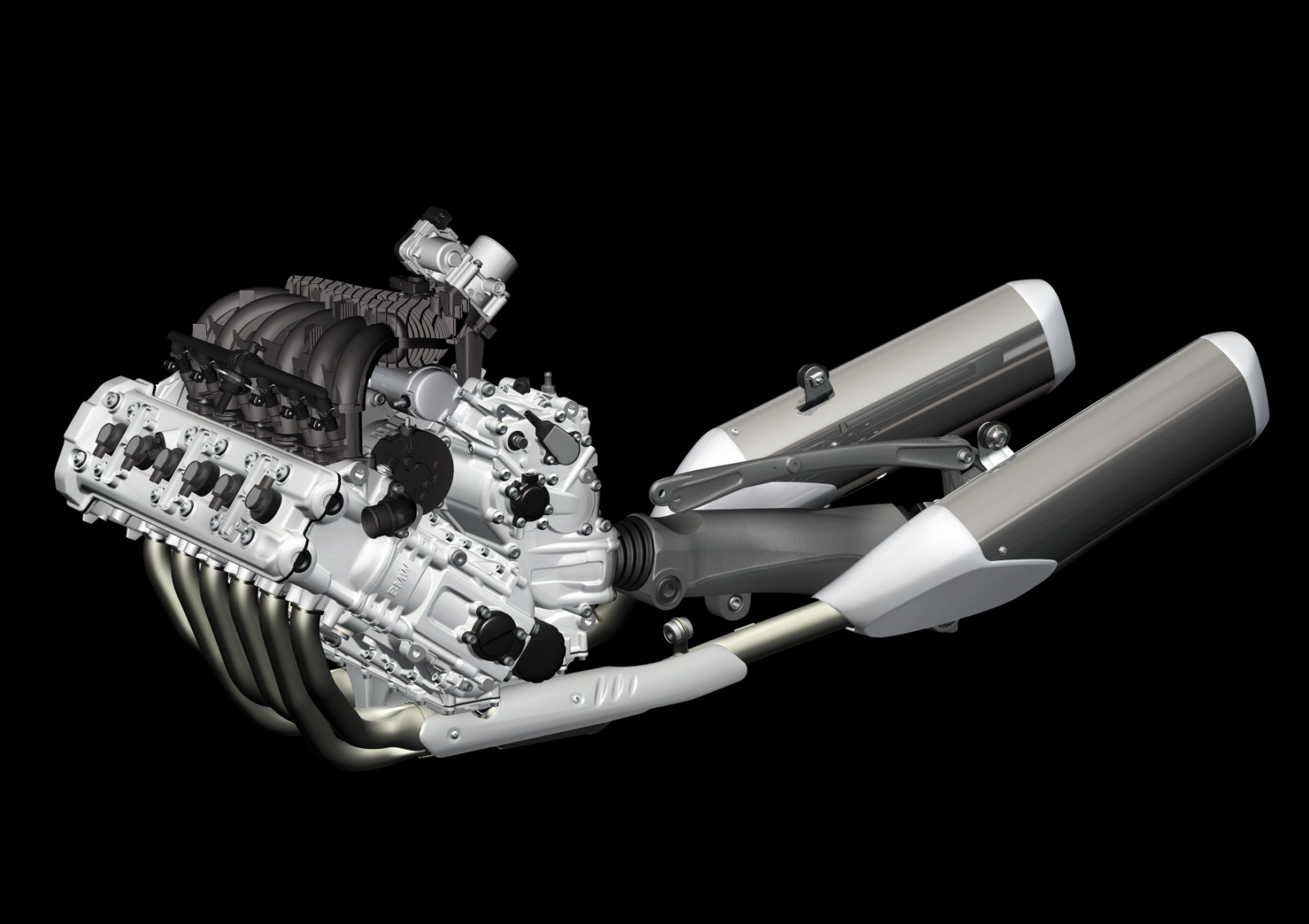 Zur Realisierung der geringen Baubreite sind die elektrischen Nebenaggregate sowie deren Antrieb hinter die Kurbelwelle in den Freiraum oberhalb des Getriebes verlegt worden. Hierdurch wurde außerdem einAntrieb mit idealer Massenkonzentration in der Fahrzeugmitte realisiert. Die Gesamtbreite des Motors beträgt 560 Millimeter. Mit diesem Maß baut der Motor nur geringfügig breiter als ein aktueller großvolumiger Vierzylinder-Reihenmotor.