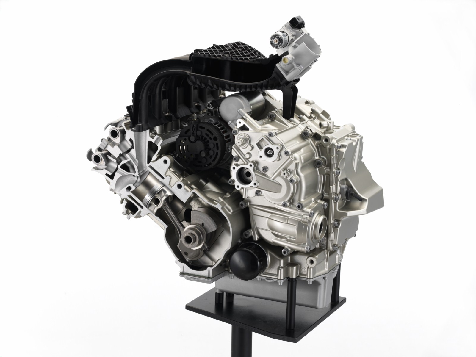 Der Zylinderblock mit dem Wassermantel ist als Open-Deck-Konstruktion ausgeführt, und die Laufbahnen sind mit einer verschleißfesten, reibungsarmen Nickel-Silizium-Dispersionsbeschichtung versehen. Das im Druckgussverfahren hergestellte Unterteil bildet das Gegenstück für die Hauptlagerung der Kurbelwelle und nimmt das Sechsganggetriebe auf.