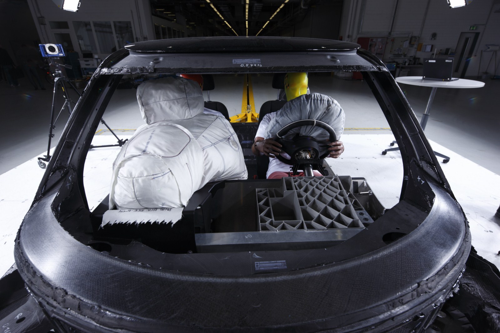 Wie unschwer zu erkennen ist, hat die Fahrgastzelle diese Tortur extrem gut überstanden und den Überlebensraum der Insassen praktisch nicht verringert. Gegenüber herkömmlichen Fahrzeugen mit Stahlkarosserie sollen die Belastungen für die Insassen des MCV bei allen Crash-Arten signifikant niedriger ausfallen. Dabei muss auch berücksichtigt werden, dass der Versuchsträger ohne B-Säule gebaut wurde und somit quasi die schwierigste Lösung für maximale Steifigkeit erprobt wurde. Ob das MCV eine B-Säule haben wird, wurde uns noch nicht verraten. Es ist aber davon auszugehen, dass man derartige Versuche kaum ohne B-Säule machen würde, wenn das MCV über ein solches Element verfügen würde.