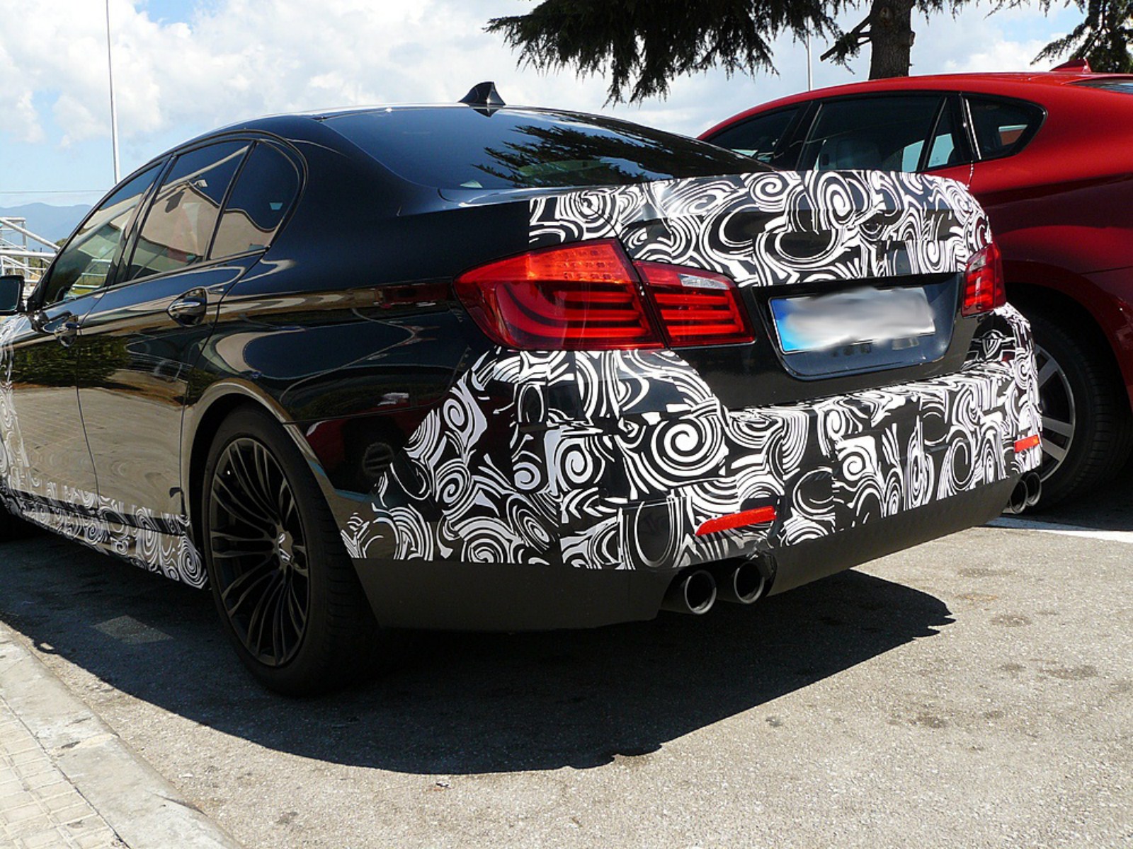 Der Prototyp dürfte uns außerdem schon jetzt die Sitze und das Lenkrad des BMW M5 zeigen, natürlich sind diese Elemente auch in der neuen Generation wieder speziell auf den M5 zugeschnitten. Am Lenkrad befinden sich zumindest im Prototypen zwei auffällig markierte Tasten mit den Beschriftungen “M1” und “M2”, was auf zwei verschiedene M-Modi schließen lassen könnte – es kann sich dabei aber auch nur um zwei Varianten handeln, die von den Testfahrern gegeneinander auf ihre Alltagstauglichkeit getestet werden sollen. Auffällig ist außerdem, dass der M5 genau wie seine schwächeren Artgenossen der Baureihe F10 über eine elektronische Handbremse verfügt, der klassische Handbremshebel entfällt also auch beim Topmodell.
