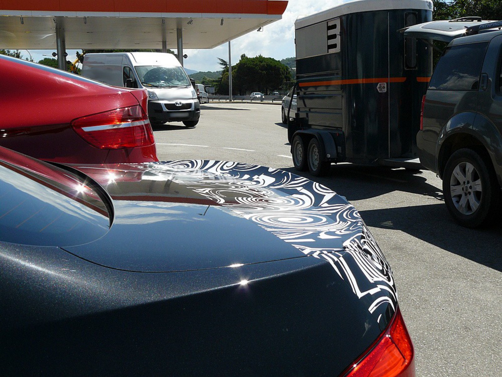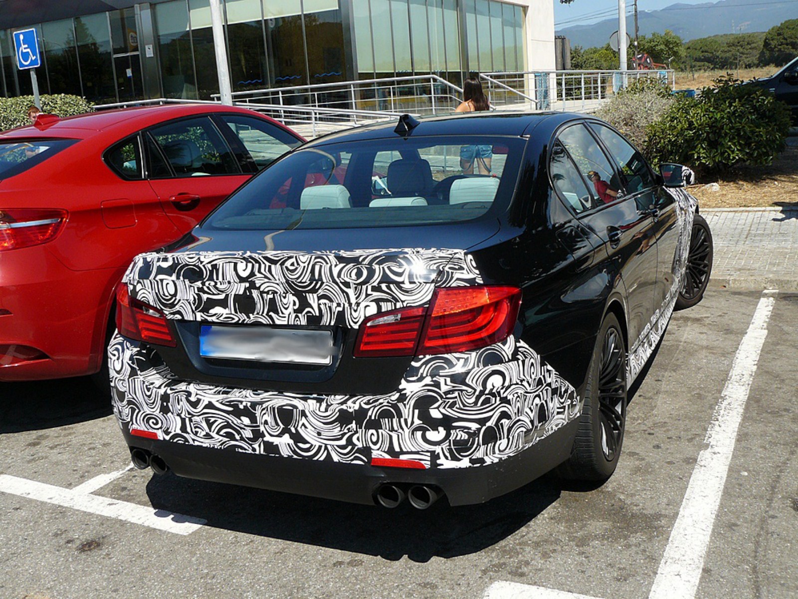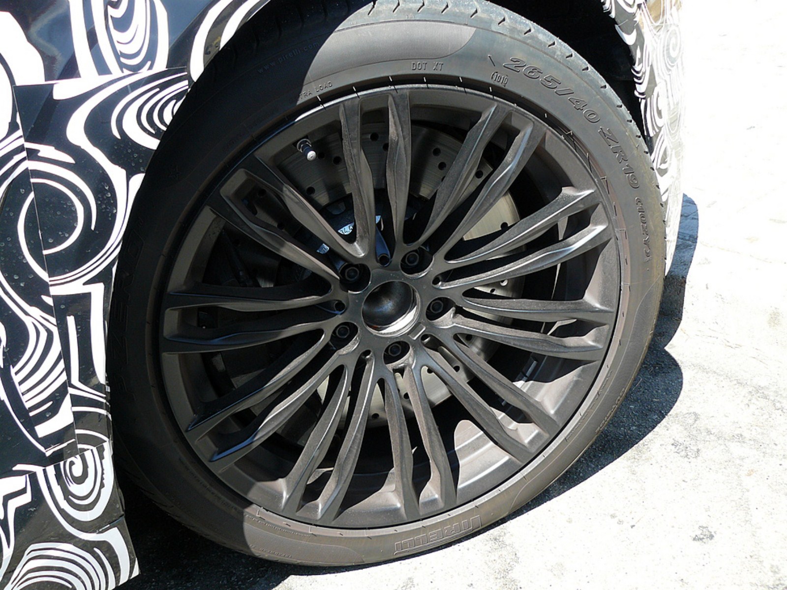 Der auf einem Parkplatz in der Nähe von Barcelona abgestellte Erlkönig verrät uns außerdem die Reifengrößen des M5, denn der Fotograf hat dankbarerweise auch auf dieses Detail geachtet. An der Vorderachse kommen demnach Reifen im Format 265/40 R19 zum Einsatz, an der angetriebenen Hinterachse arbeiten Reifen im Format 295/35 R19. Ob es sich bei den verwendeten Felgen bereits um die Serienfelgen handelt, können wir nicht sagen – wir gehen aber davon aus, dass es wie beim Vorgänger zwei Felgenvarianten geben wird und es ist durchaus denkbar, dass wir hier eine der beiden Varianten sehen.