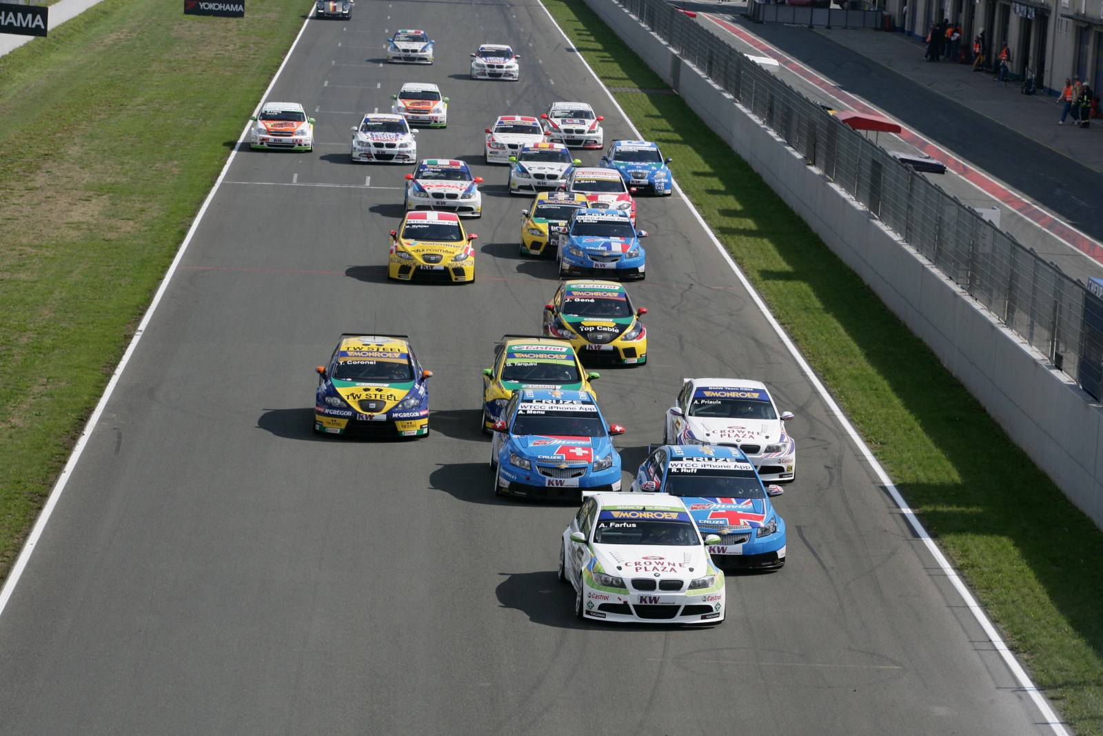 Wie erwartet gab es die entscheidenden Szenen beim ersten Lauf zur Tourenwagen-WM direkt nach dem Start, denn schon in der ersten Kurve wurde Polesetter Augusto Farfus unfair attackiert und fiel zurück. Auch wenn der etwas ungestüme Rob Huff für dieses Manöver eine Durchfahrtsstrafe erhielt, die er dann nicht antrat und folgerichtig disqualifiziert wurde, war das Rennen für Farfus natürlich ruiniert. Am Ende konnte der Brasilianer dennoch den zweiten Platz erkämpfen, Teamkollege Andy Priaulx fuhr auf dem sechsten Platz über die Linie.