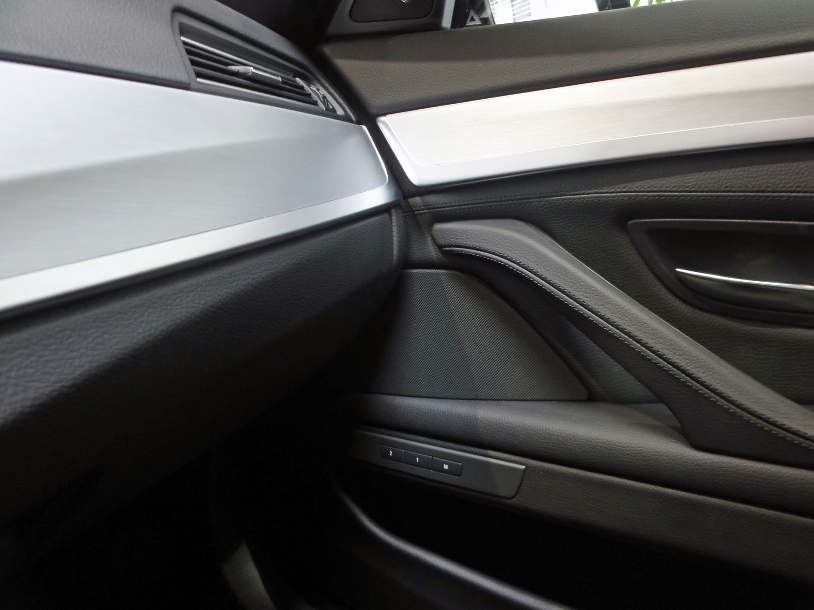 Im Inneren konnten die bisher gesehenen Bilder die Realität nicht gerecht wiedergeben; so fassen sich die Interieurleisten sehr massiv und kalt an, was für hochwertige Metallleisten spricht. Die feine Maserung ist auch deutlich ruhiger als die auffällig gemusterten Leisten bei der Präsentation des M-Pakets für den Vorgänger. Sie unterstreichen die harmonische Linienführung des Armaturenbretts und der Türverkleidungen, trennen das Schwarz in Schwarz und setzen auch durch die Linien auf der Beifahrerseite ein High-Light.