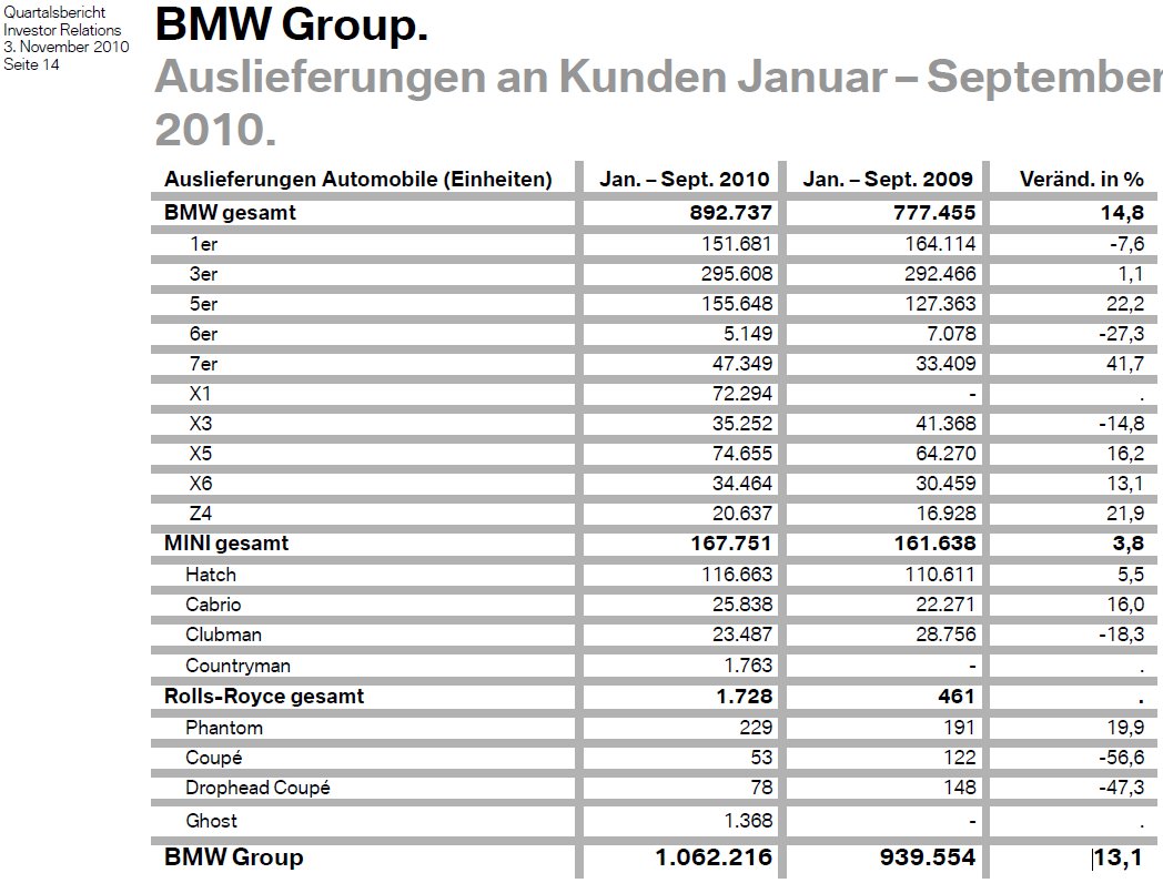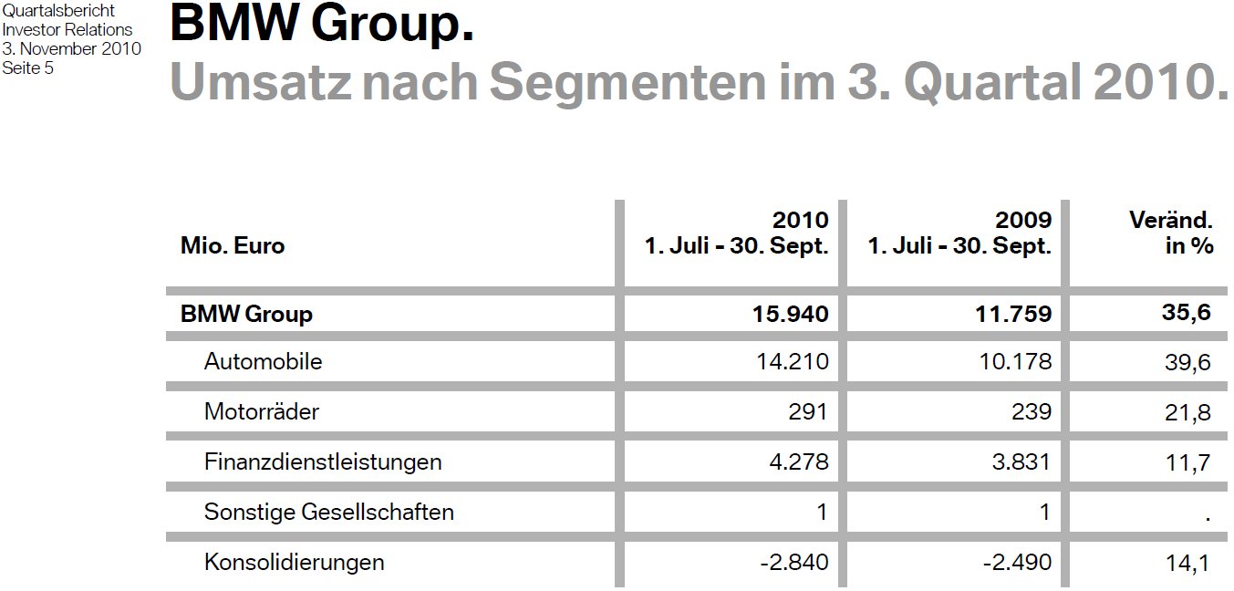 (Grafiken: Quartalsbericht Q3 2010 der BMW Group)