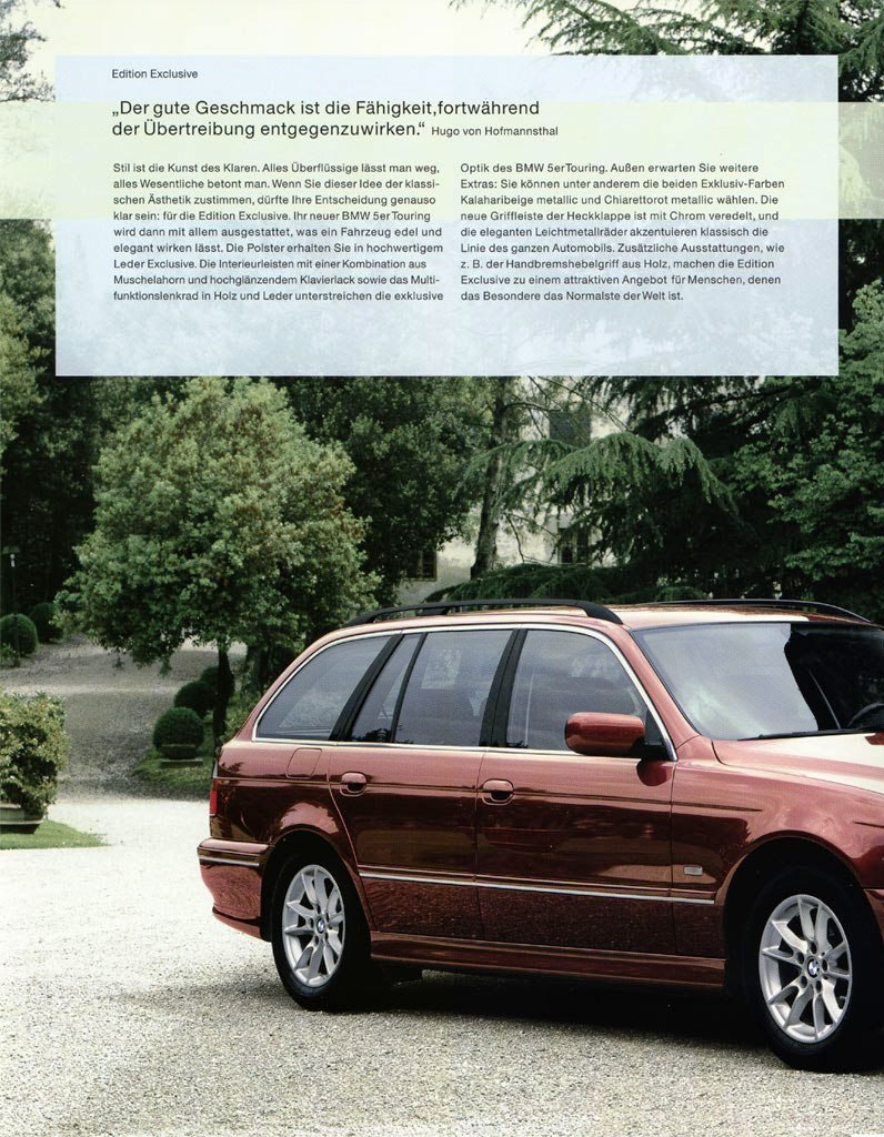 In diesem Artikel können wir als Informationsquelle für den geneigten Käufer solch eines 5ers Tourings oder einfach den BMW-Sammler den Prospekt der Editionsmodelle Exclusive, Lifestyle und Sport in digitaler Form präsentieren.