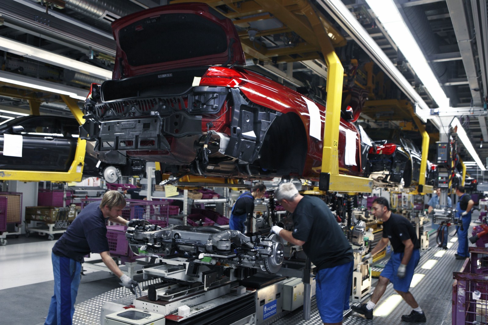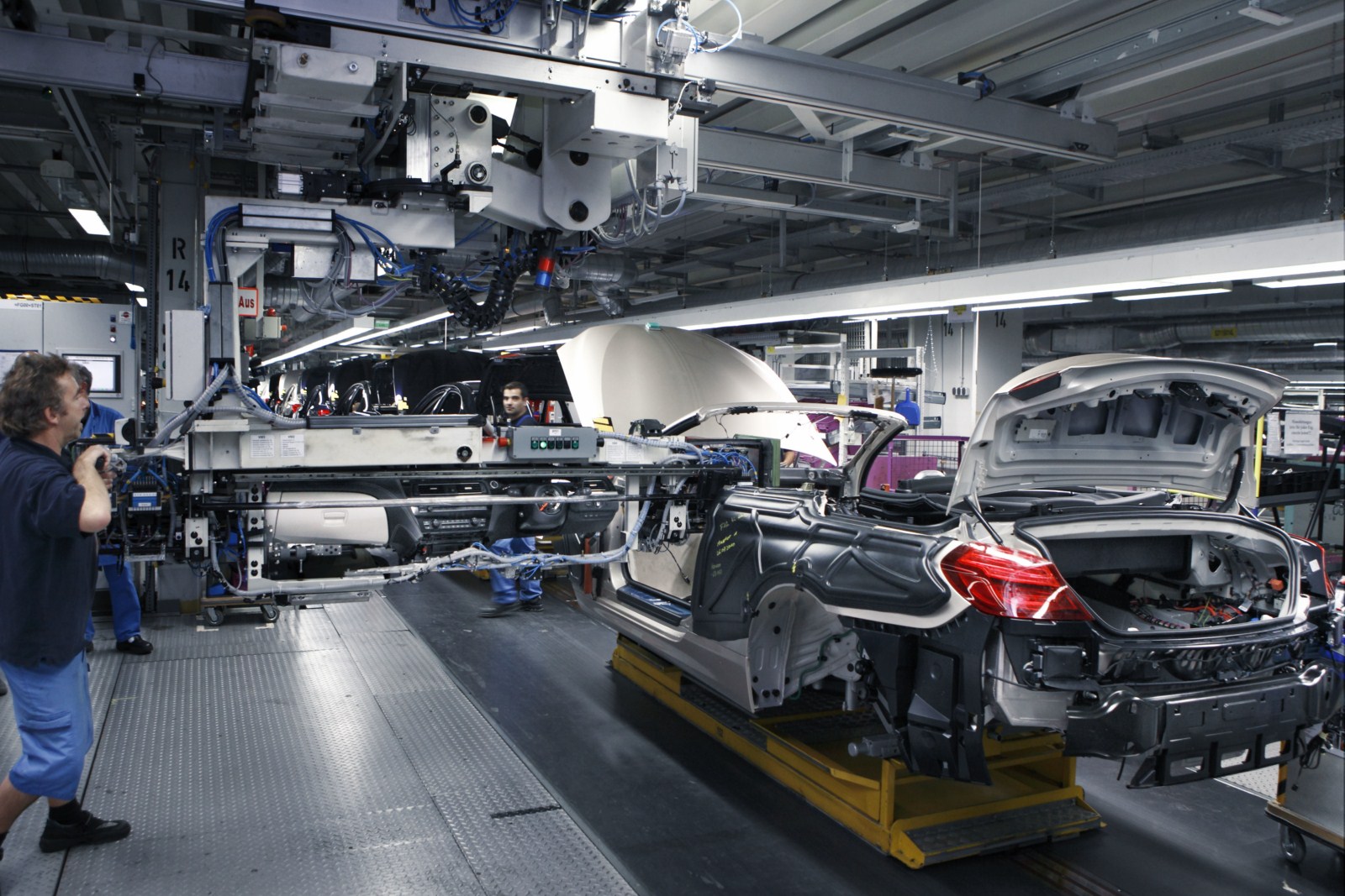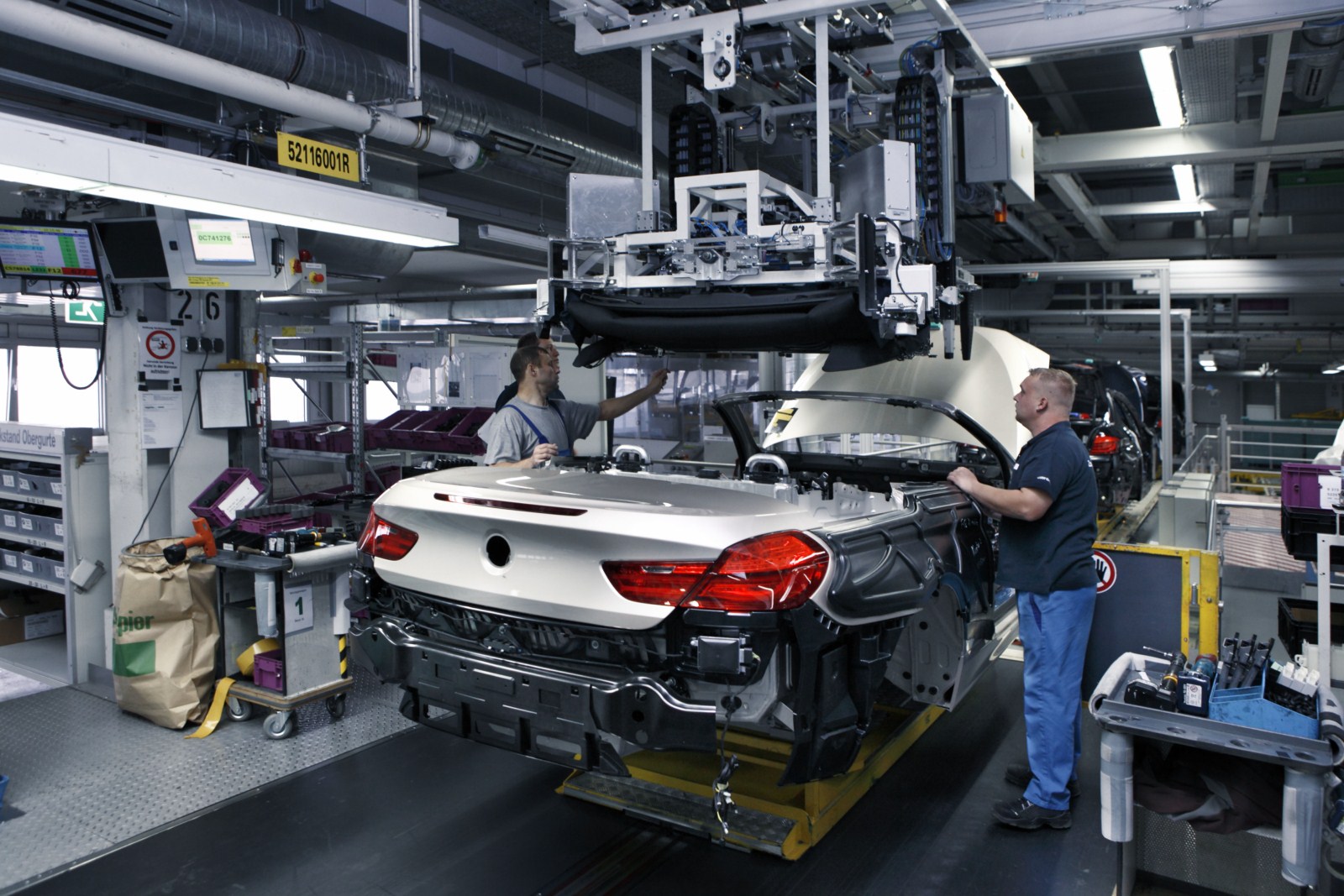 Auch die cabriospezifischen Montageumfänge wie das Einbauen und Einstellen des Softtops oder des Überrollschutzsystems finden integriert am Hauptband statt. Der umfangreiche Einsatz von Aluminium ist im Werk Dingolfing ebenfalls keine Besonderheit, schließlich sitzt das Aluminium Kompetenz Zentrum der BMW Group an diesem Standort.